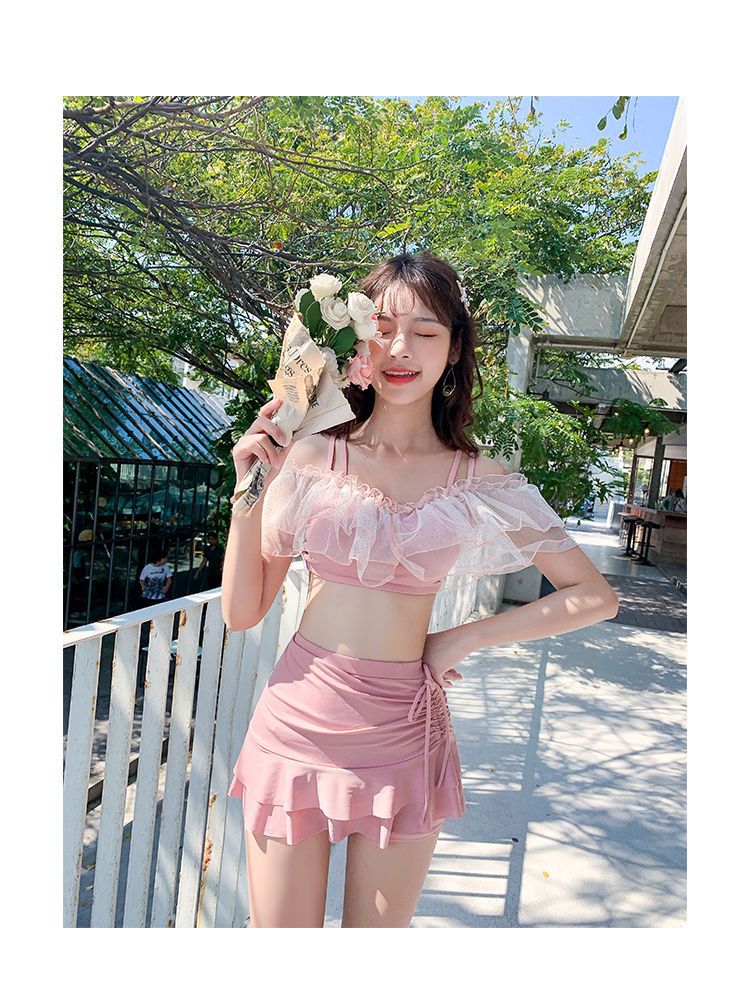 수영복 여성 스플릿 스커트 스타일 플랫 코너 섹시 작은 가슴 슬리밍 핑크 소녀의 보수적 인 온천 요정 팬 Jiurong스토어 가기
