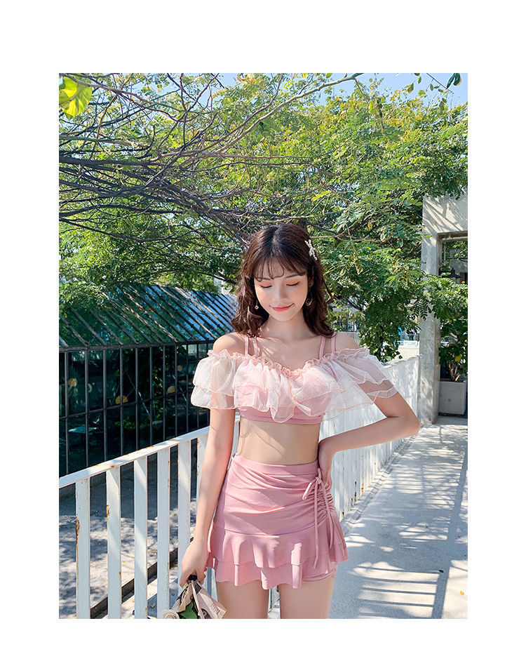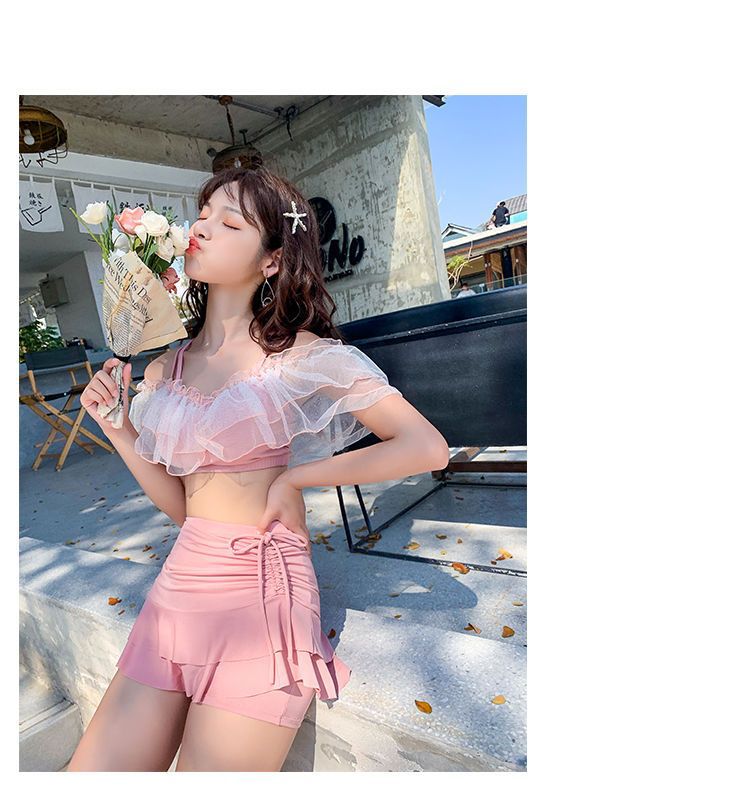수영복 여성 스플릿 스커트 스타일 플랫 코너 섹시 작은 가슴 슬리밍 핑크 소녀의 보수적 인 온천 요정 팬 Jiurong