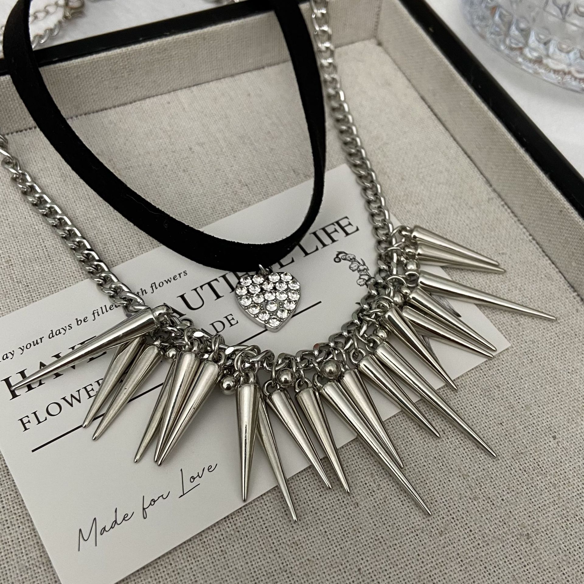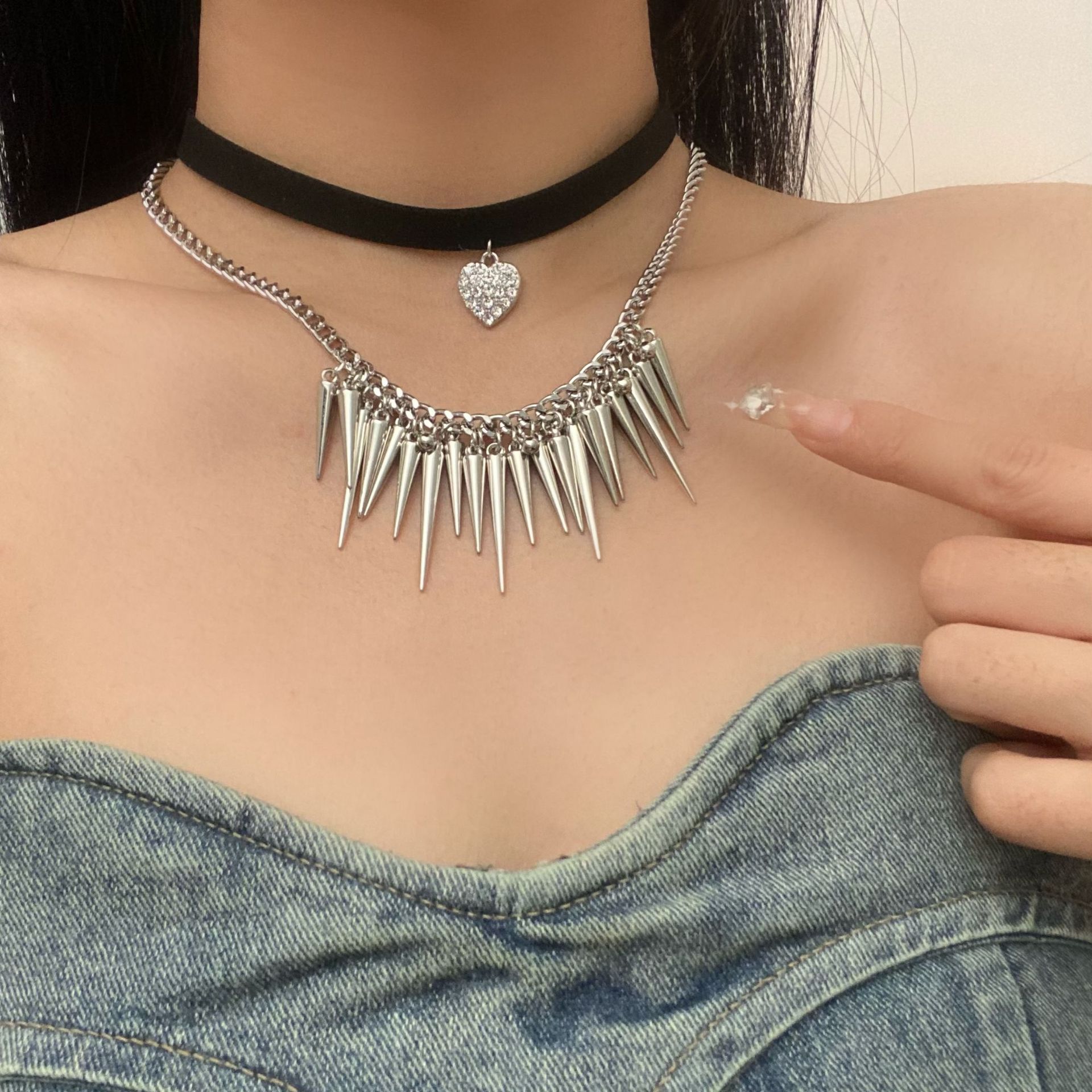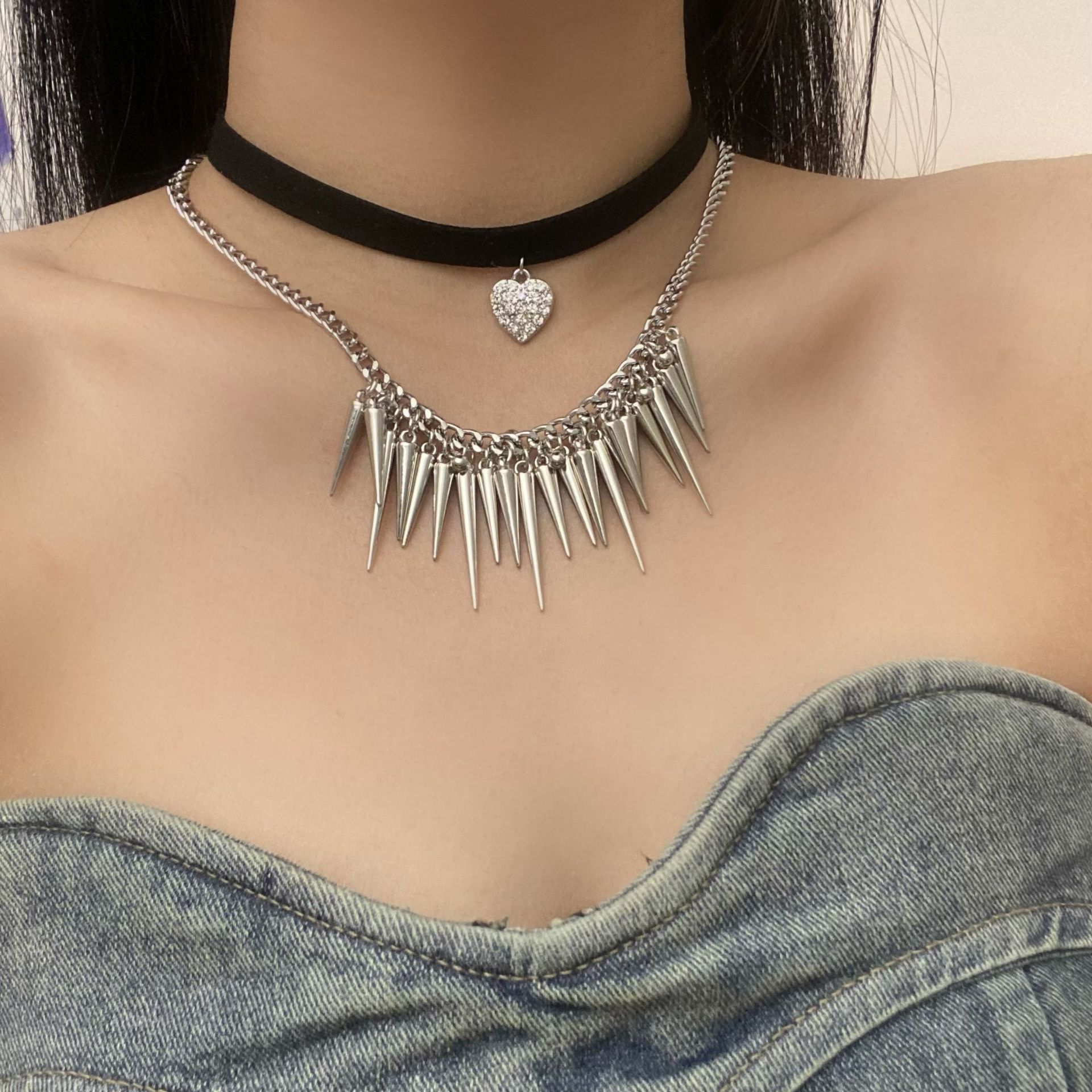 Y2K 스파이스 소녀 사랑 펜던트 테이퍼 겹쳐지는 이중 쇄골 체인 디자인 다크 펑크 스타일 달콤한 멋진 목걸이 트렌디