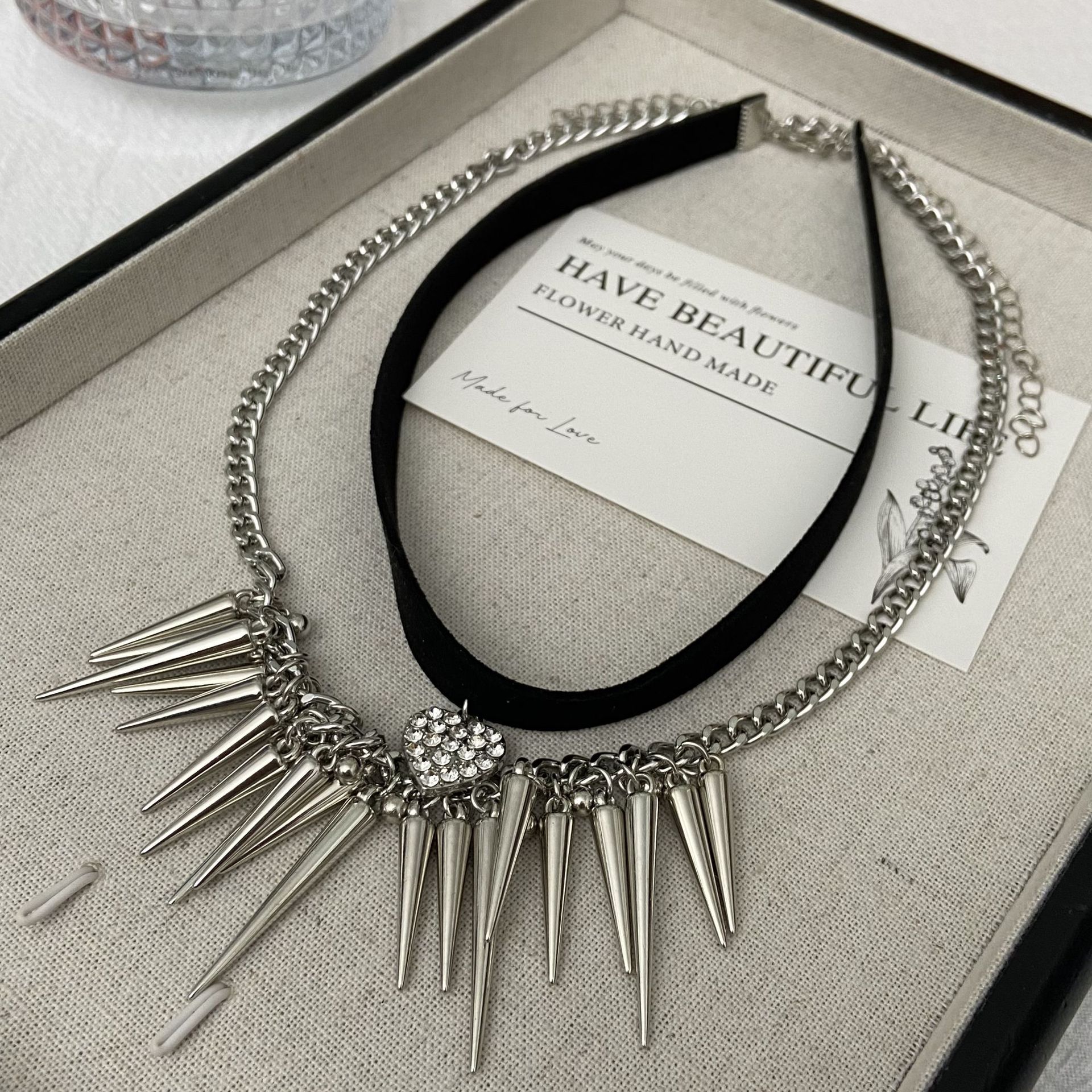 Y2K 스파이스 소녀 사랑 펜던트 테이퍼 겹쳐지는 이중 쇄골 체인 디자인 다크 펑크 스타일 달콤한 멋진 목걸이 트렌디스토어 가기