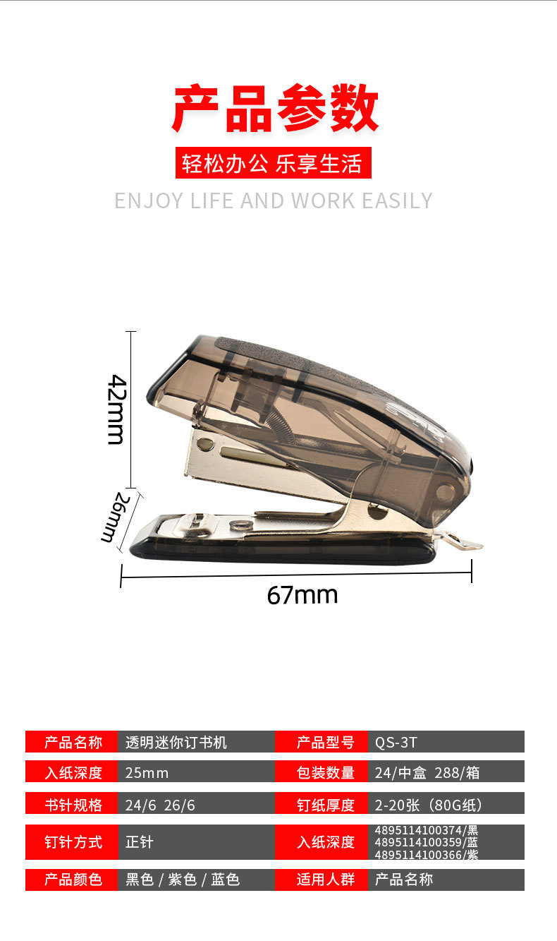 Qiwensheng 학생용 미니 스테이플러 ins 크리에이티브 스테이플러 미니 바인딩 20 페이지 No. 12 바늘 귀여운 스테이플러스토어 가기