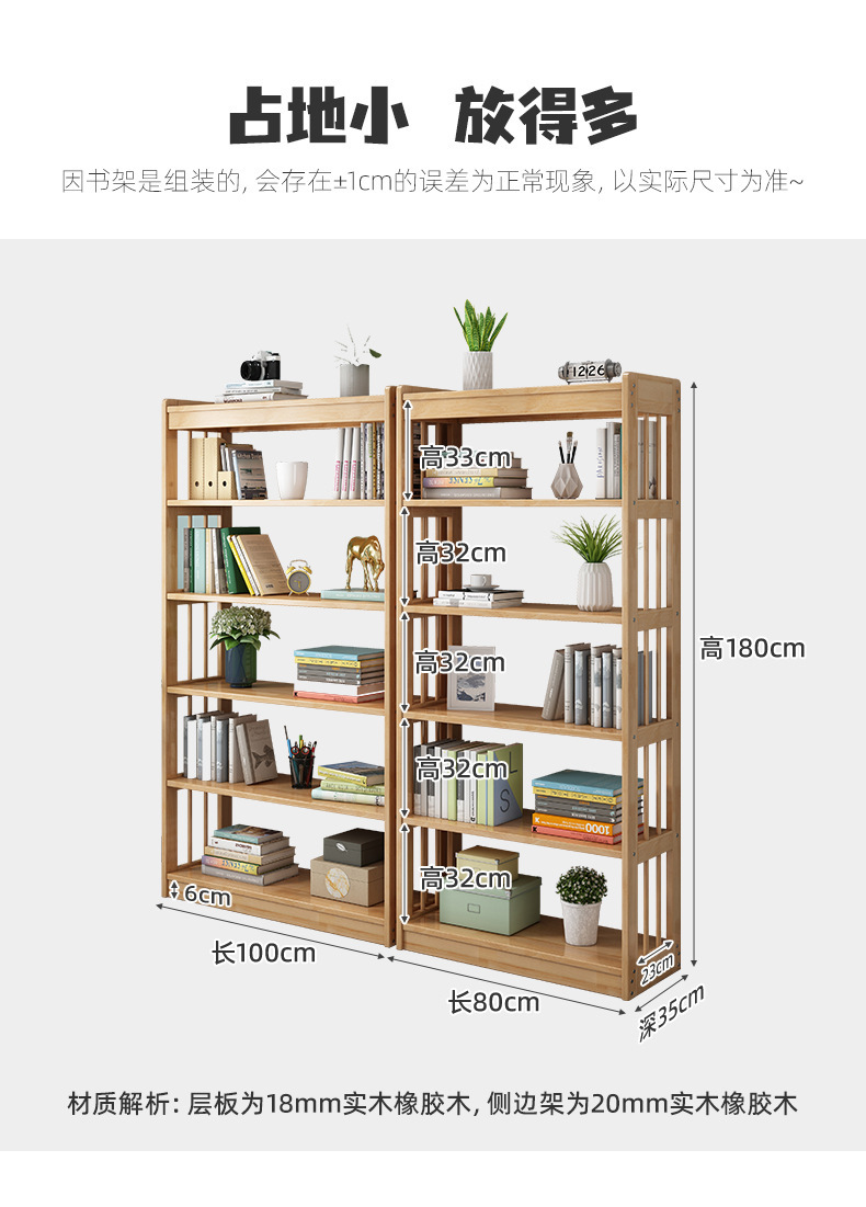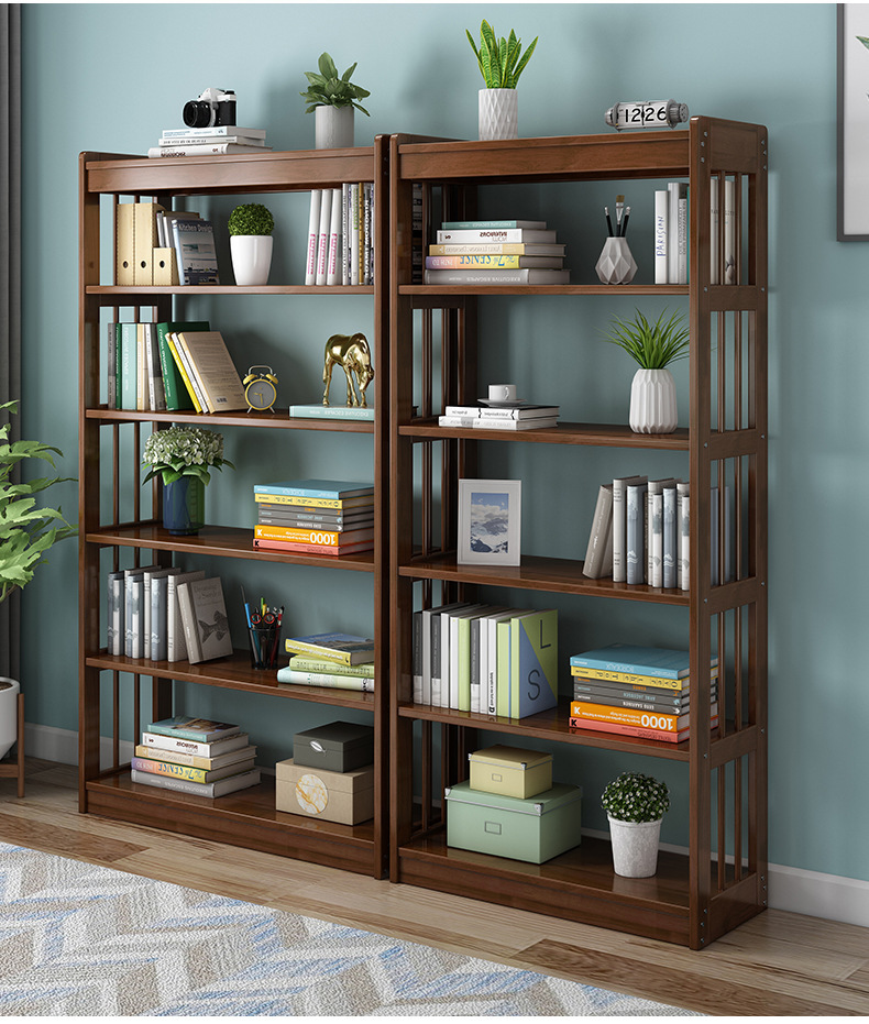 풀 솔리드 우드 다층 책꽂이 조합 현대 간단한 책장 침실 연구 바닥 랙 고무 목재 보관 캐비닛