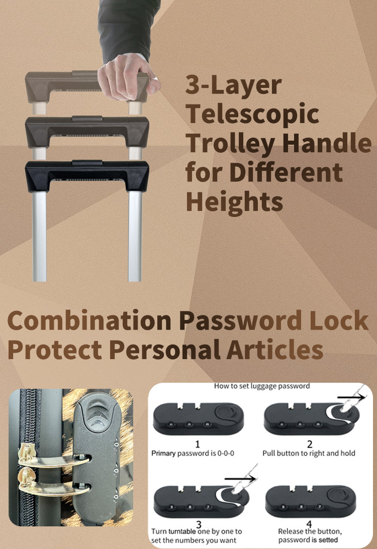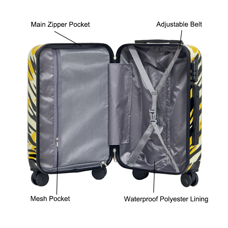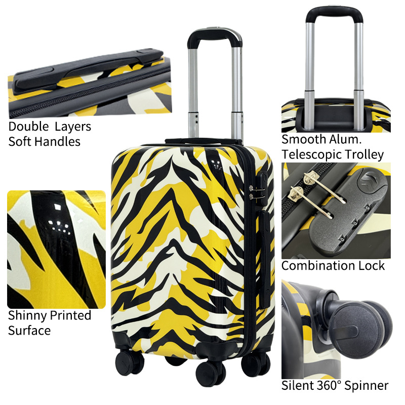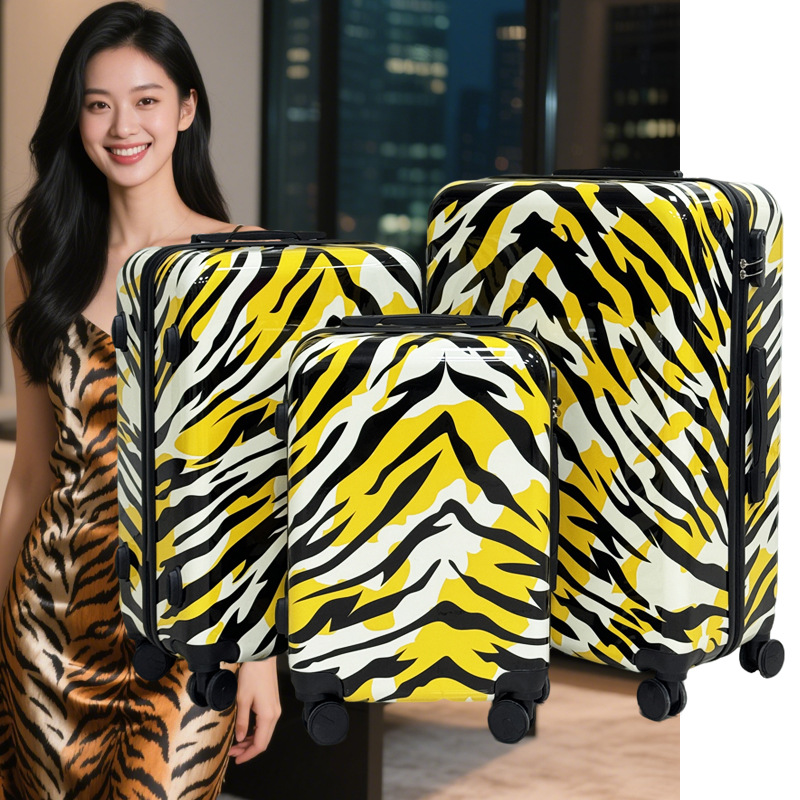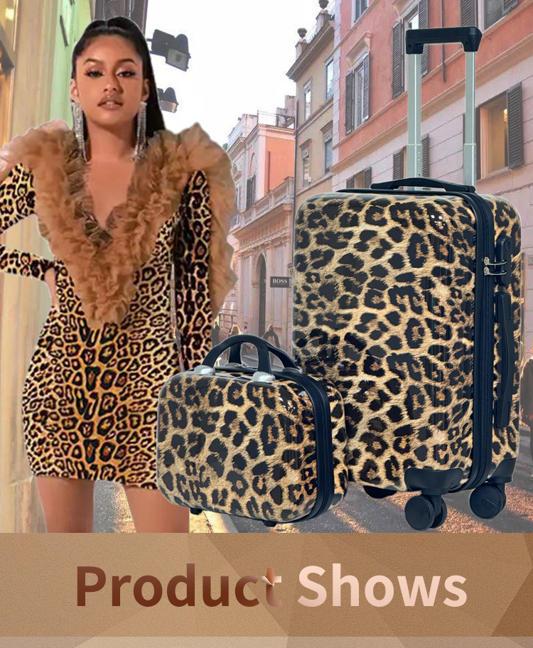 섹시한 레오파드 패턴 트롤리 케이스 ABS PC 360 도 회전 지퍼 수하물 남녀 가방