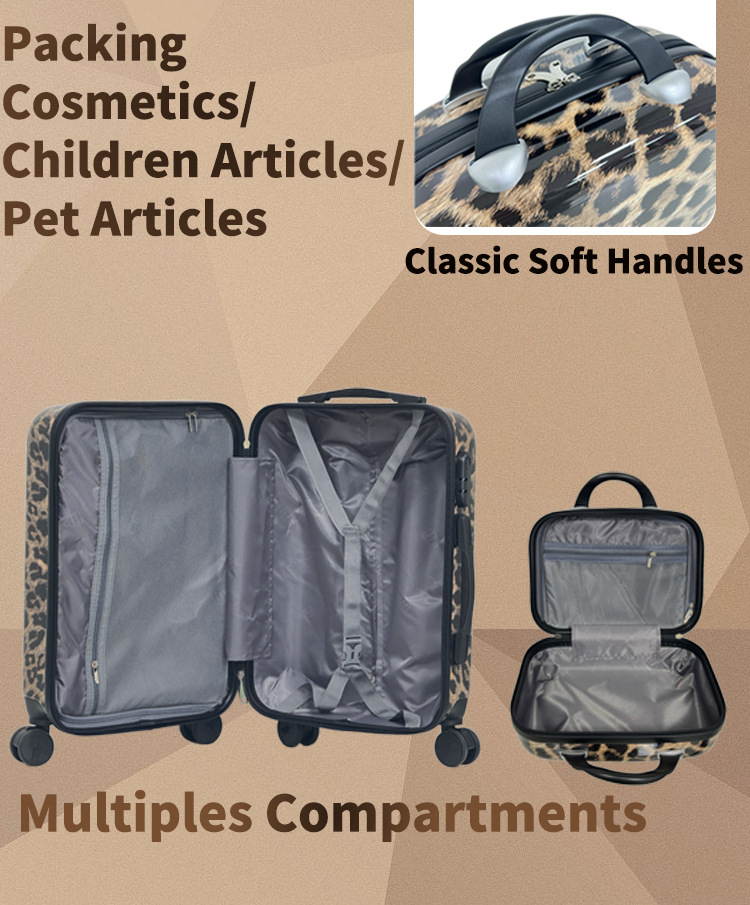 섹시한 레오파드 패턴 트롤리 케이스 ABS PC 360 도 회전 지퍼 수하물 남녀 가방스토어 가기