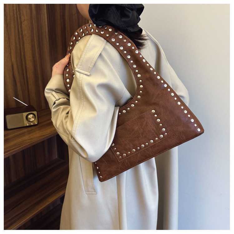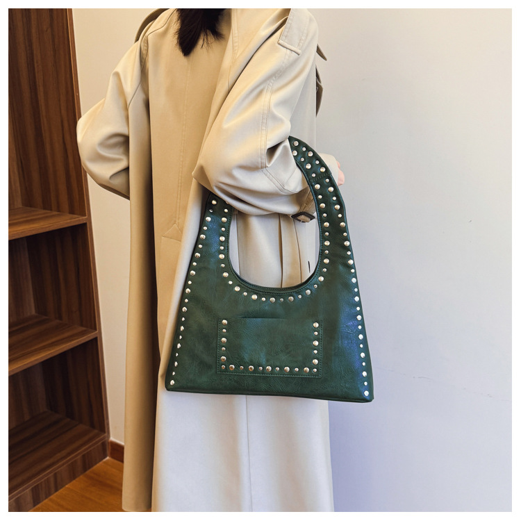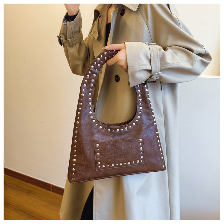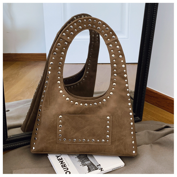 레트로 리벳 숄더 언더암 가방 유럽과 미국의 패션 모터카 가방 간단한 대용량 패션 올 매치 핸드백스토어 가기