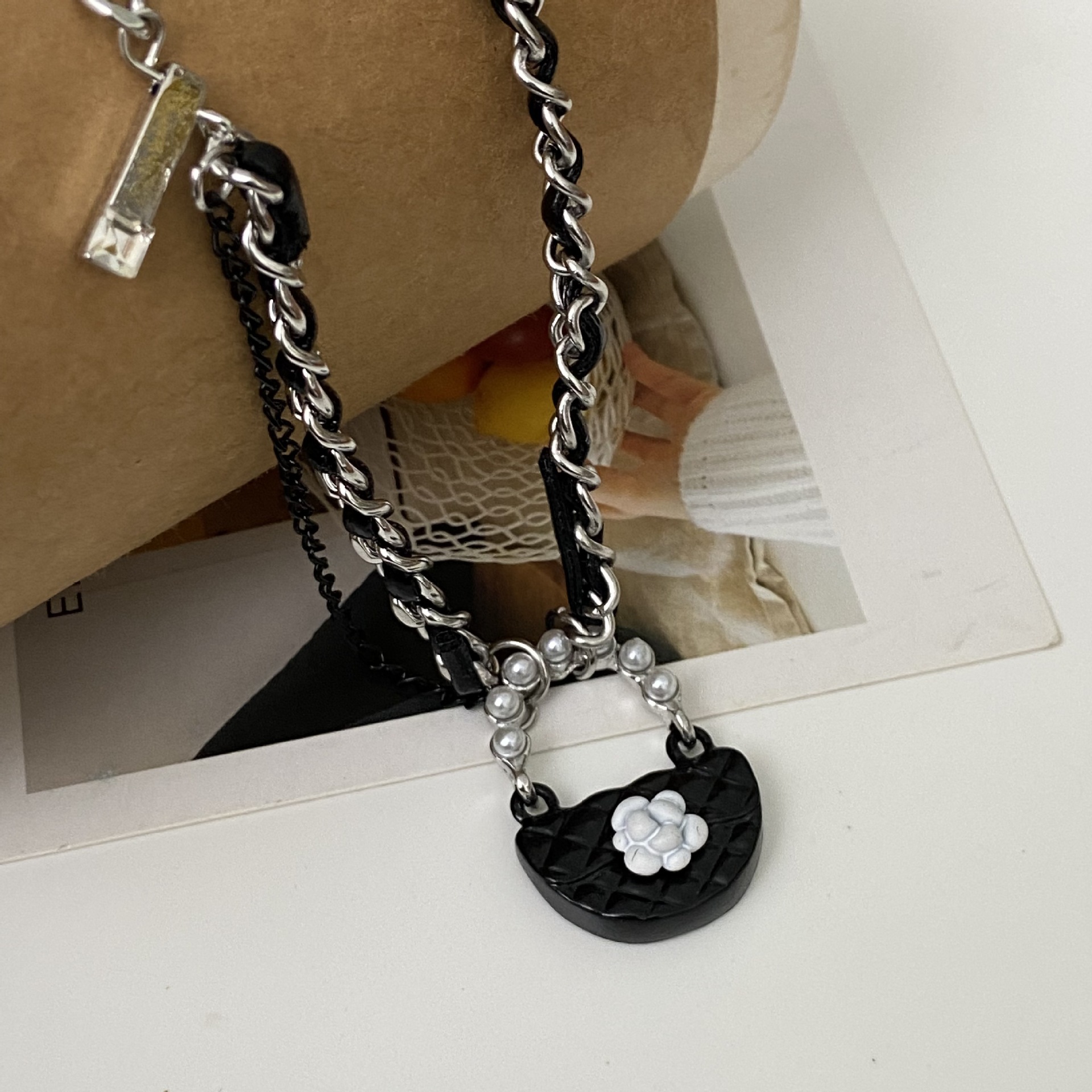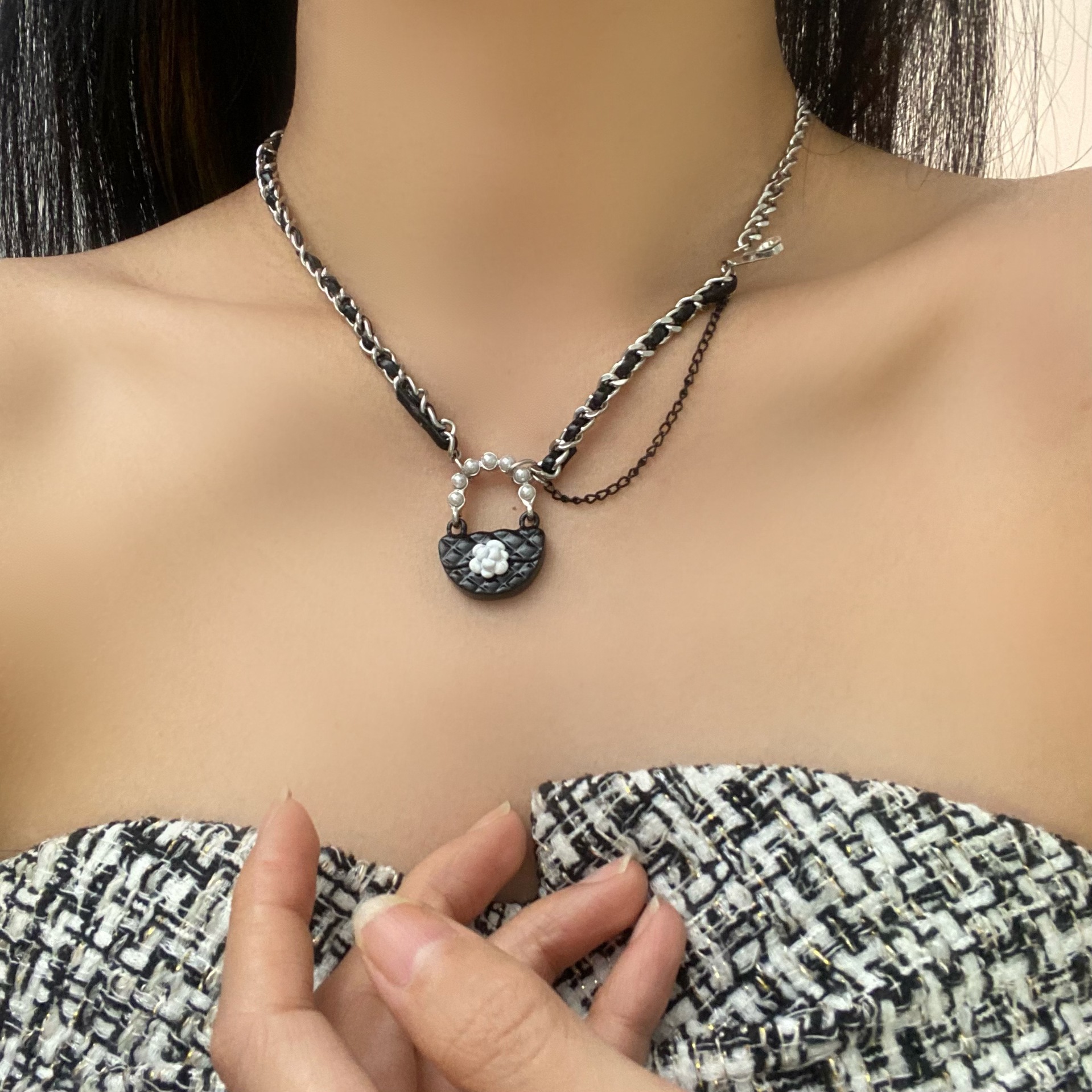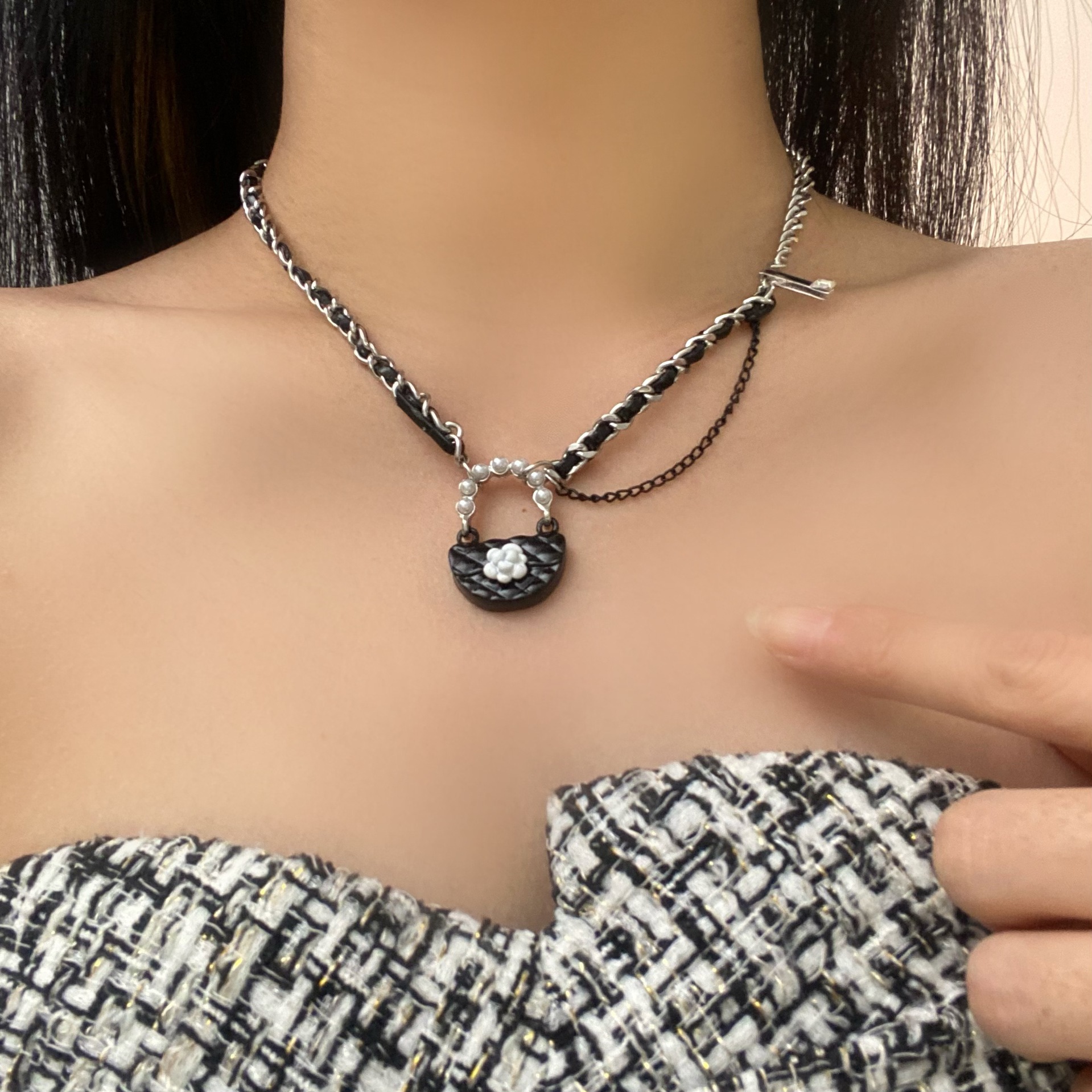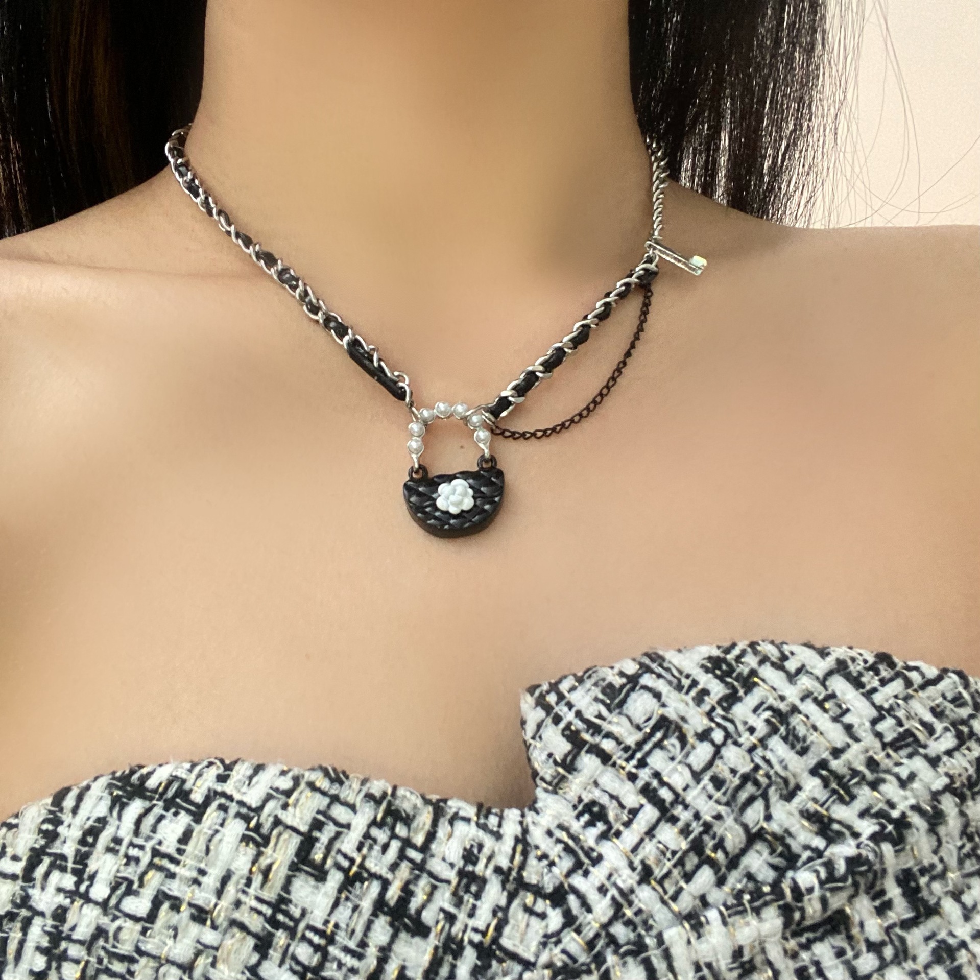 샤넬 스타일 오리지널 디자인 센스 백 펜던트 목걸이 여성 틈새 성격 패션 매달린 체인 달콤한 쿨 올 매치 스웨터 체인스토어 가기