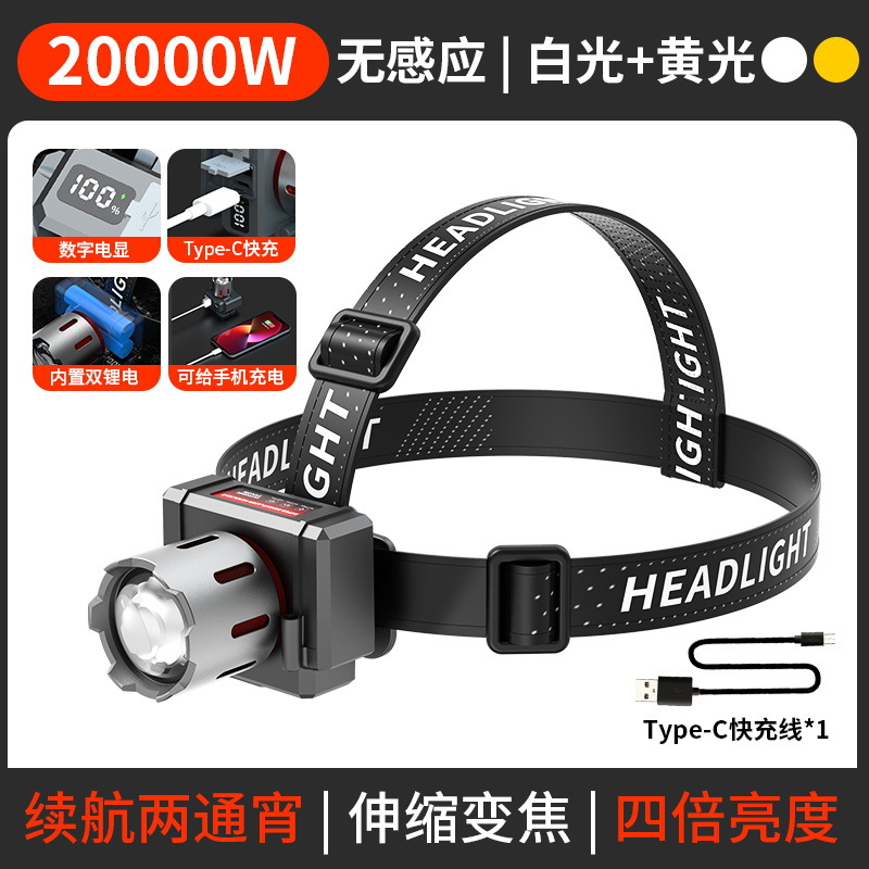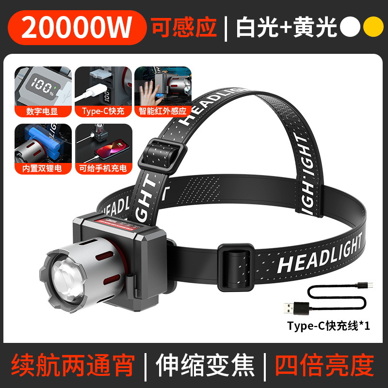 전조등 충전 줌 롱 샷 LED 노랑 및 흰색 레이저 헤드 장착 손전등 낚시 야간 낚시 전용 오프라인