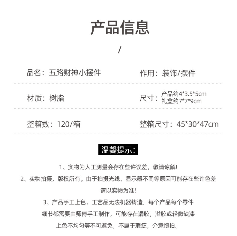 만화 부처님 수송기 수지 작은 장식품 손으로 만든 인형 남성과 여성을위한 부의 5 방향 신 선물 데스크탑 사무실 장식