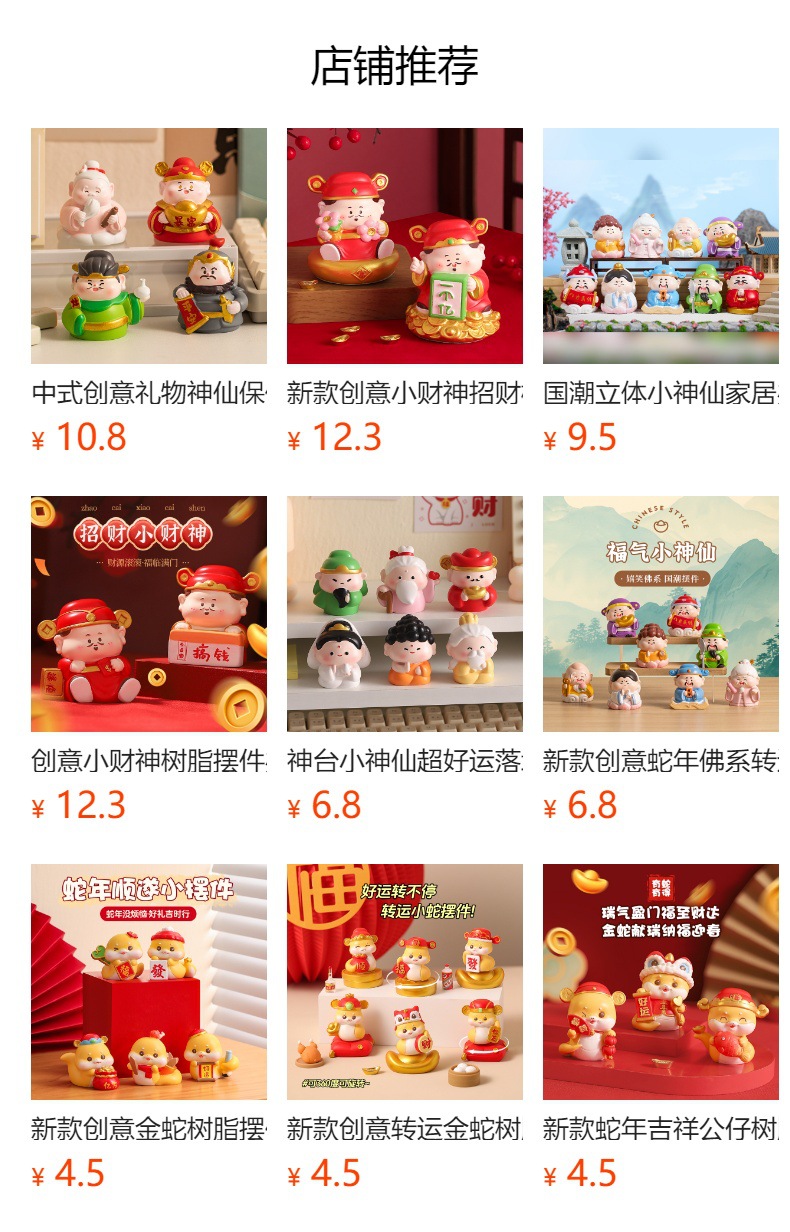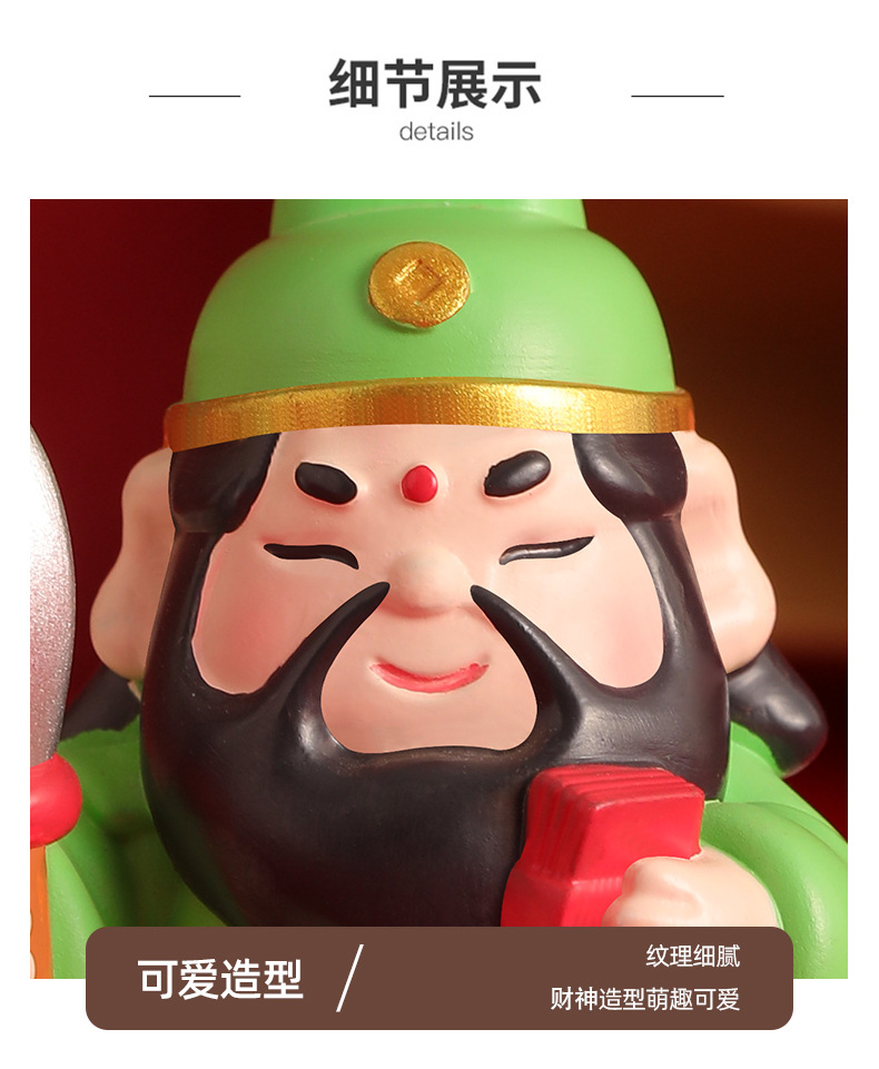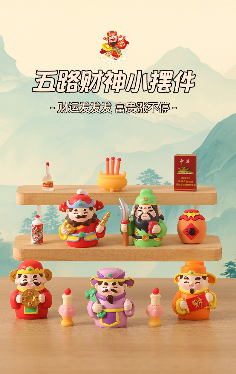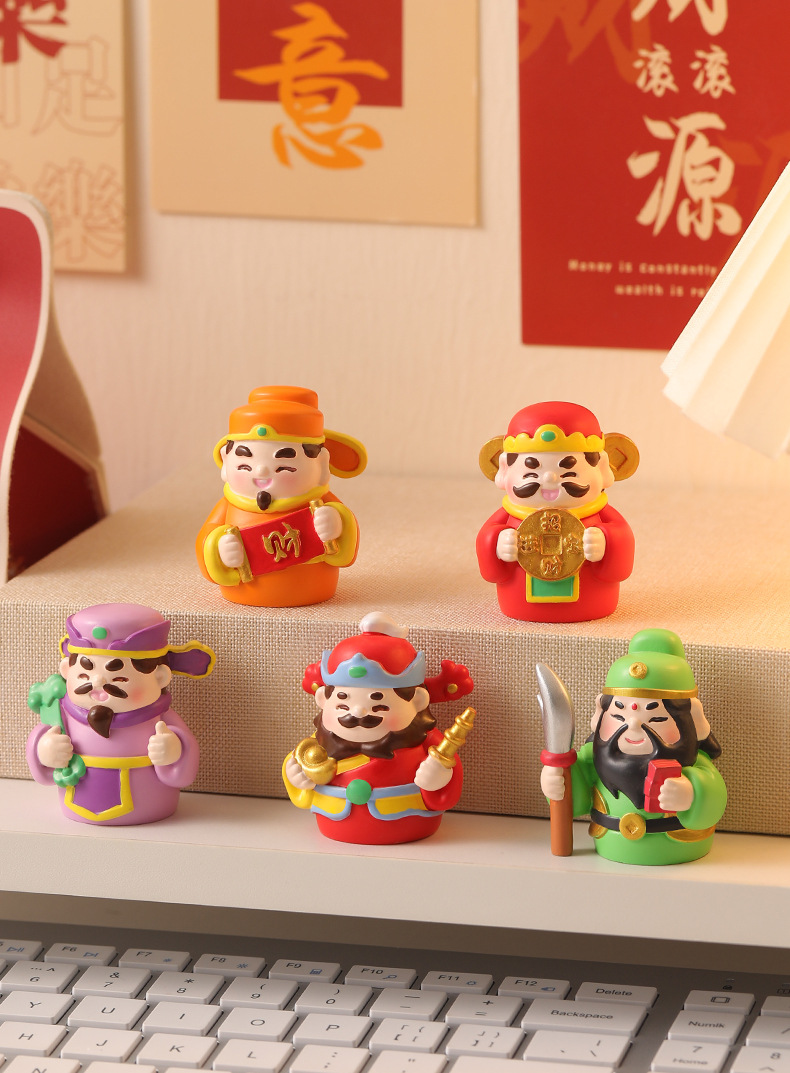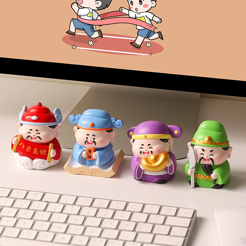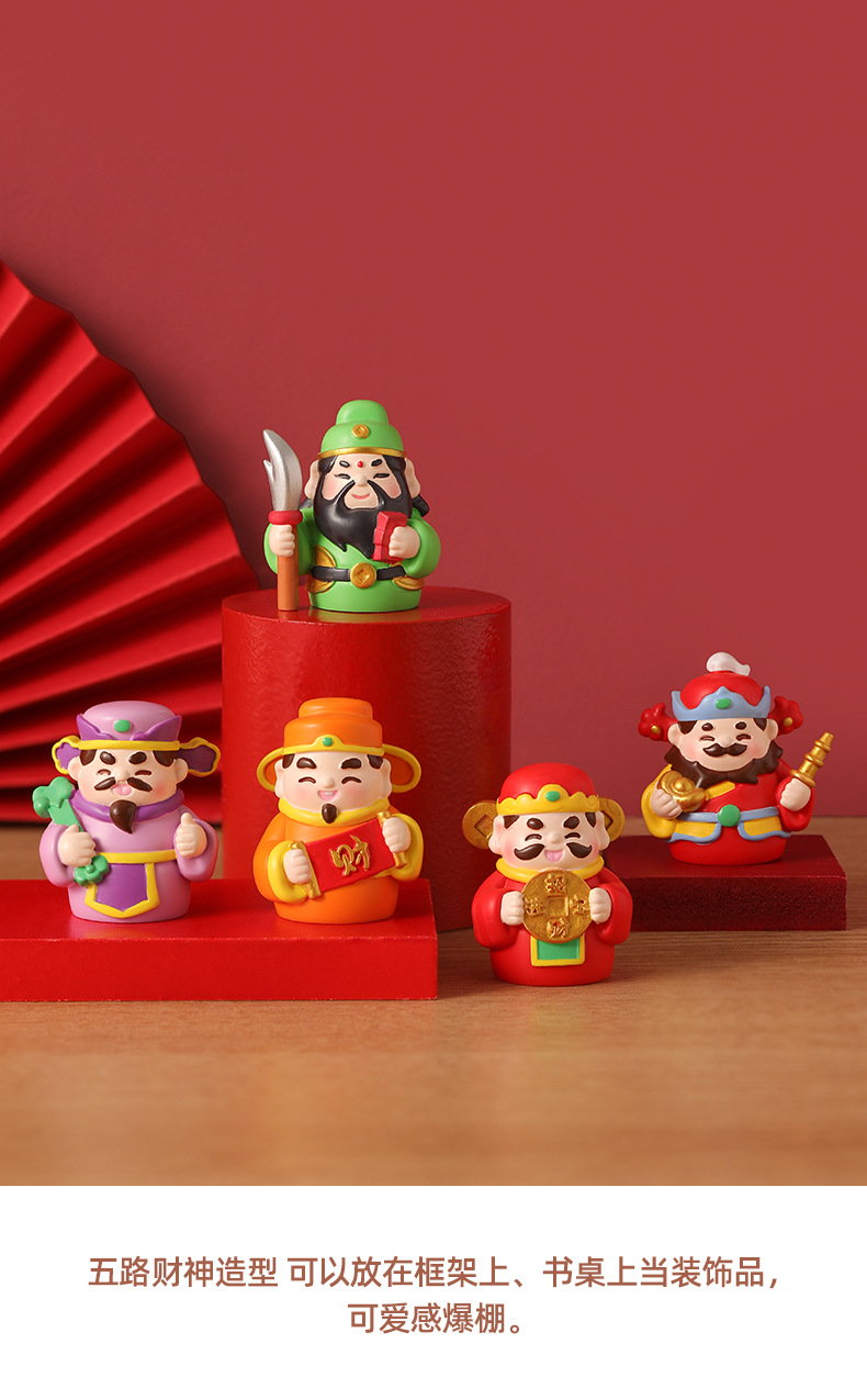蛇年新款佛系转运树脂小摆件办公桌面装饰品公仔五路财神男女礼物