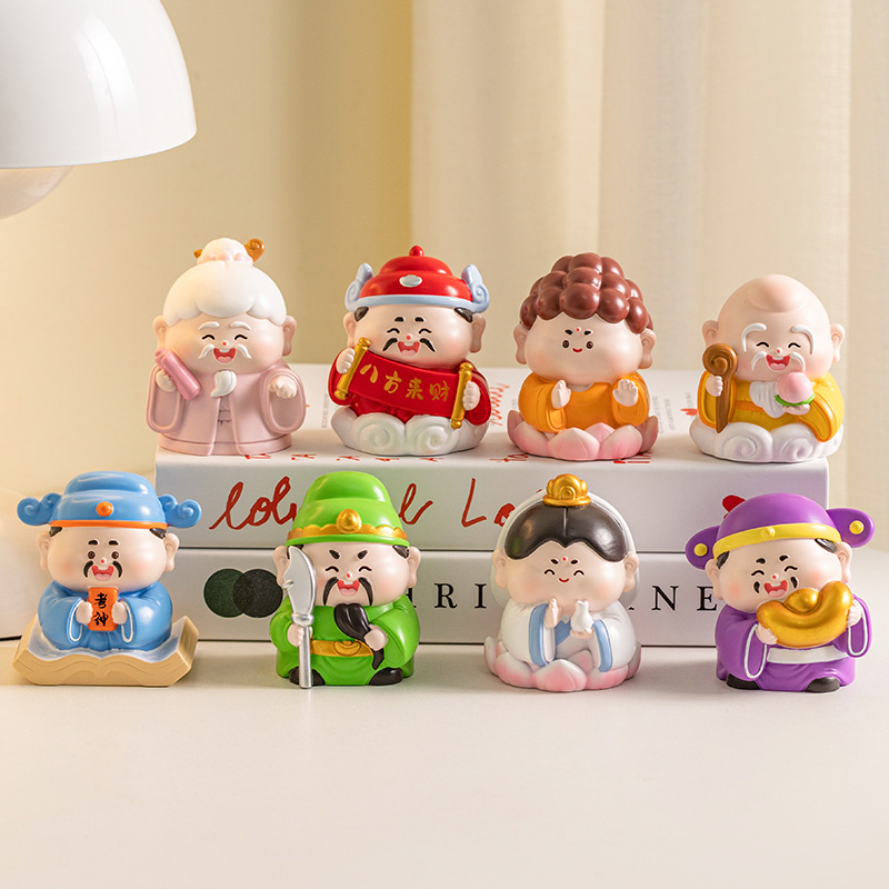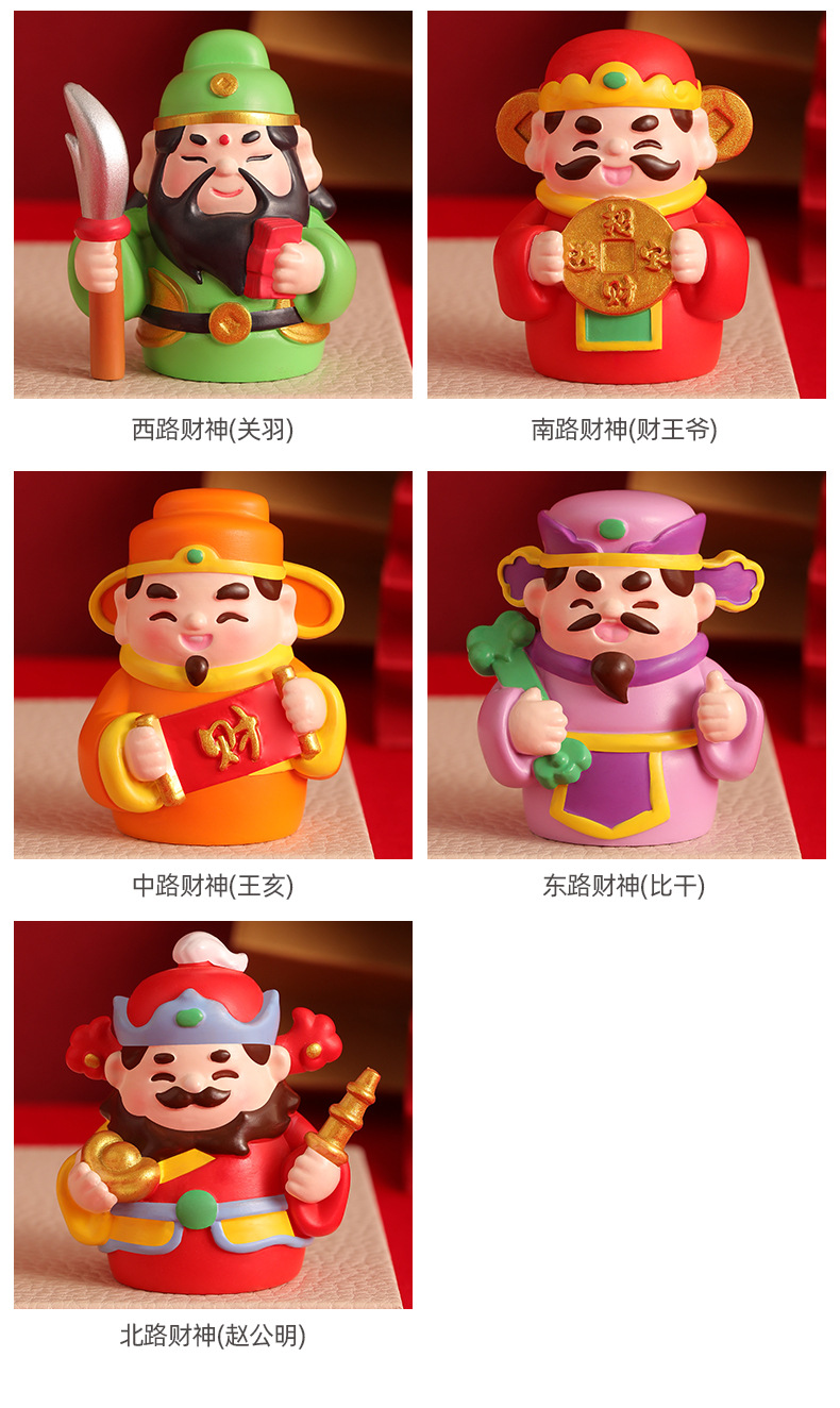 만화 부처님 수송기 수지 작은 장식품 손으로 만든 인형 남성과 여성을위한 부의 5 방향 신 선물 데스크탑 사무실 장식스토어 가기