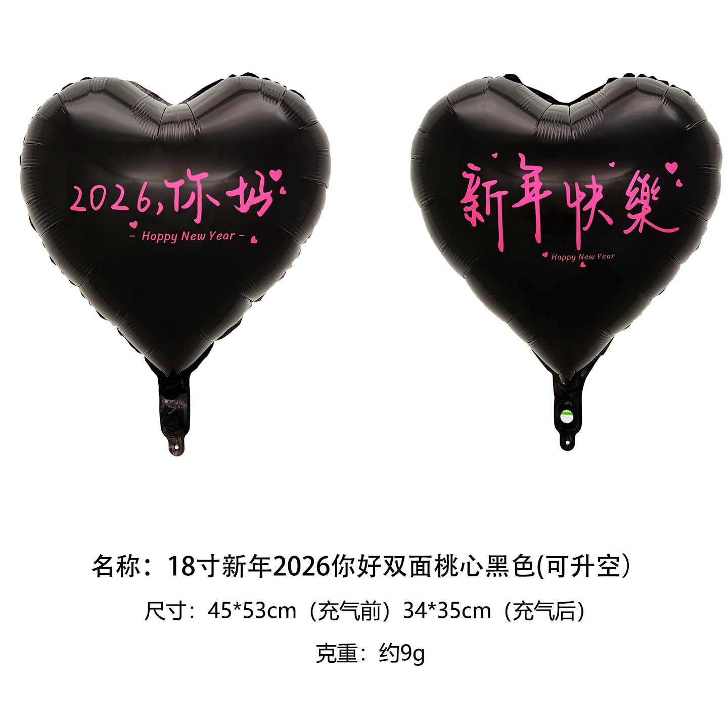 • 검정색 18inch 새해 2026 안녕하세요 양면 하트