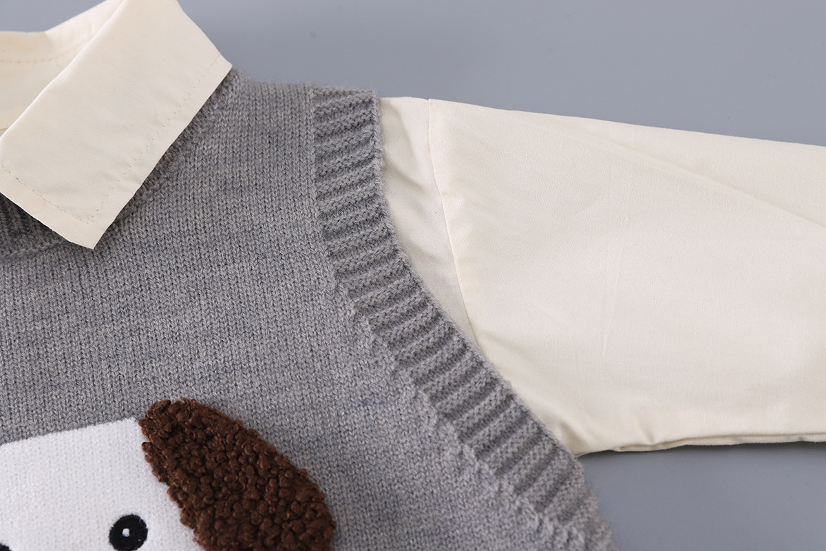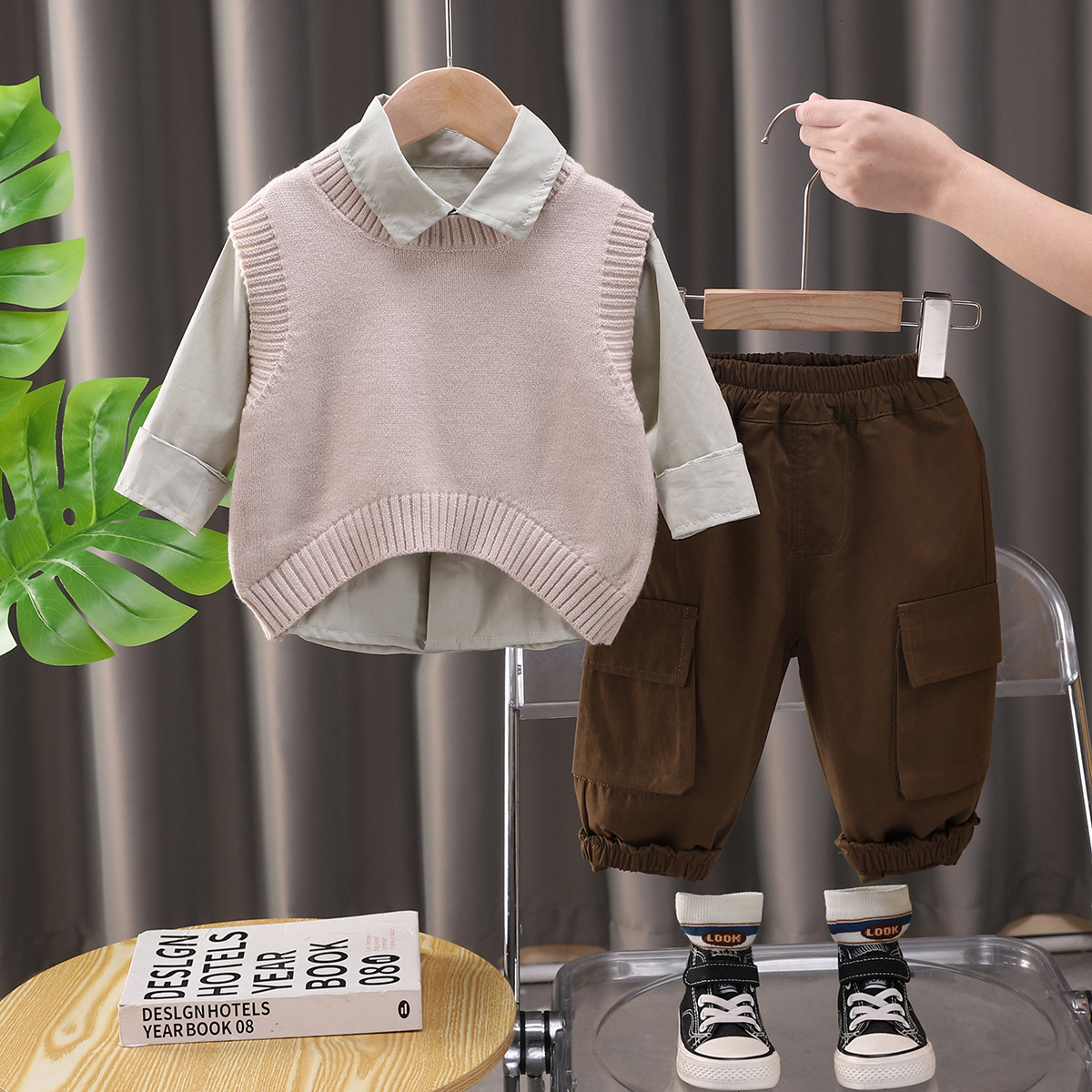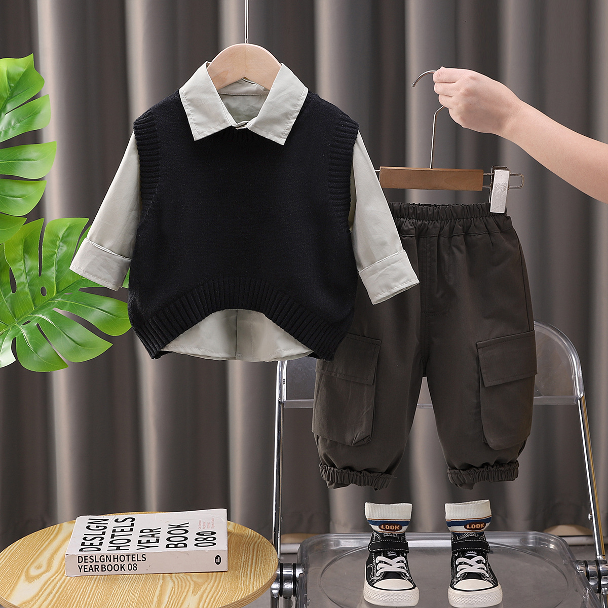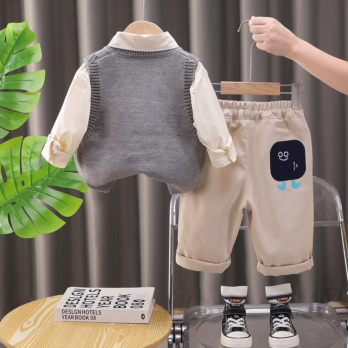 남자 아동복 봄과 가을 세트 2025 새로운 아기 어린이 잘 생긴 셔츠 3 조각 간단한 스웨터 조끼 외국 스타일스토어 가기