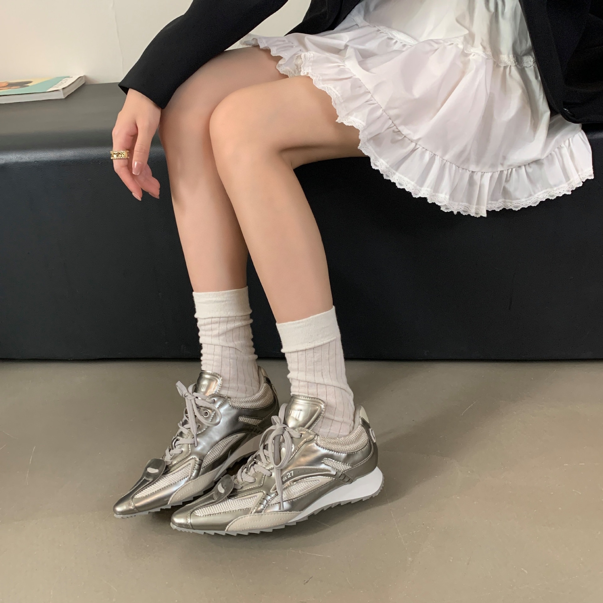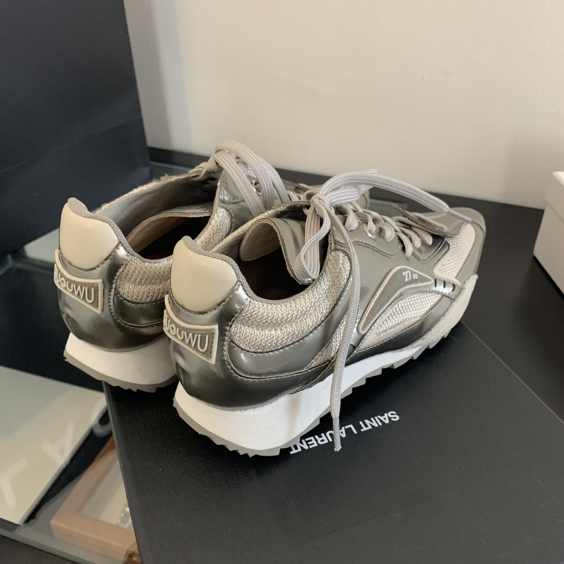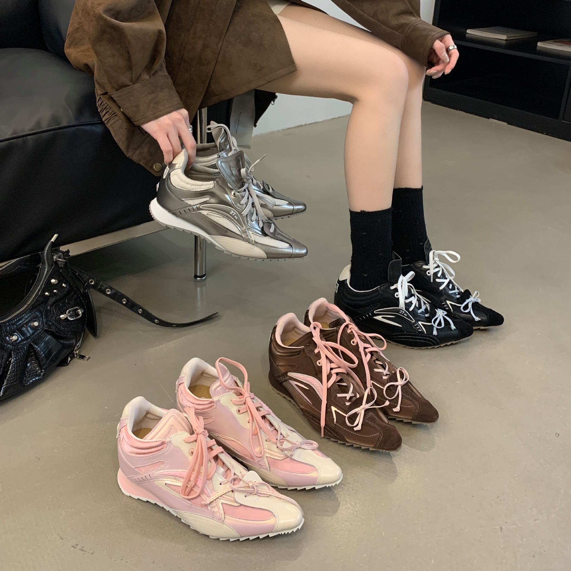 2025 새로운 가죽 내부 높이 실버 뾰족한 스포츠 캐주얼 신발 여성 싸움 천사 권투 신발 로우 탑스토어 가기