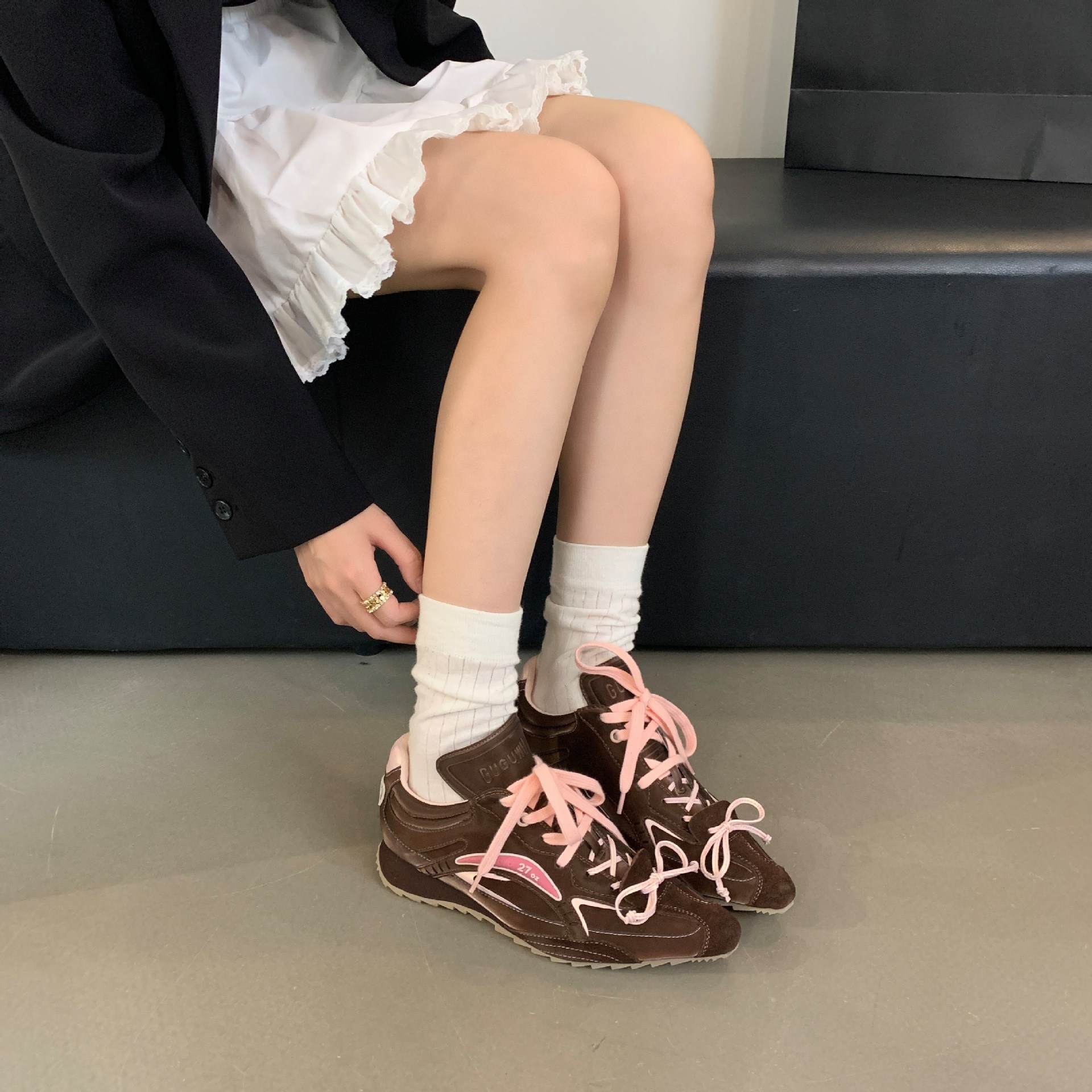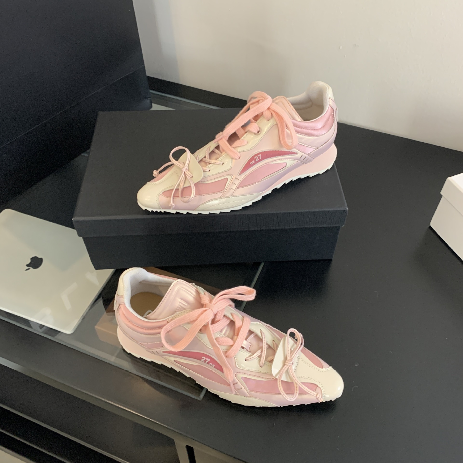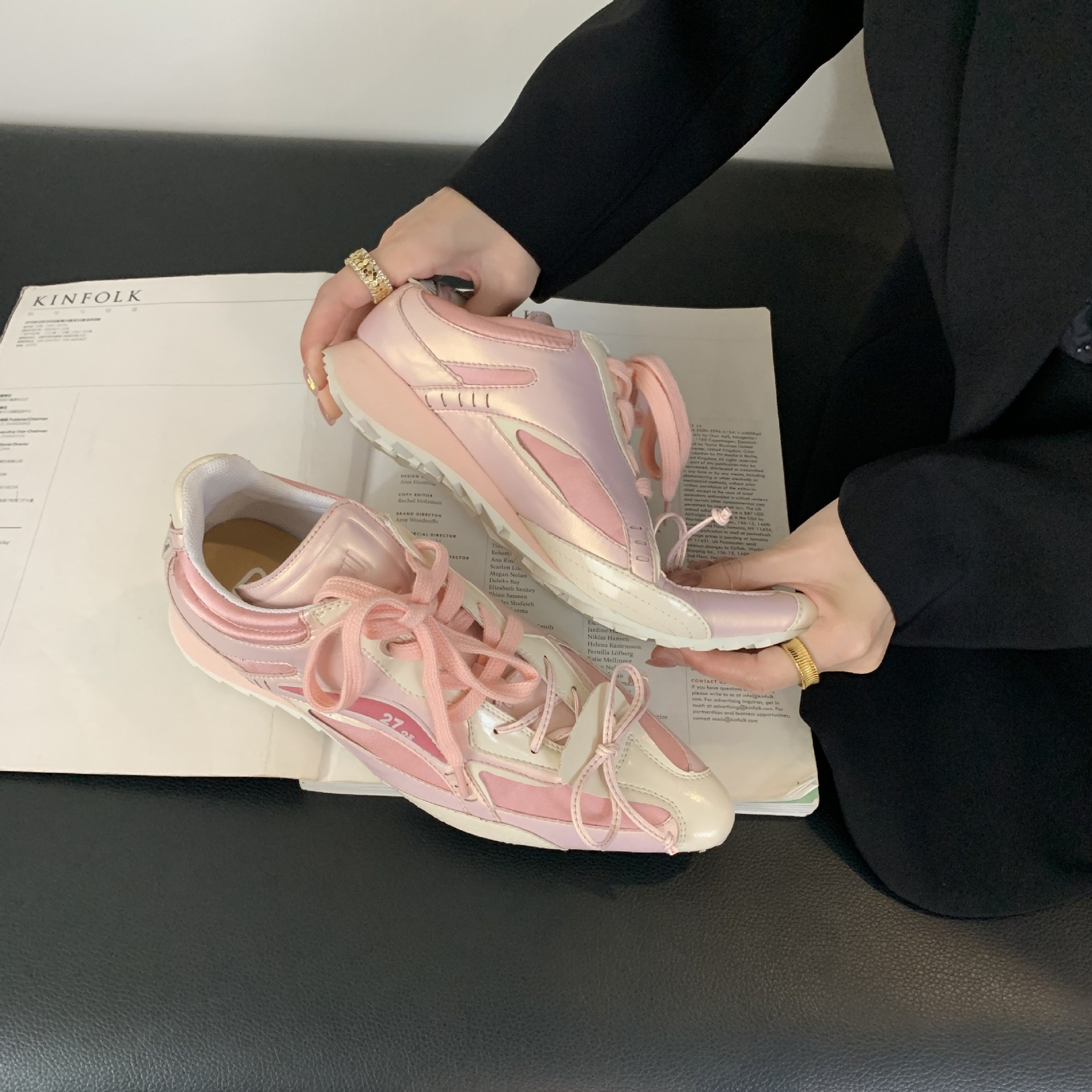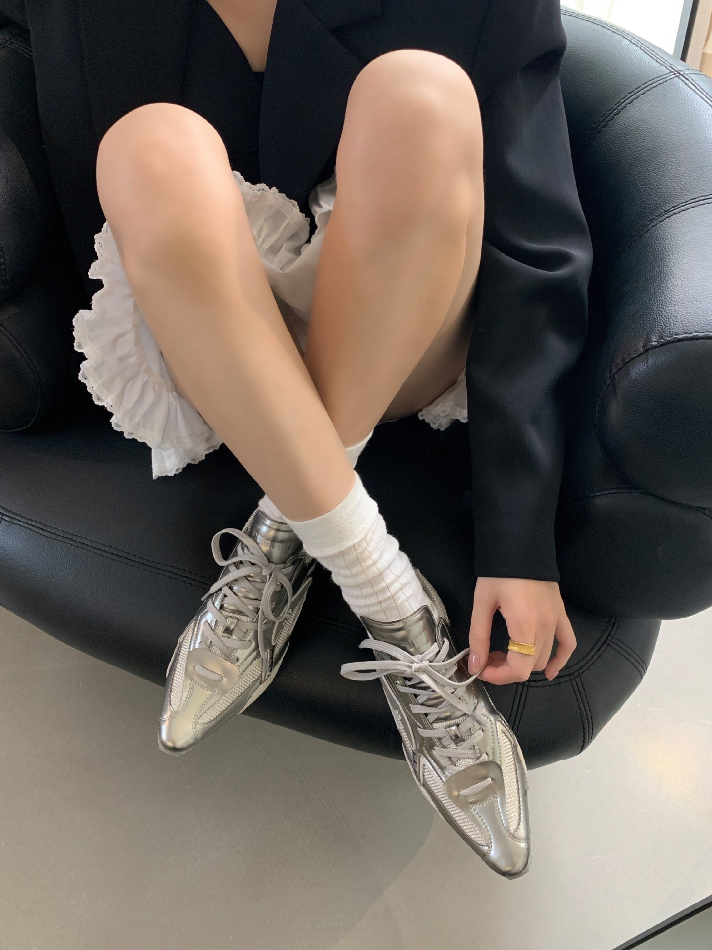 2025 새로운 가죽 내부 높이 실버 뾰족한 스포츠 캐주얼 신발 여성 싸움 천사 권투 신발 로우 탑스토어 가기