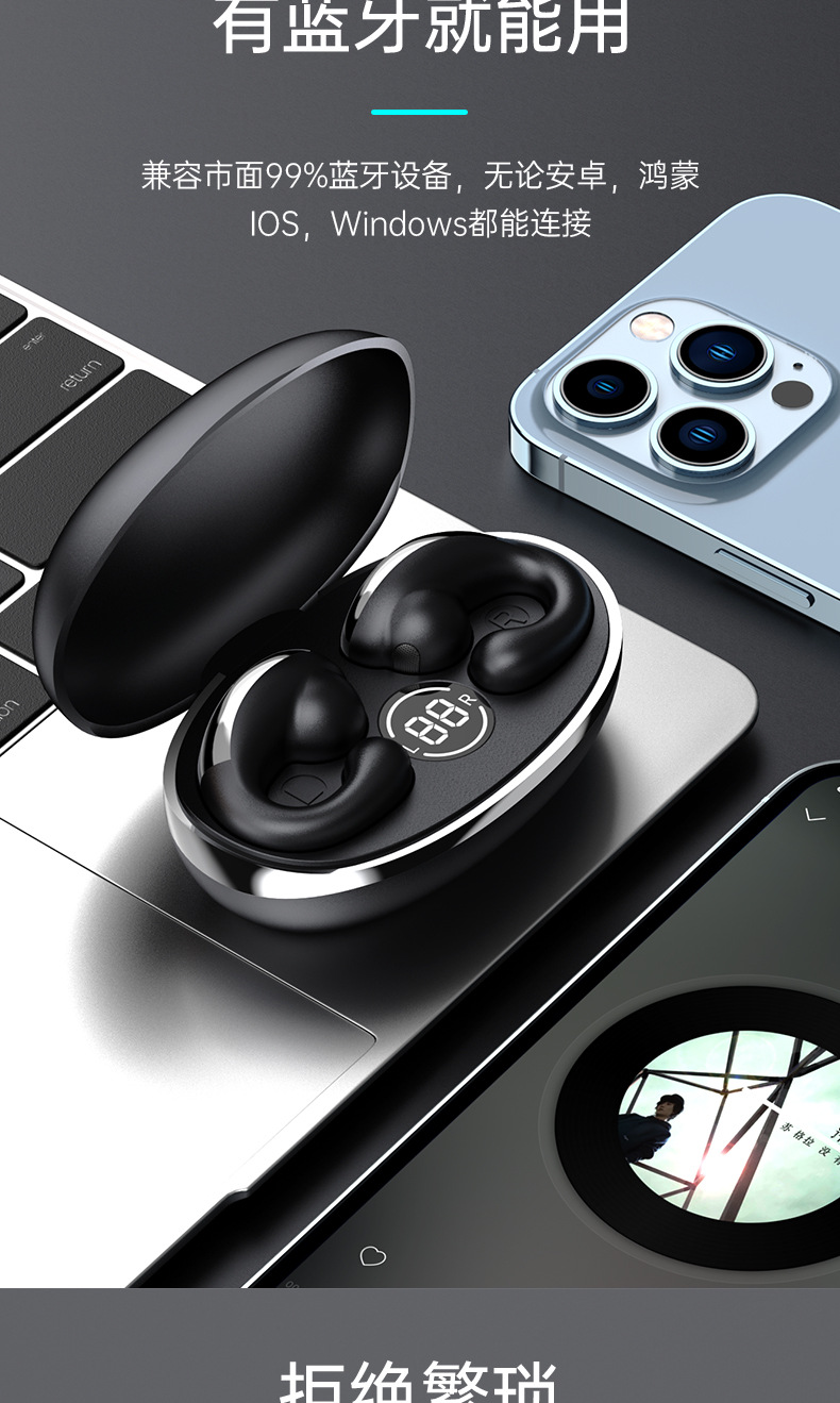 인기 무선 이어클립 블루투스 이어폰 OWS 노이즈 캔슬링 디지털 디스플레이 편안한 착용감 스포츠용 긴 배터리 수명 고품질 사운드