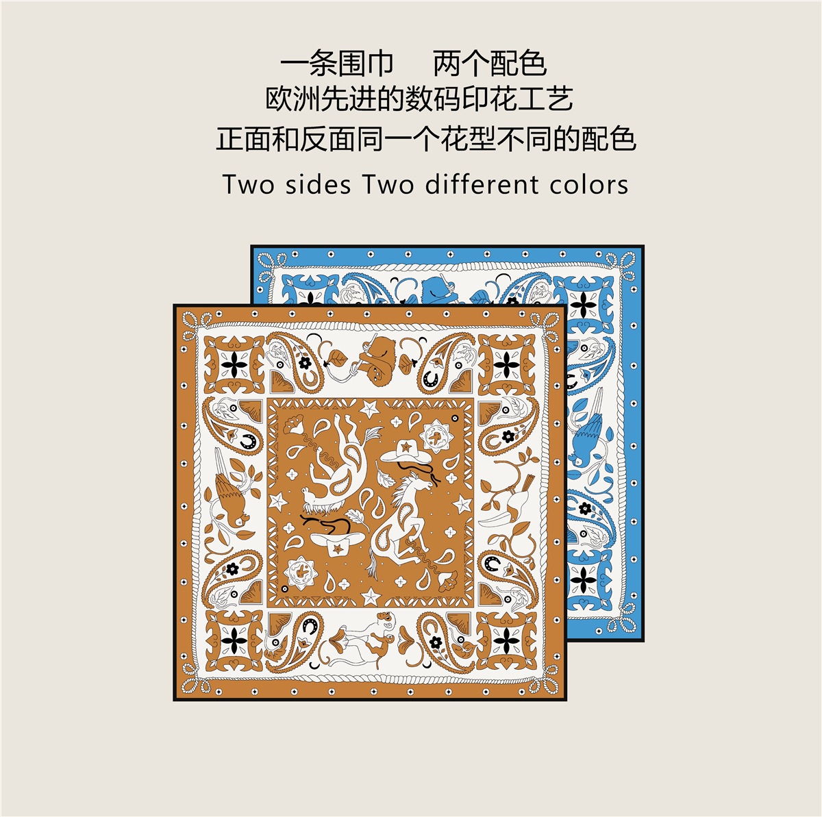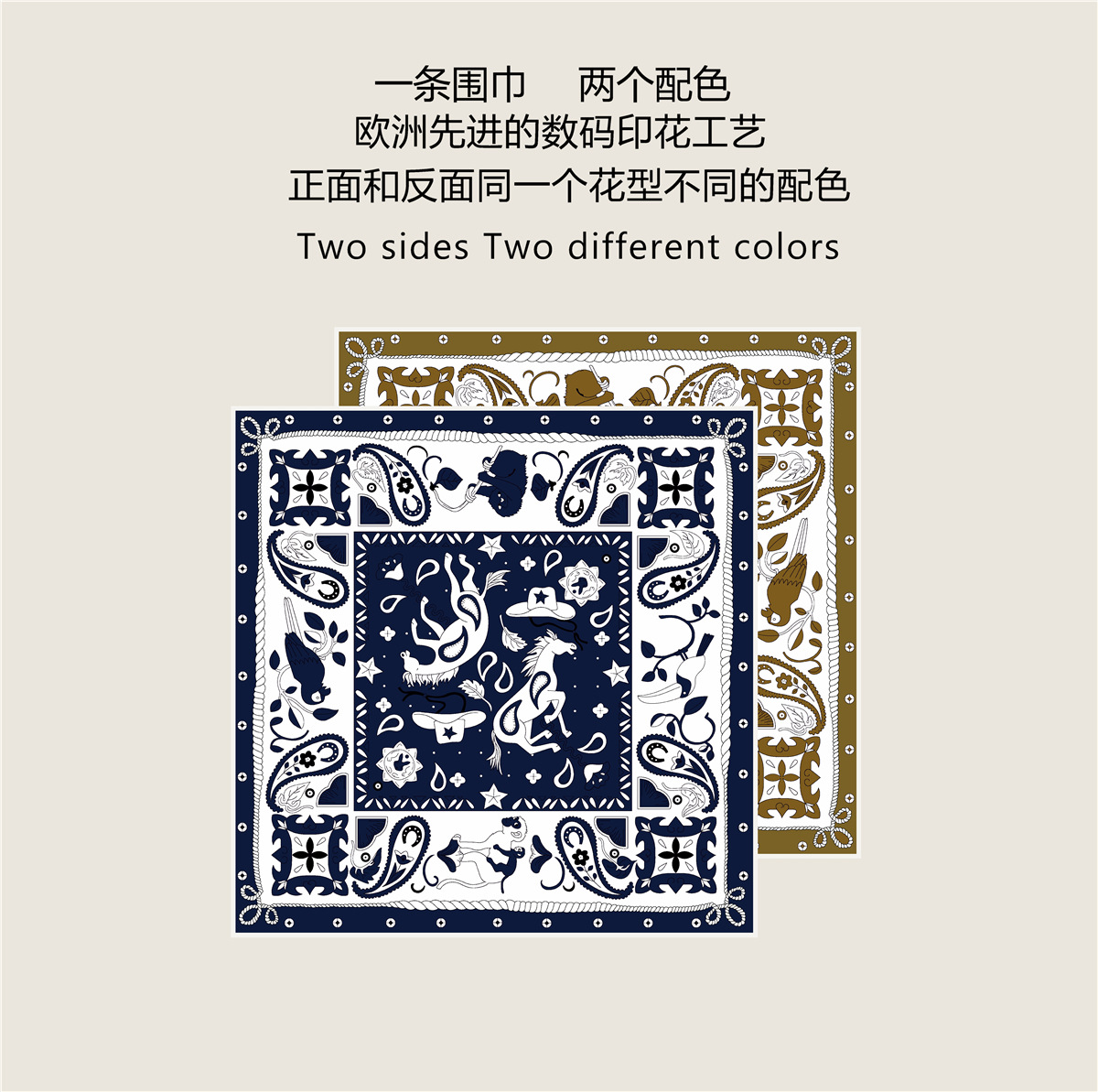 90cm 새로운 캐슈 유니콘 여성용 트윌 실크 롤 양면 같은 꽃 컬러 대형 스퀘어 목도리 스카프