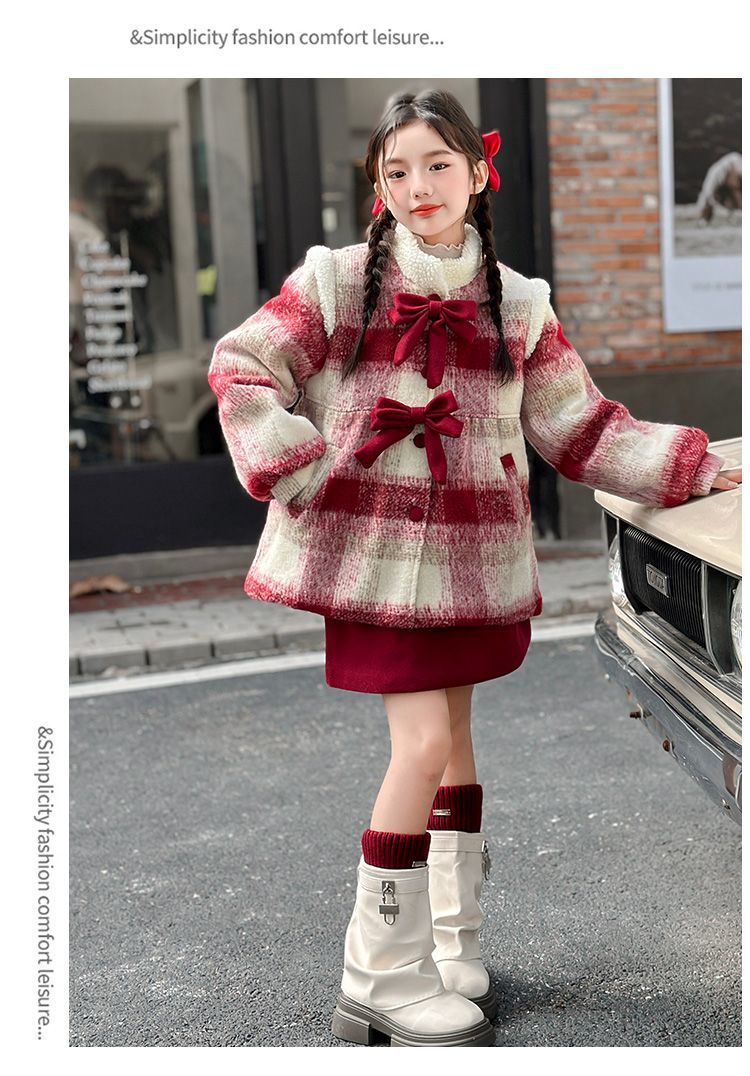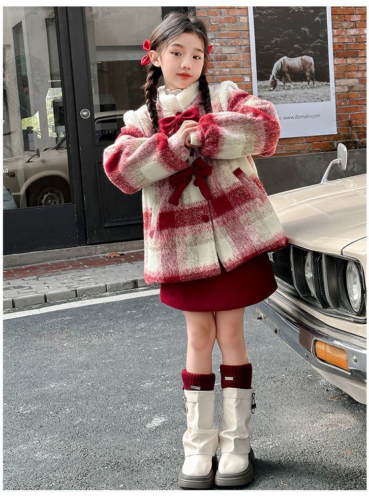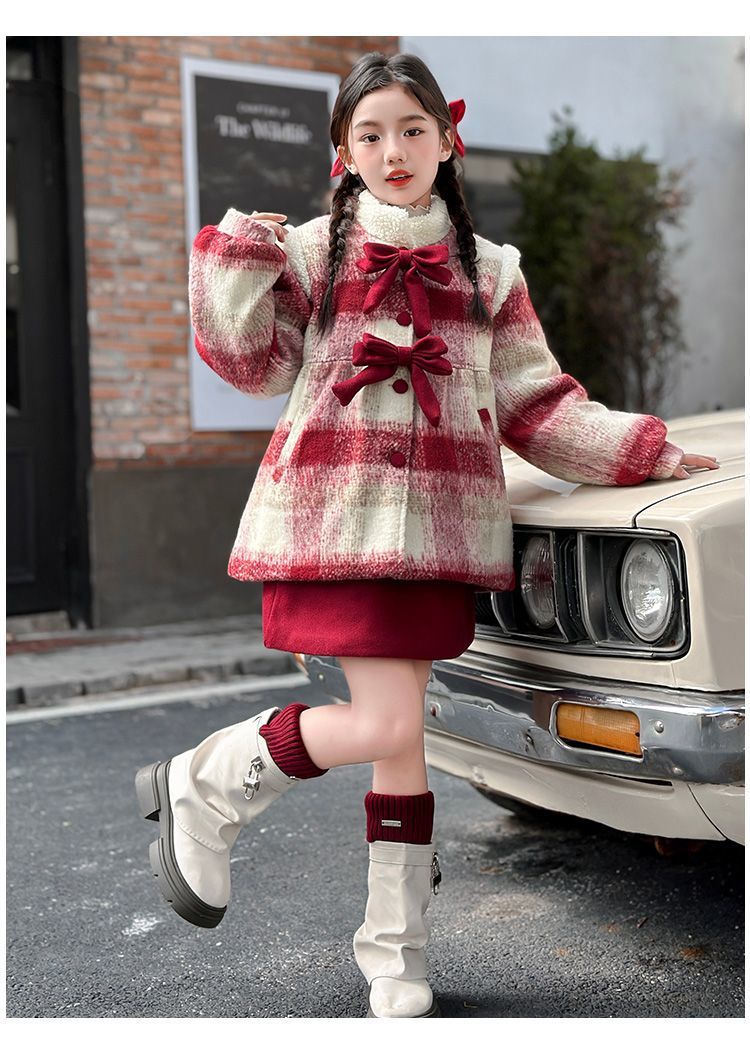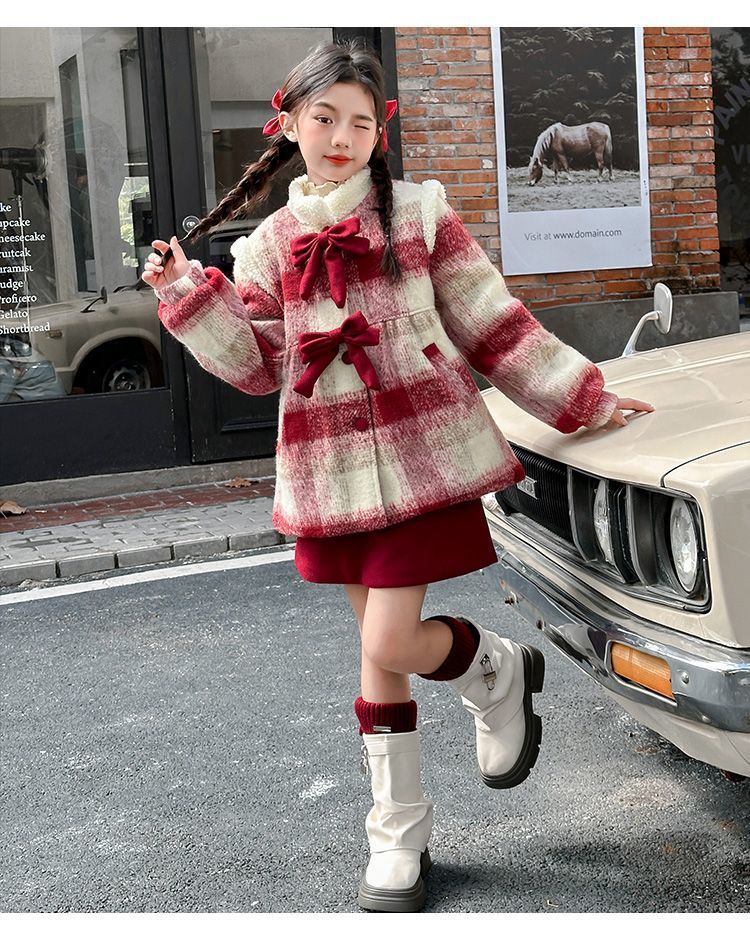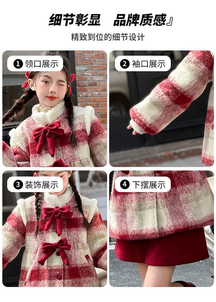 소녀의 겨울 치마 세트 가을과 겨울 2024 새로운 어린이 크리스마스 전쟁 가운 스커트 소녀 큰 어린이 샤넬 스타일 신년 옷스토어 가기