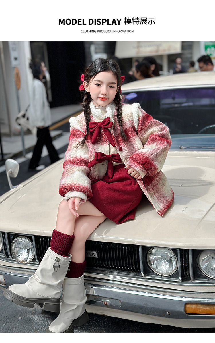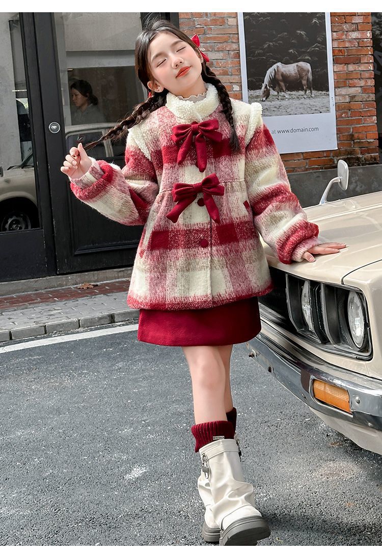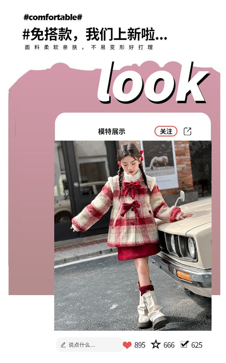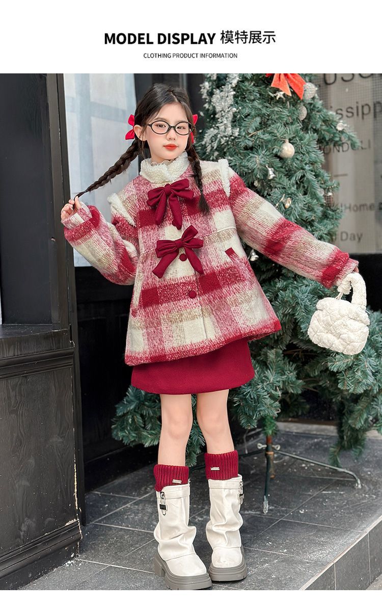 소녀의 겨울 치마 세트 가을과 겨울 2024 새로운 어린이 크리스마스 전쟁 가운 스커트 소녀 큰 어린이 샤넬 스타일 신년 옷스토어 가기
