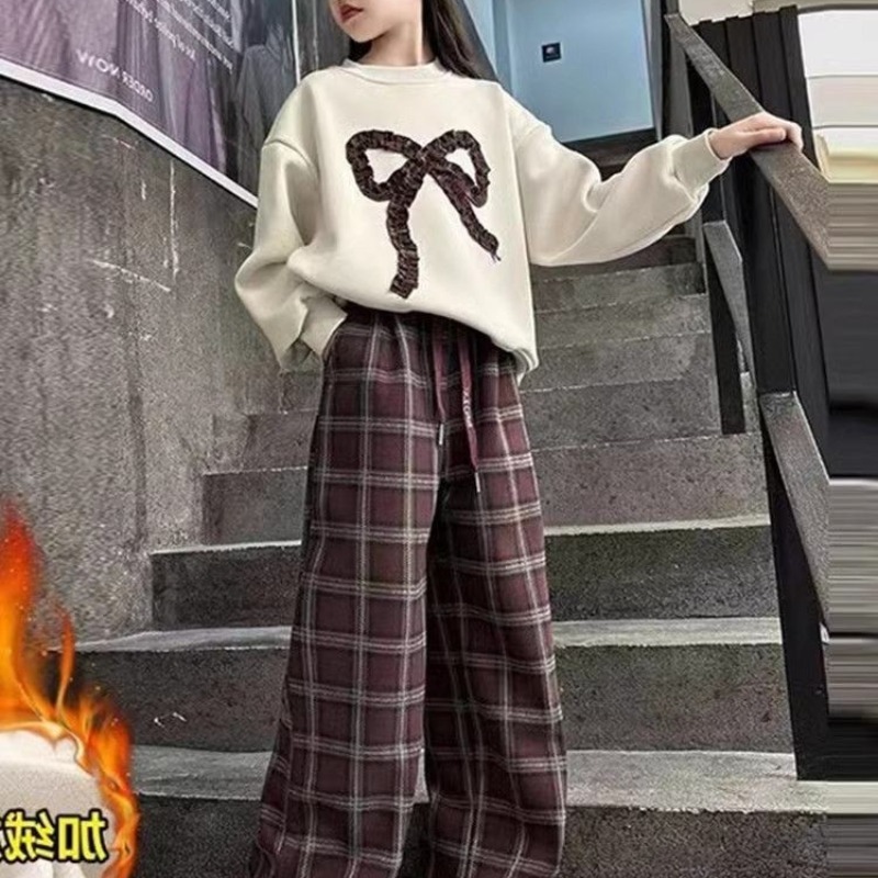 소녀 한국 스타일 캐주얼 세트 새 스타일 서양식 크리스마스 레드 스웨터 새해 어린이 유행 신년 옷스토어 가기