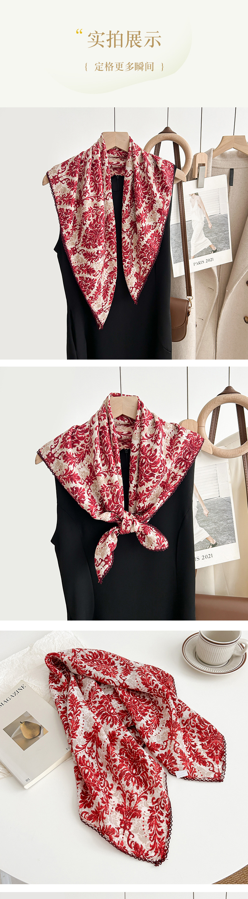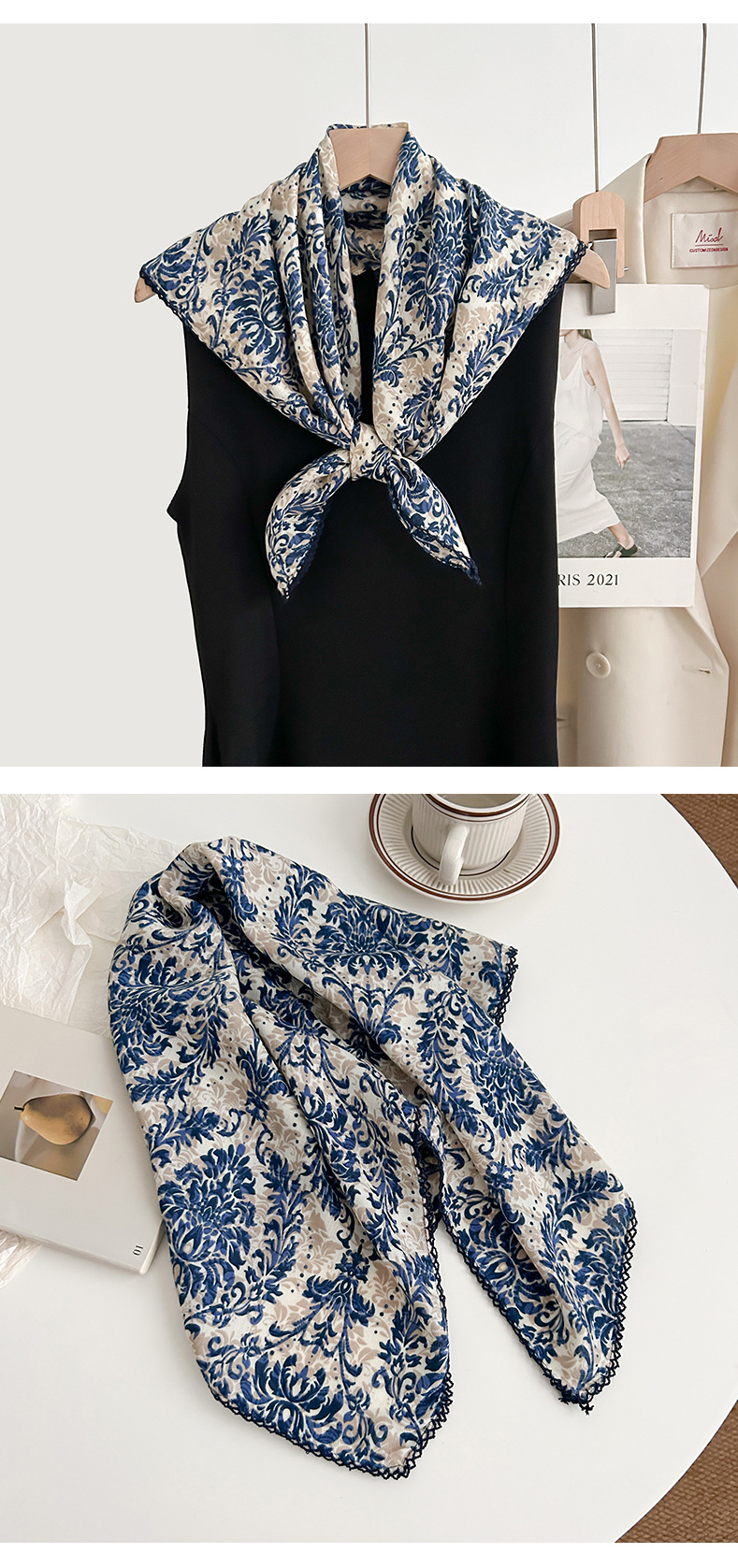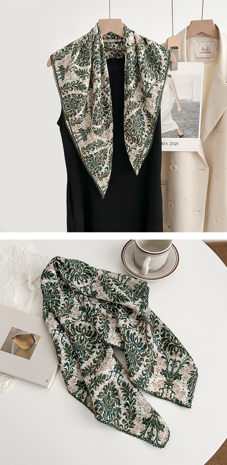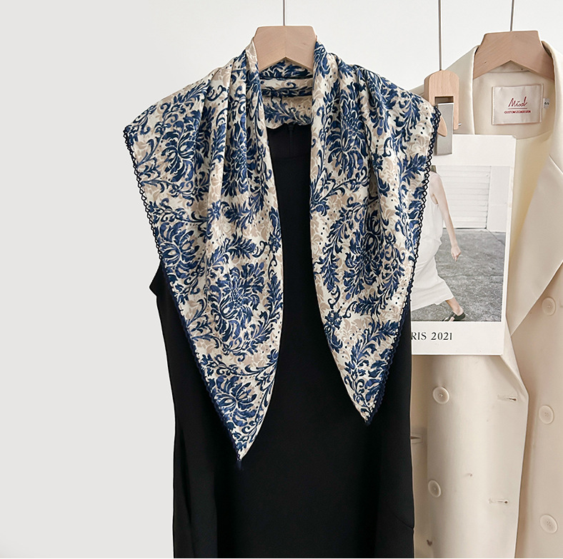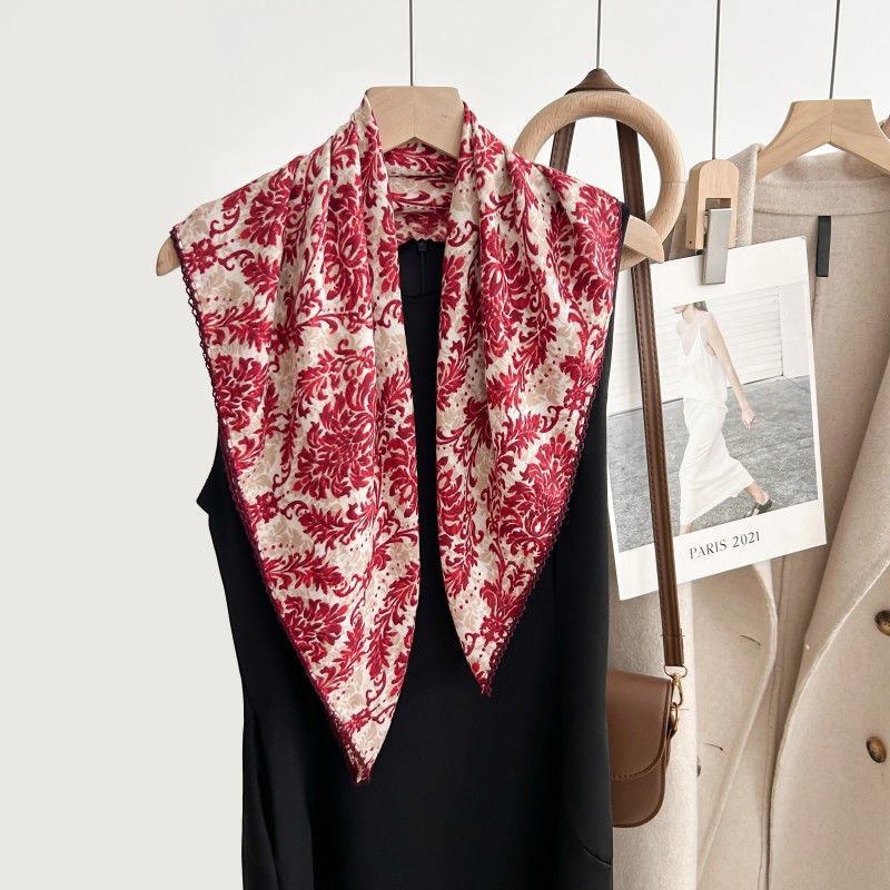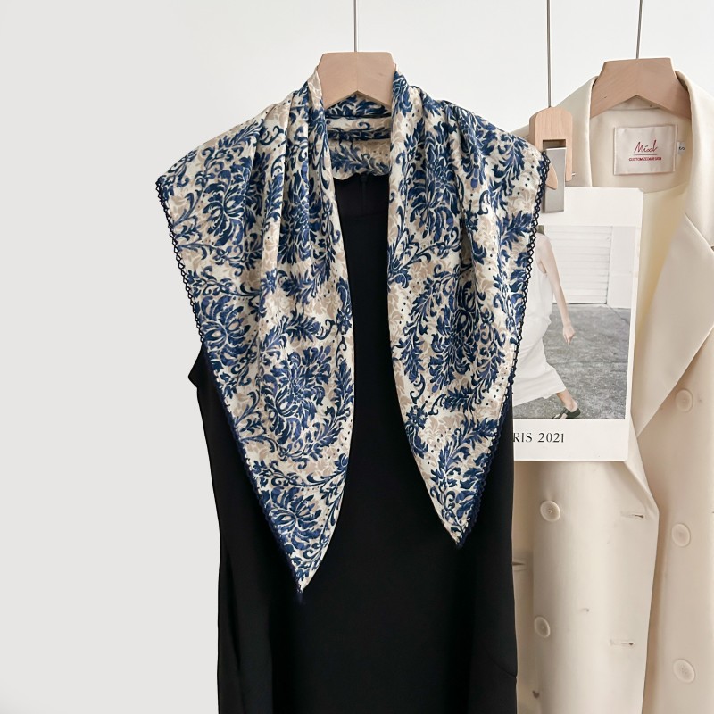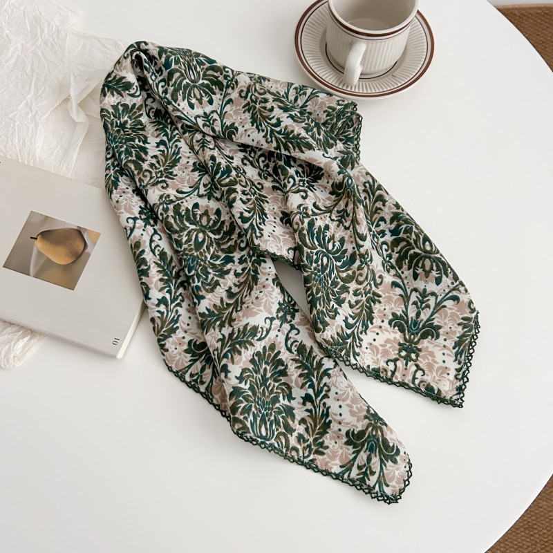 빈티지 신선한 스타일 꽃 발가락 실크 스카프 여성용 목 따뜻한 스카프 헤어 벨트 모방 실크 울 70 스퀘어 스카프