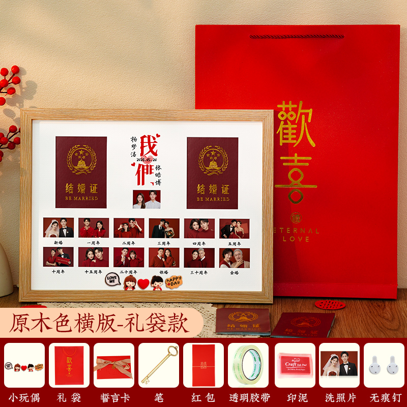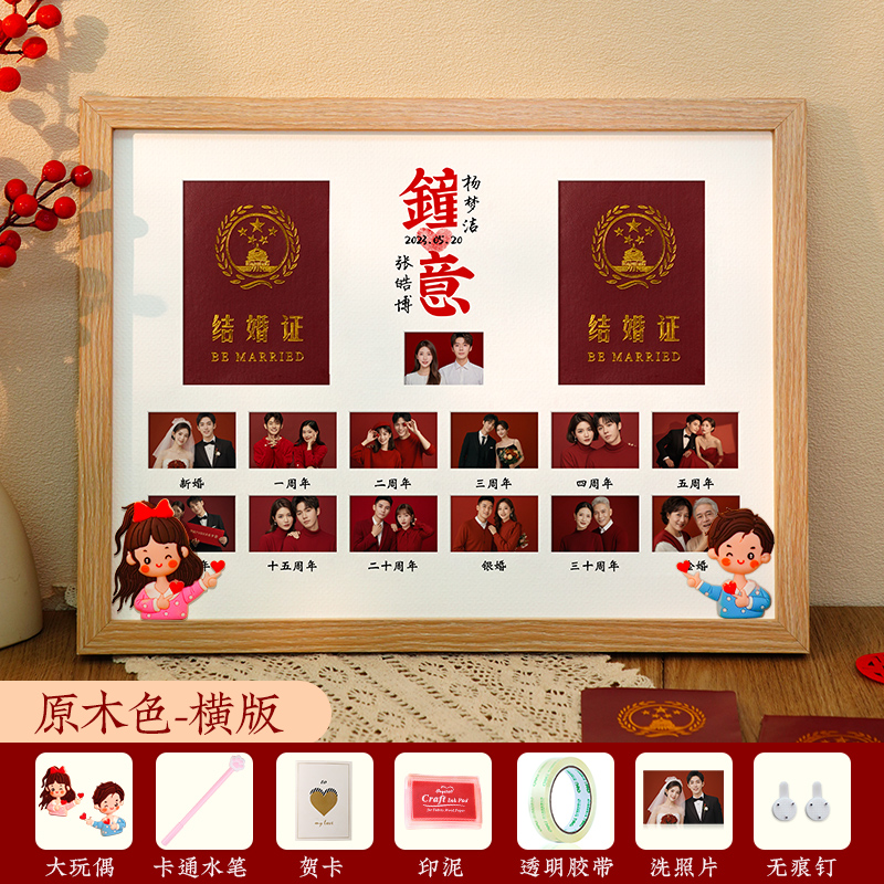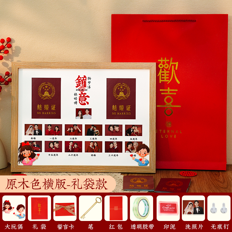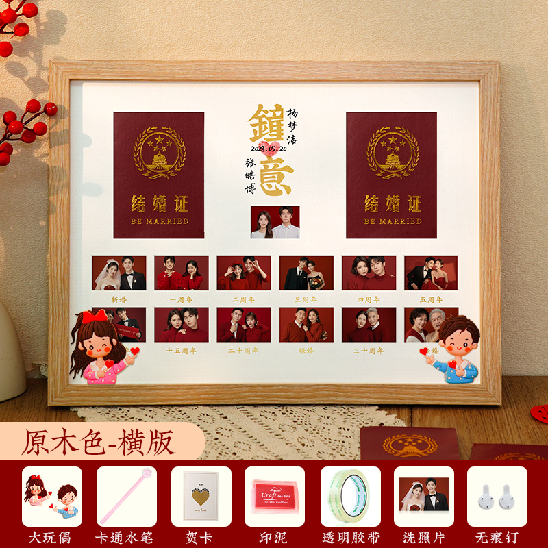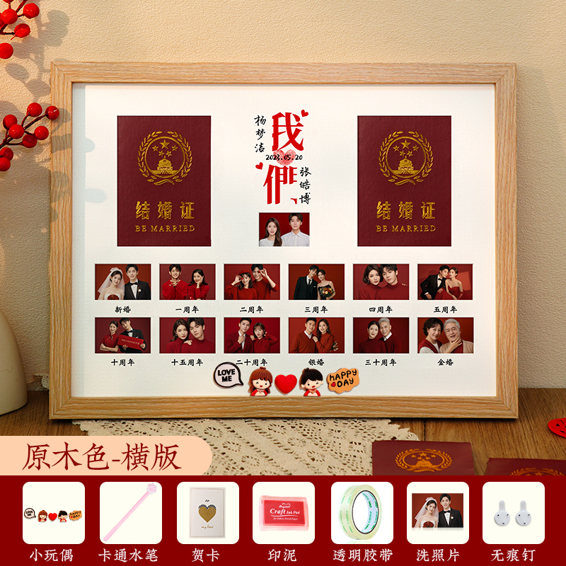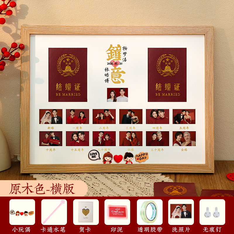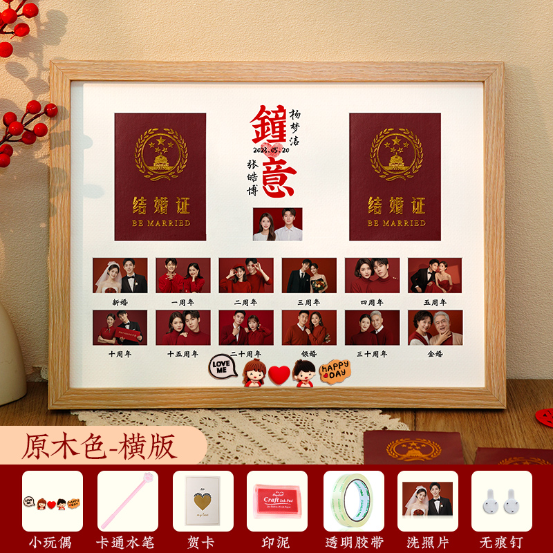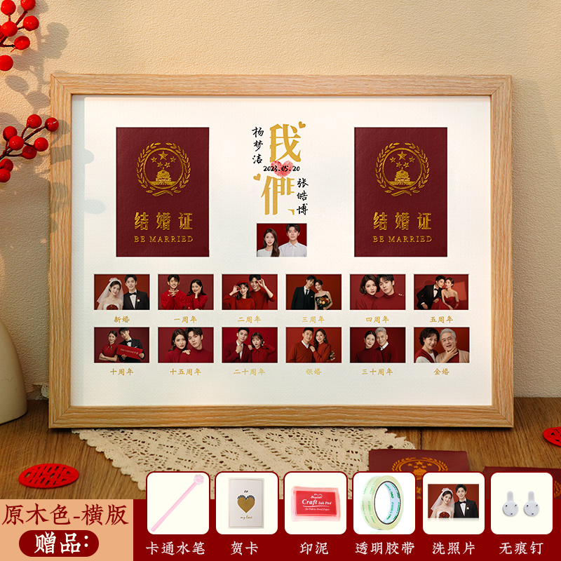결혼식 증명서 사진 프레임 결혼식 등록 사진 기념일 보관 창조적 인 장식품 선물 사진 Yingque