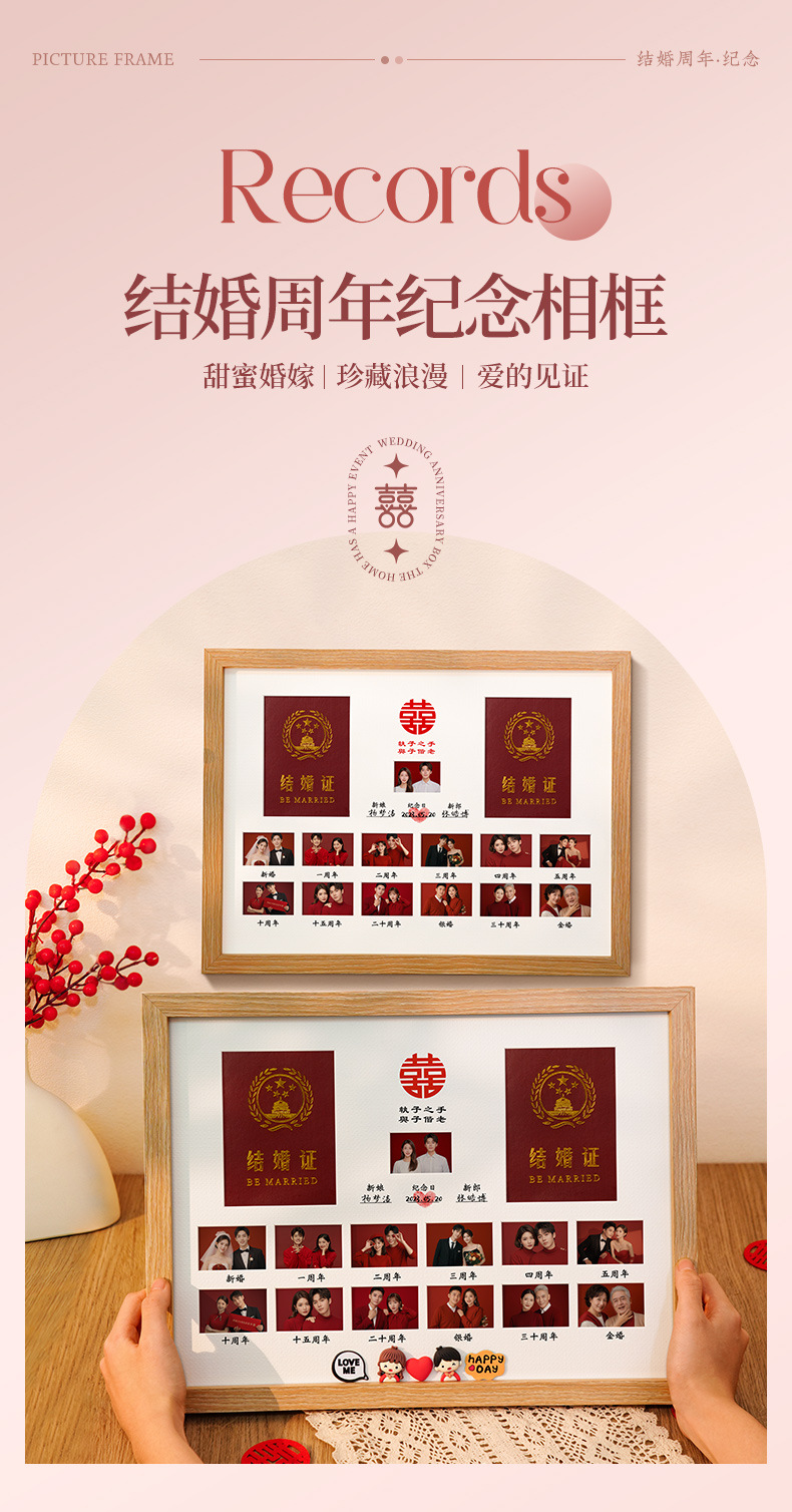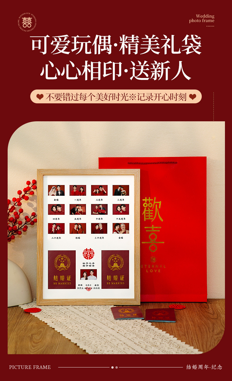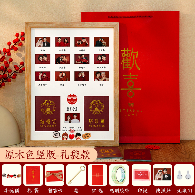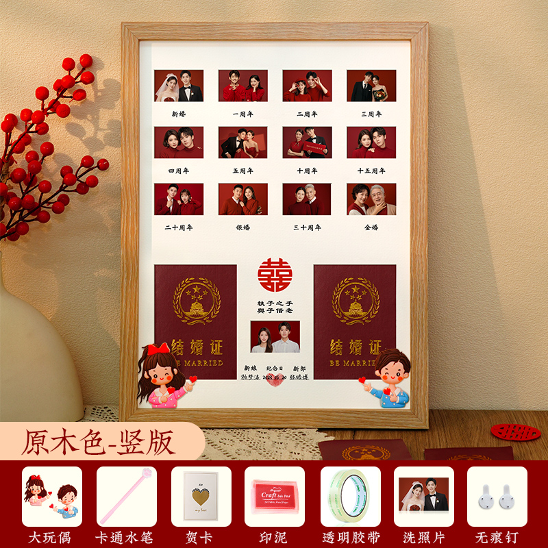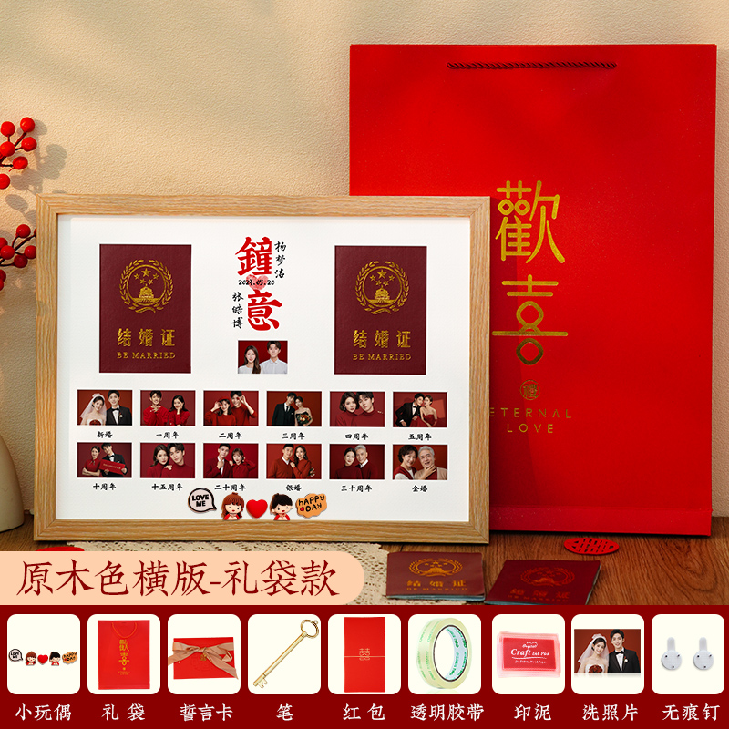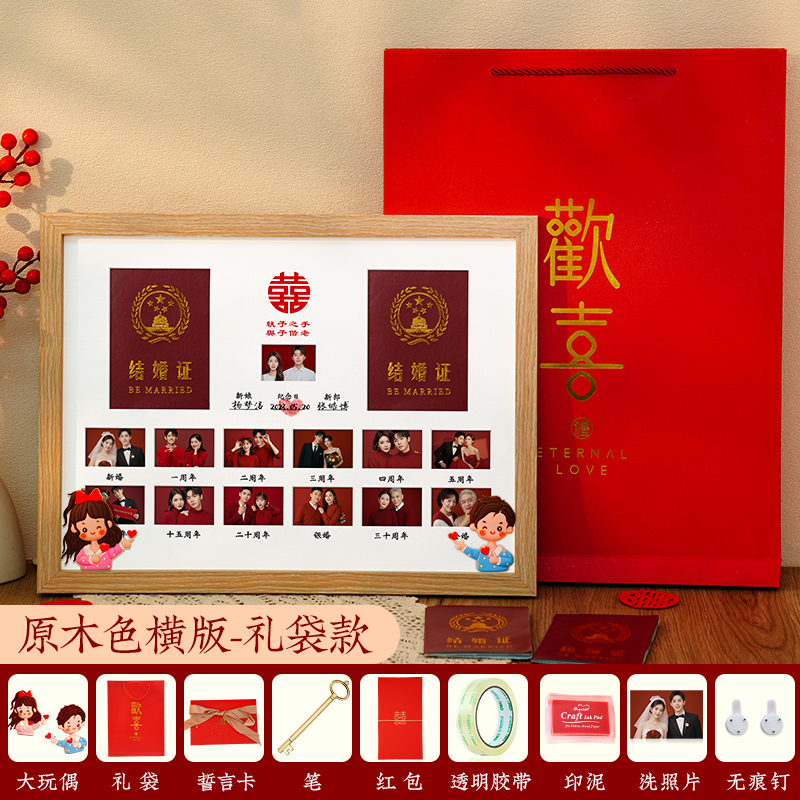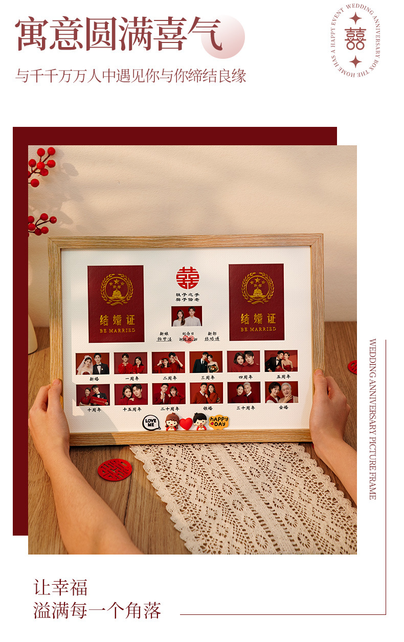 결혼식 증명서 사진 프레임 결혼식 등록 사진 기념일 보관 창조적 인 장식품 선물 사진 Yingque