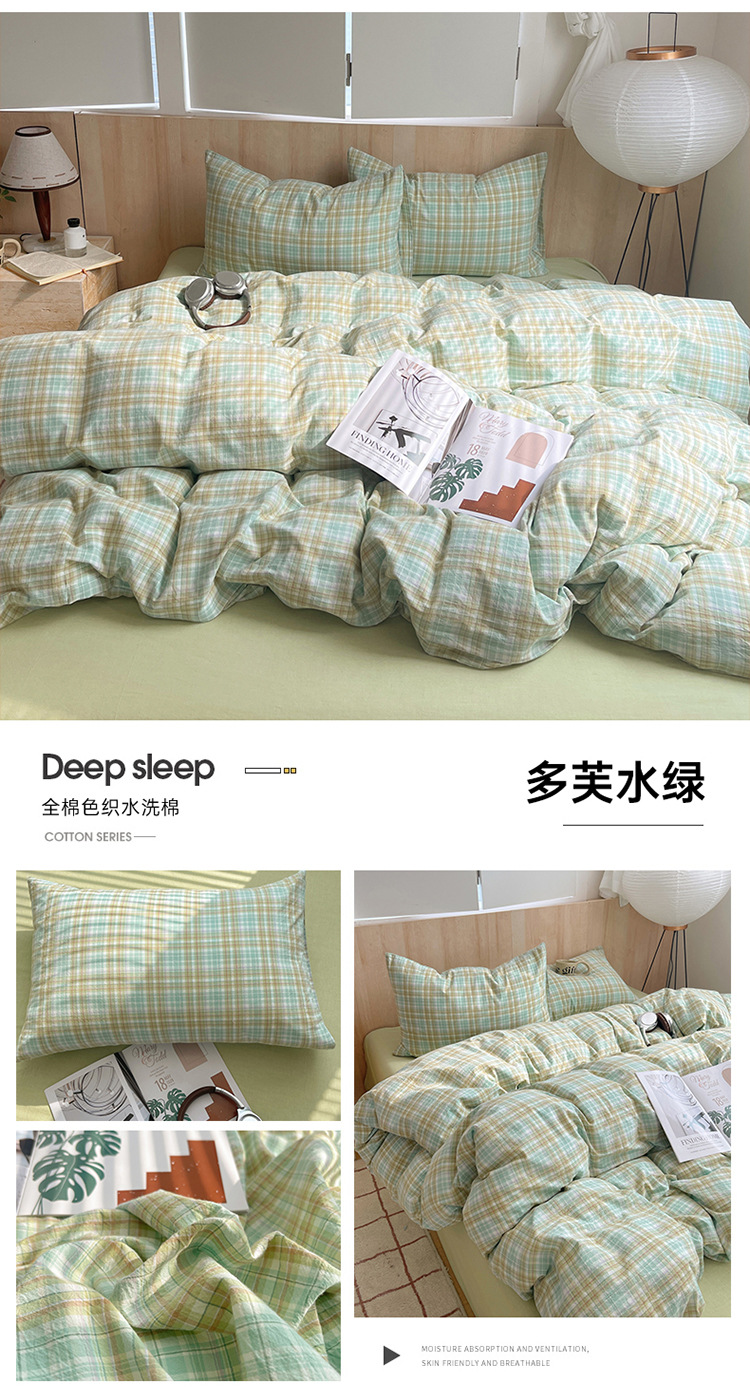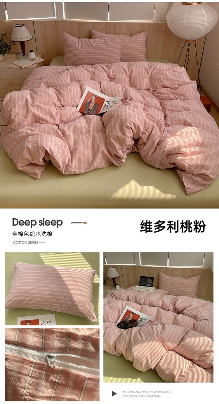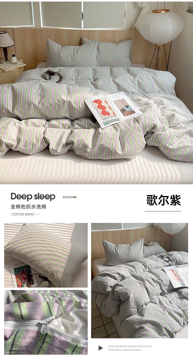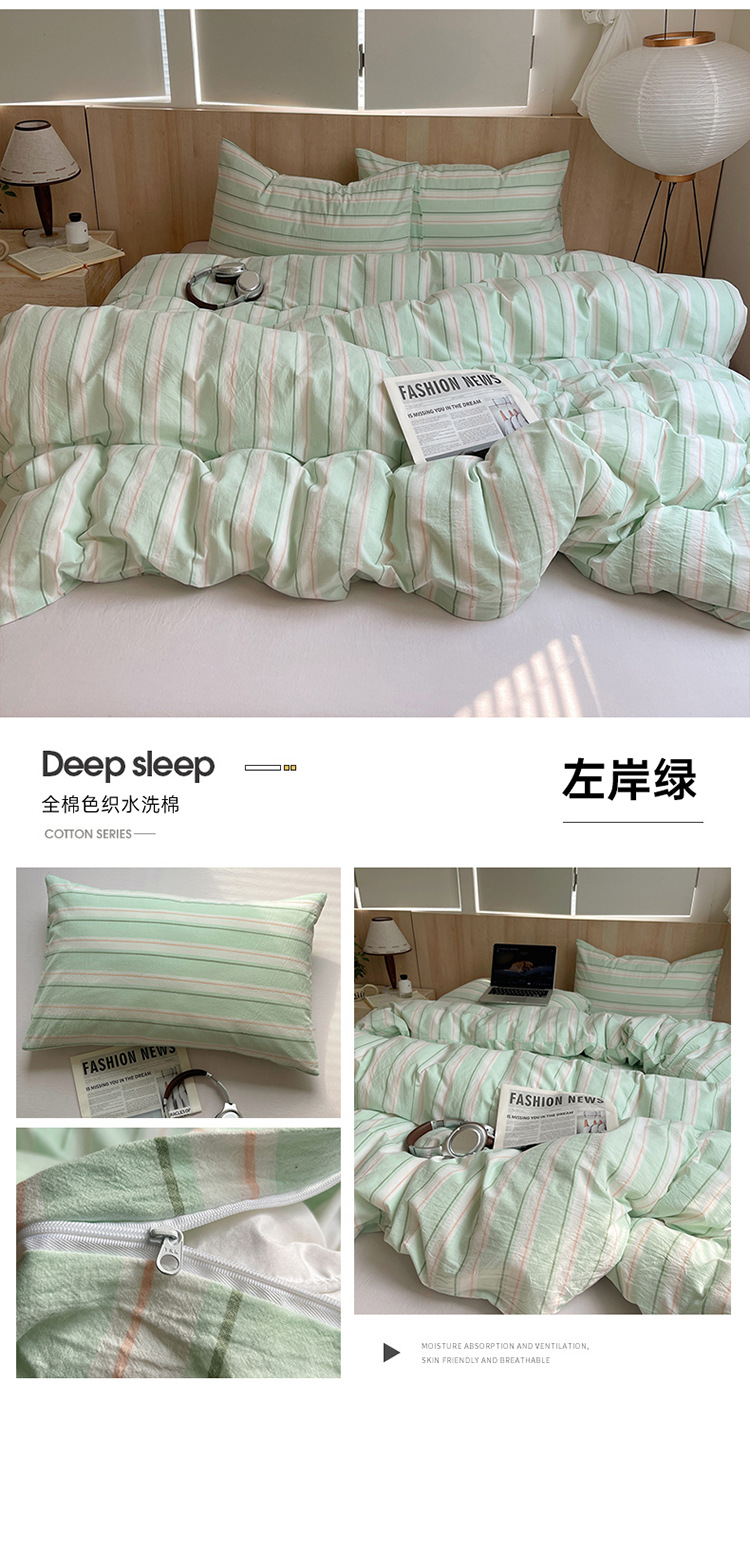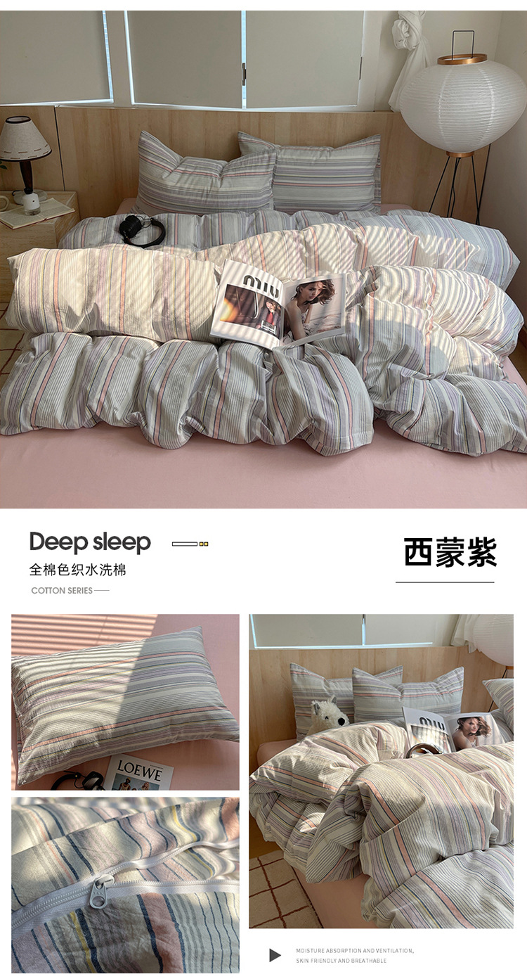잉보 마스터 윈드 원사 염색 워시 코튼 4 피스 세트 퓨어 코튼 베드 시트 퀼트 커버 학생 기숙사 싱글 침대 3 Yingque