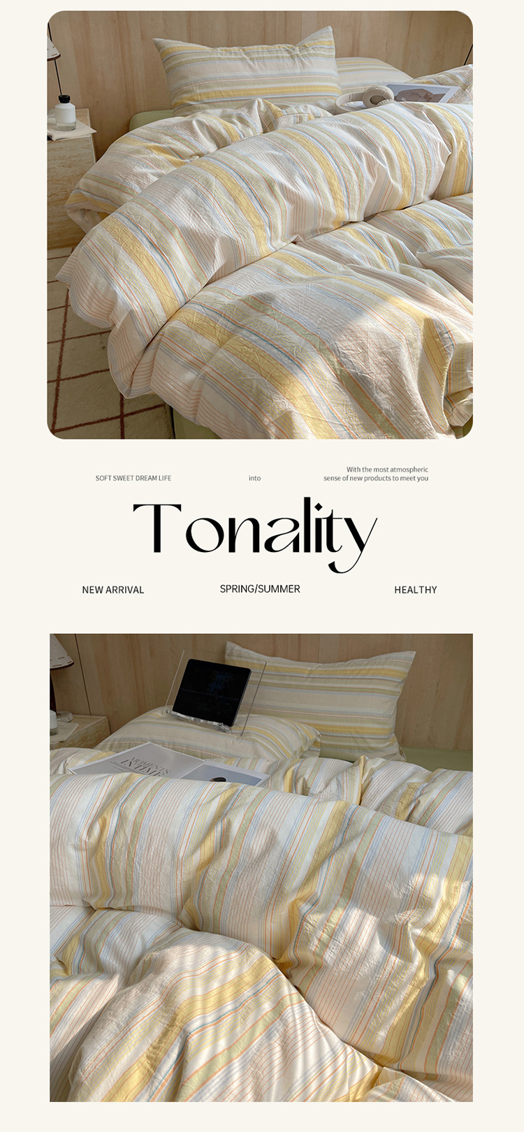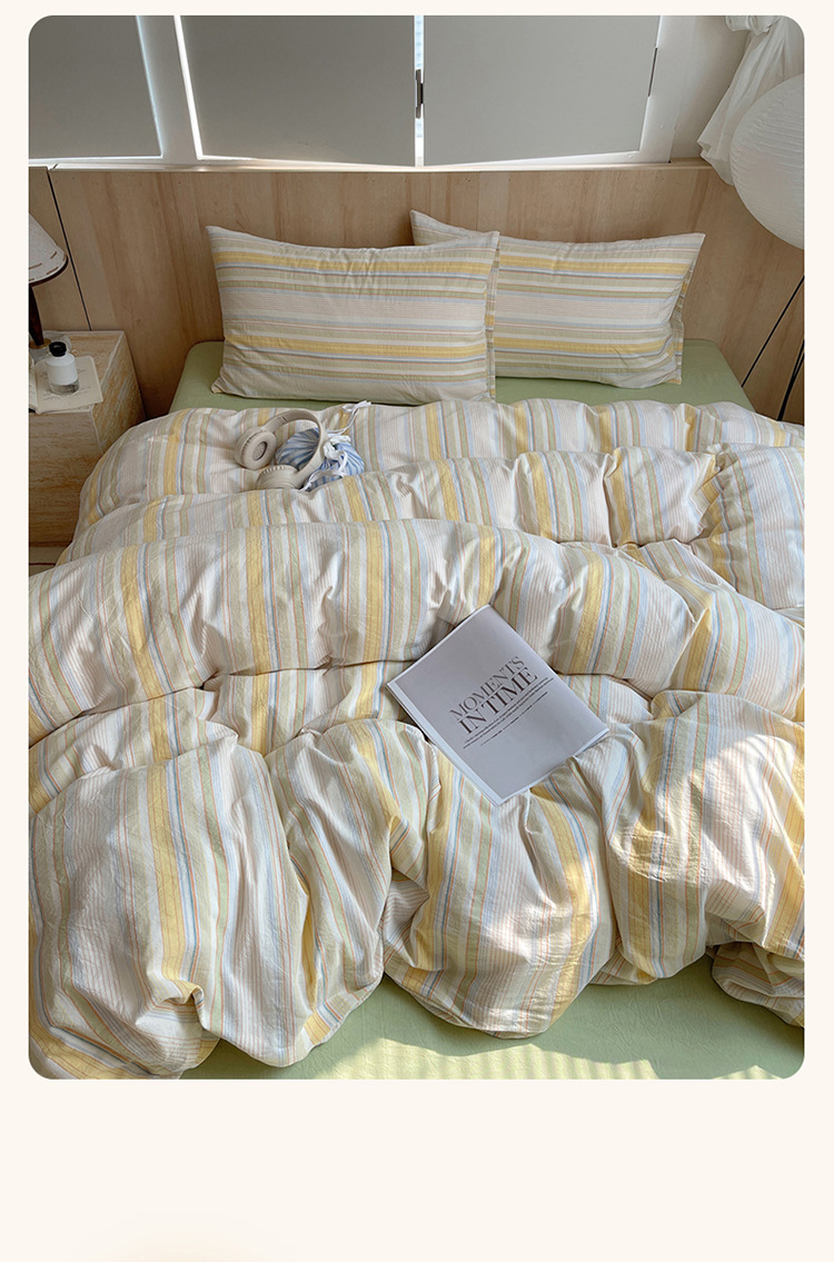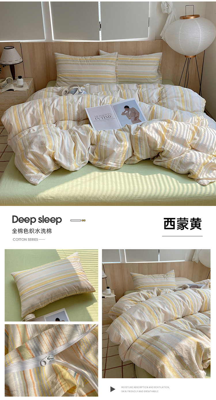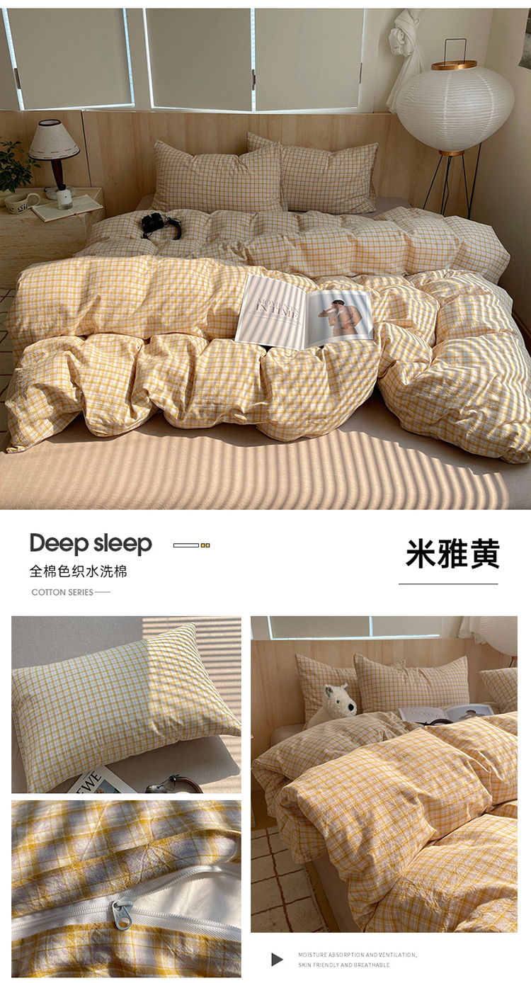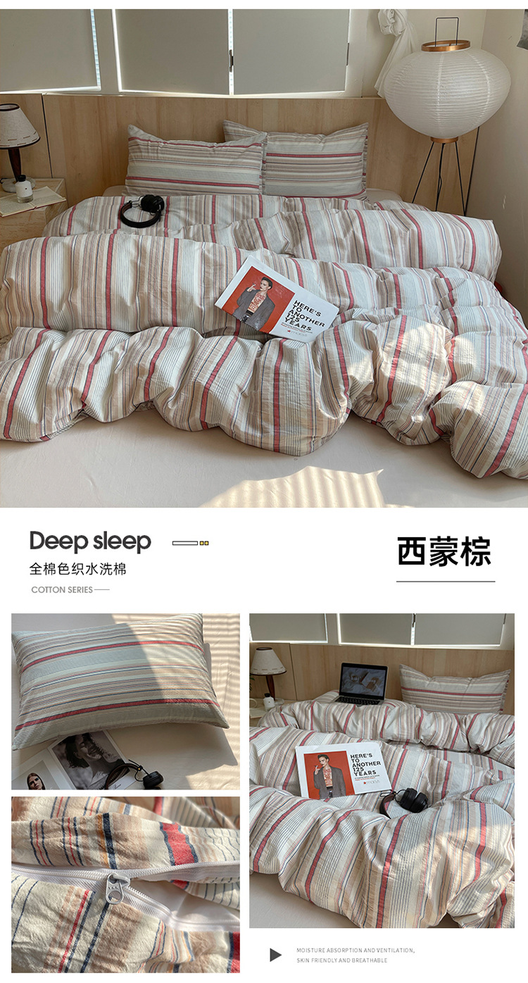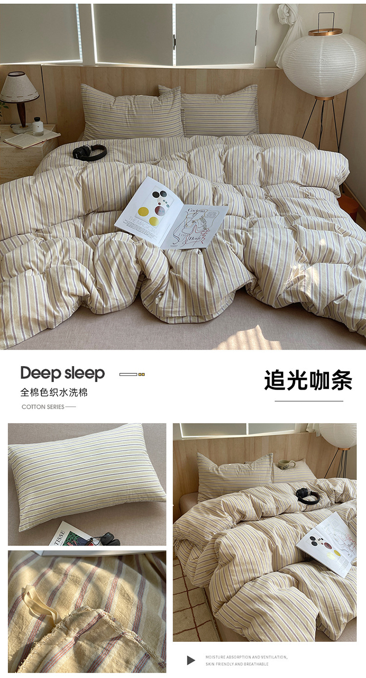 잉보 마스터 윈드 원사 염색 워시 코튼 4 피스 세트 퓨어 코튼 베드 시트 퀼트 커버 학생 기숙사 싱글 침대 3 Yingque