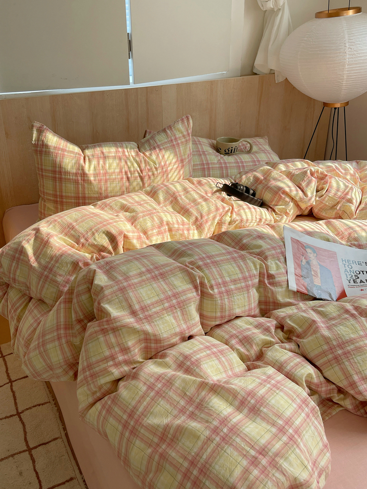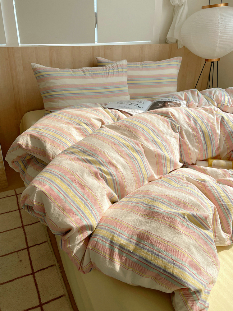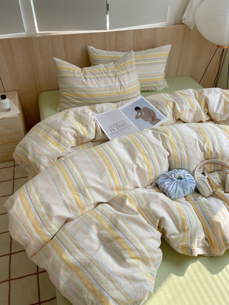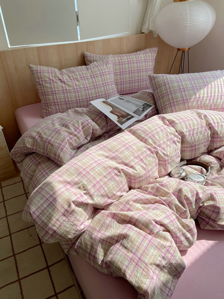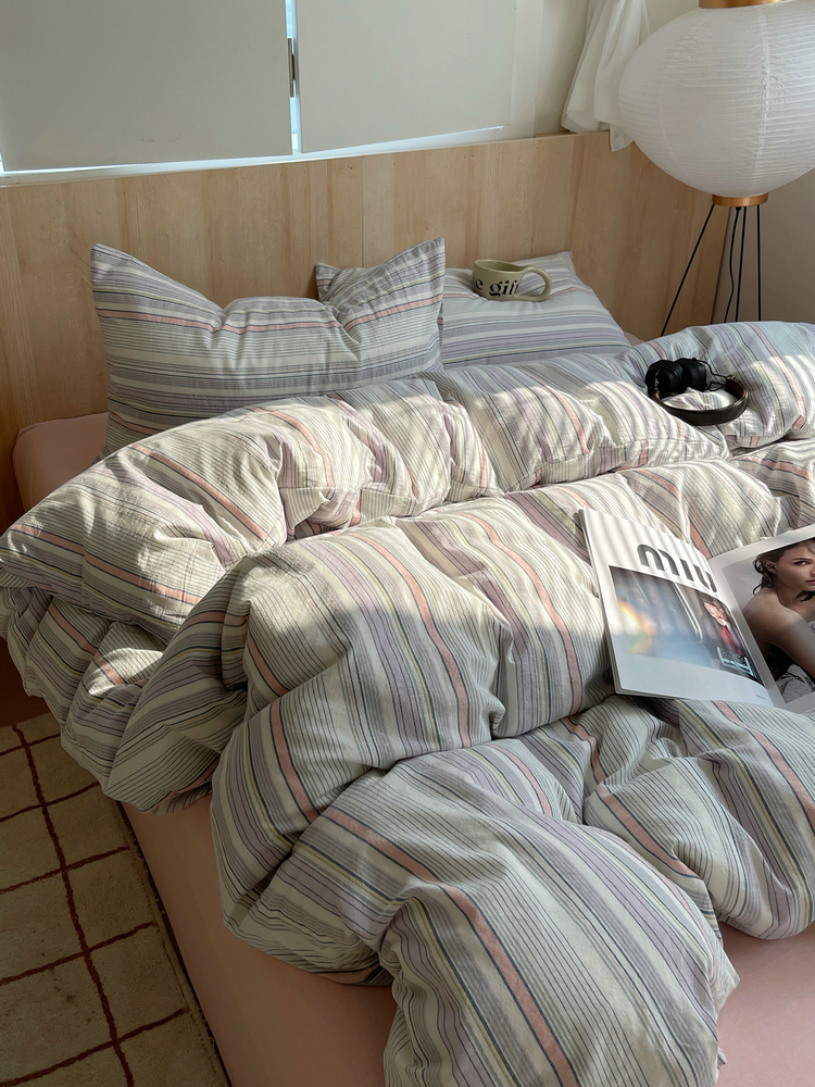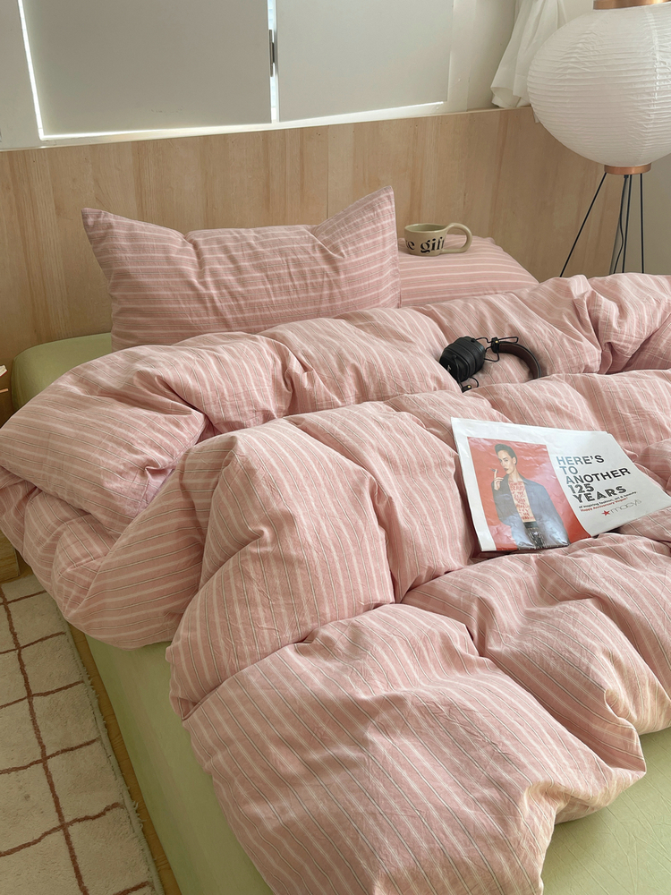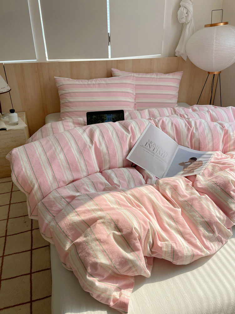 잉보 마스터 윈드 원사 염색 워시 코튼 4 피스 세트 퓨어 코튼 베드 시트 퀼트 커버 학생 기숙사 싱글 침대 3 Yingque