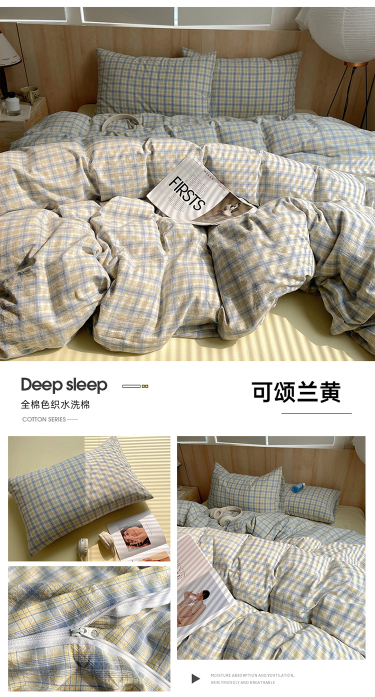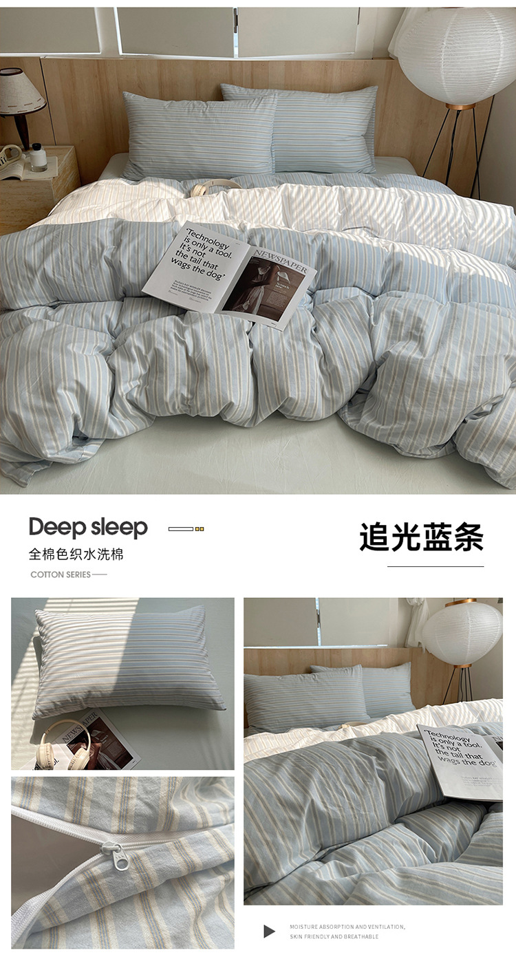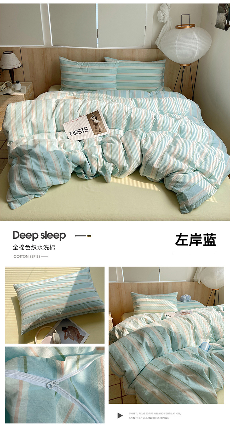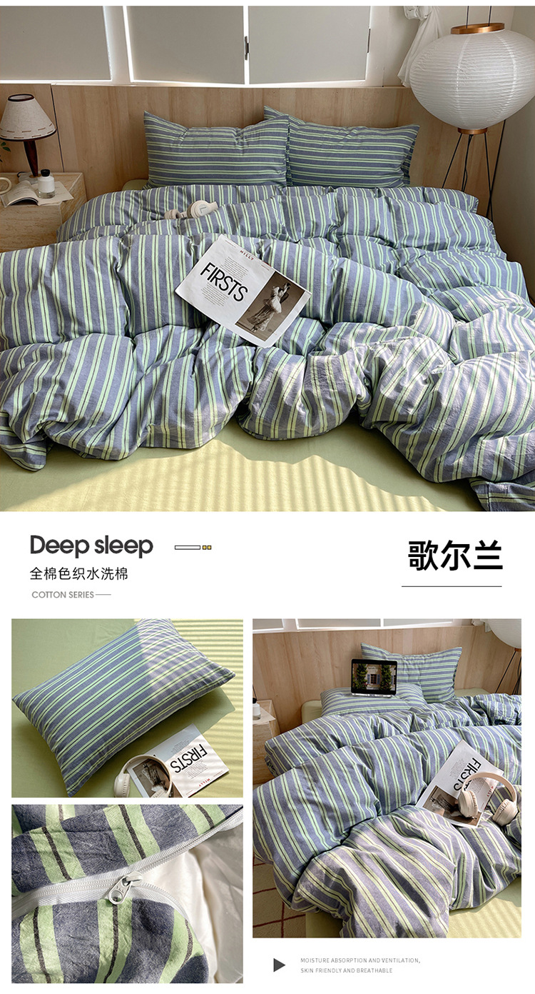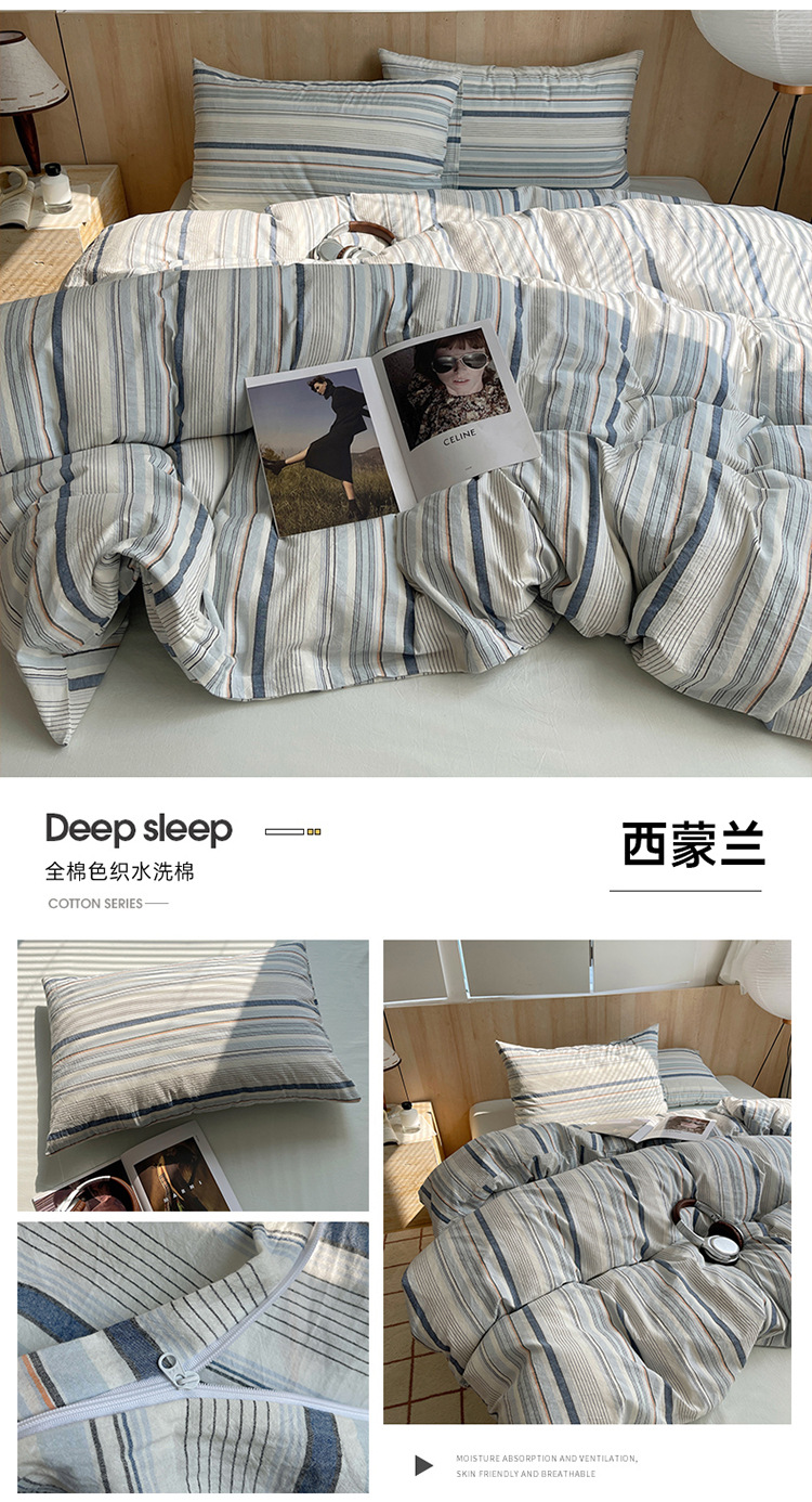잉보 마스터 윈드 원사 염색 워시 코튼 4 피스 세트 퓨어 코튼 베드 시트 퀼트 커버 학생 기숙사 싱글 침대 3 Yingque스토어 가기
