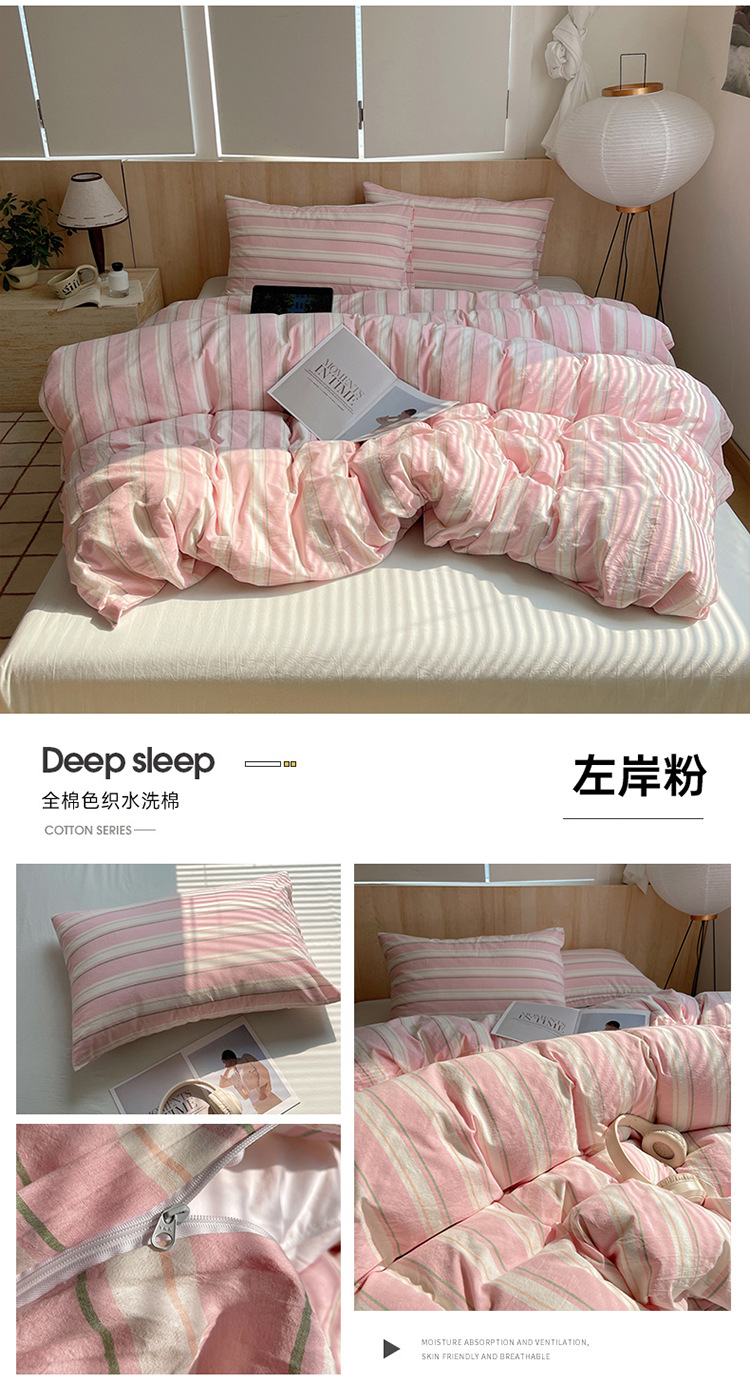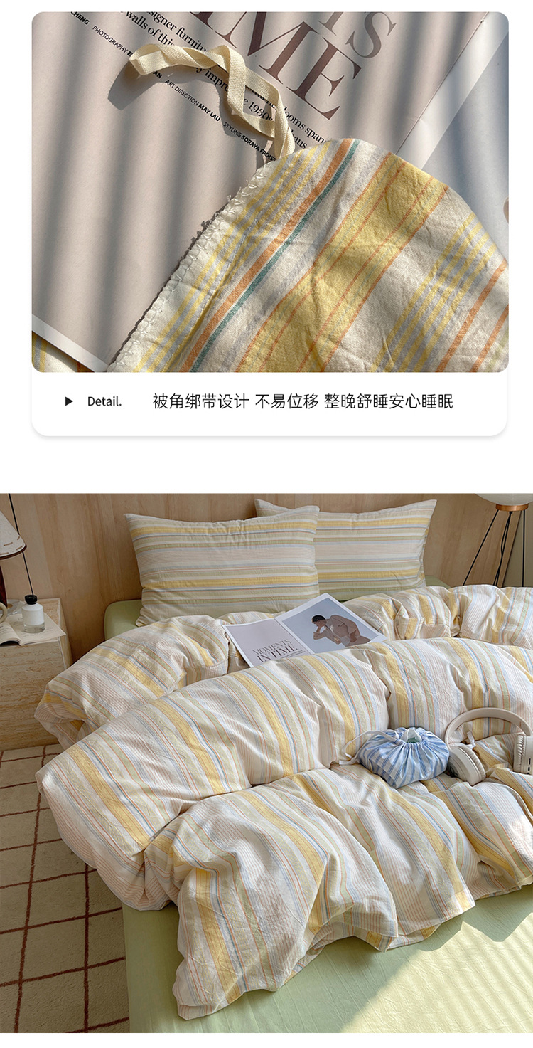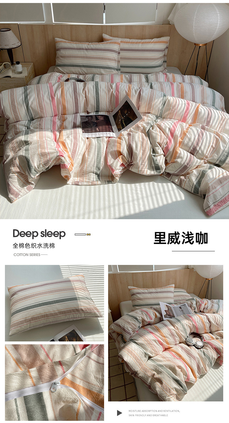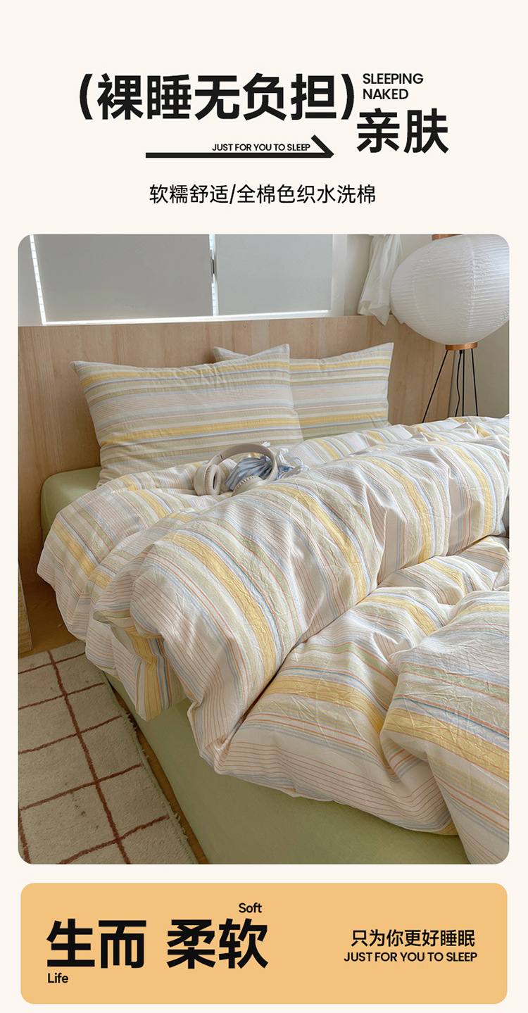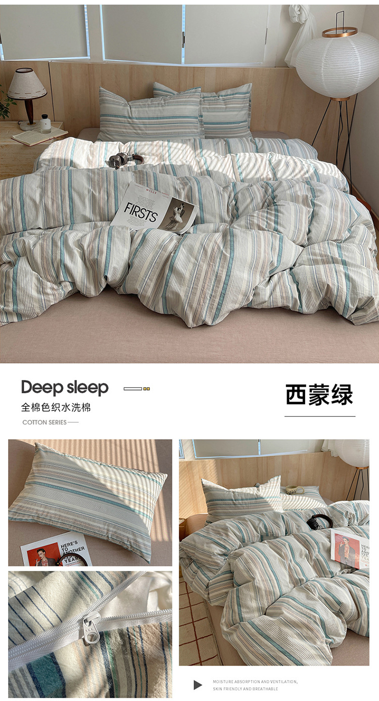 잉보 마스터 윈드 원사 염색 워시 코튼 4 피스 세트 퓨어 코튼 베드 시트 퀼트 커버 학생 기숙사 싱글 침대 3 Yingque스토어 가기