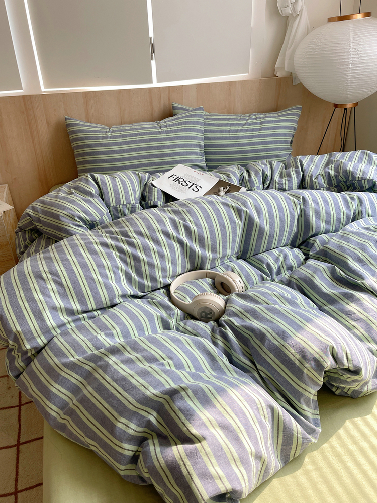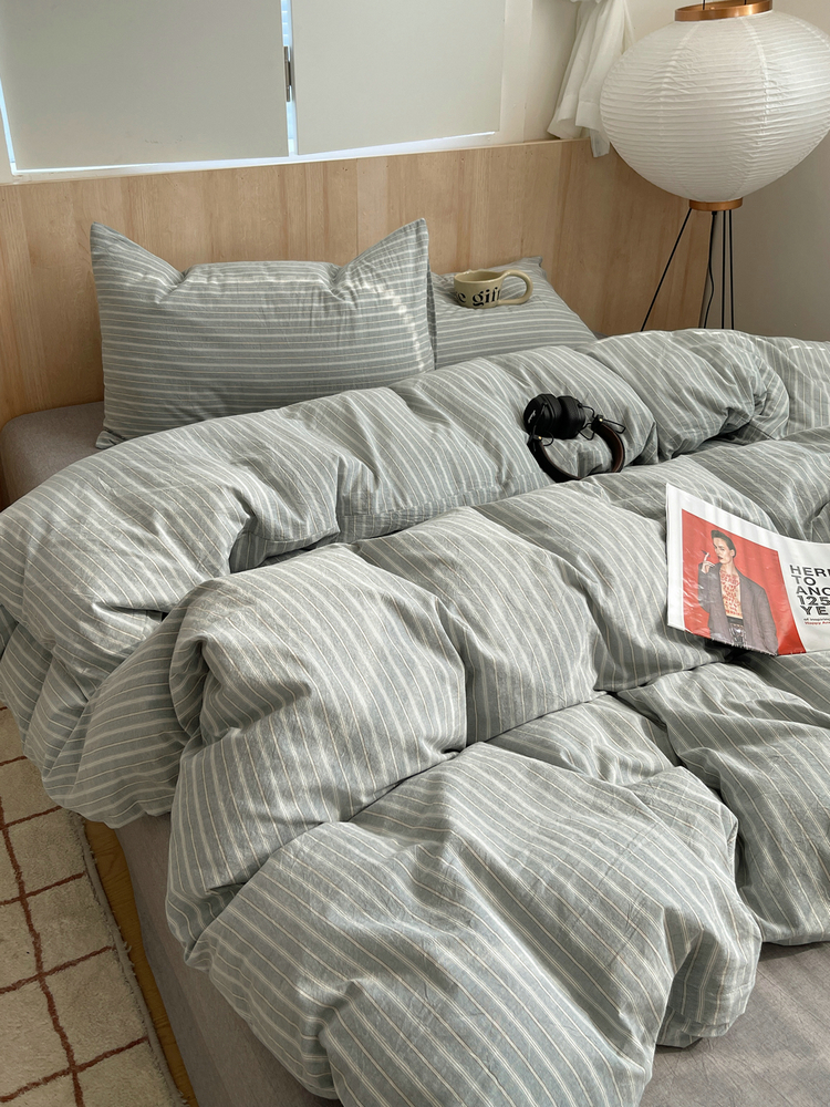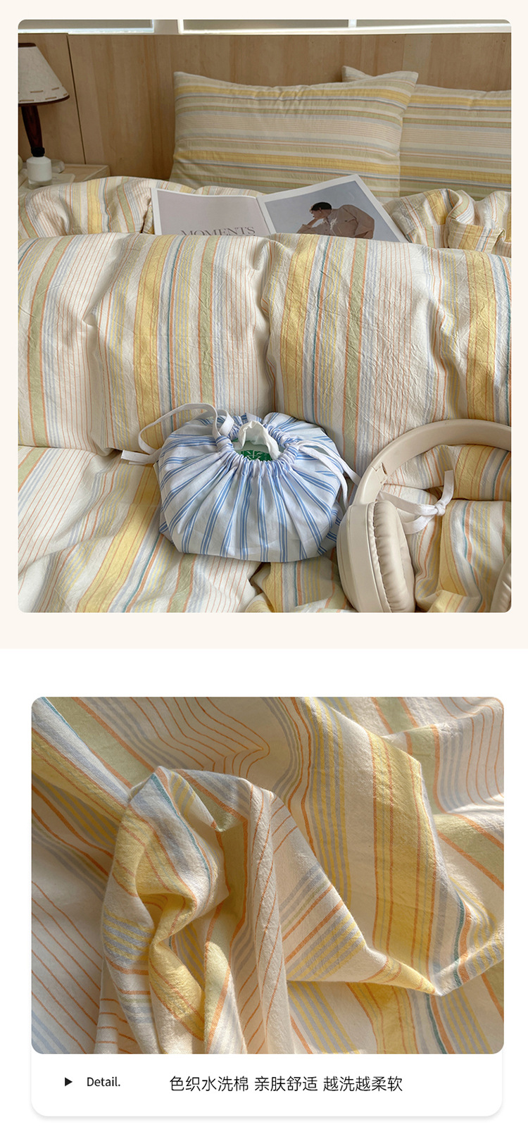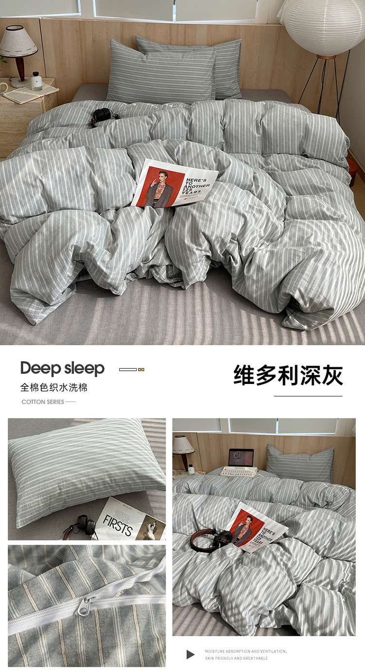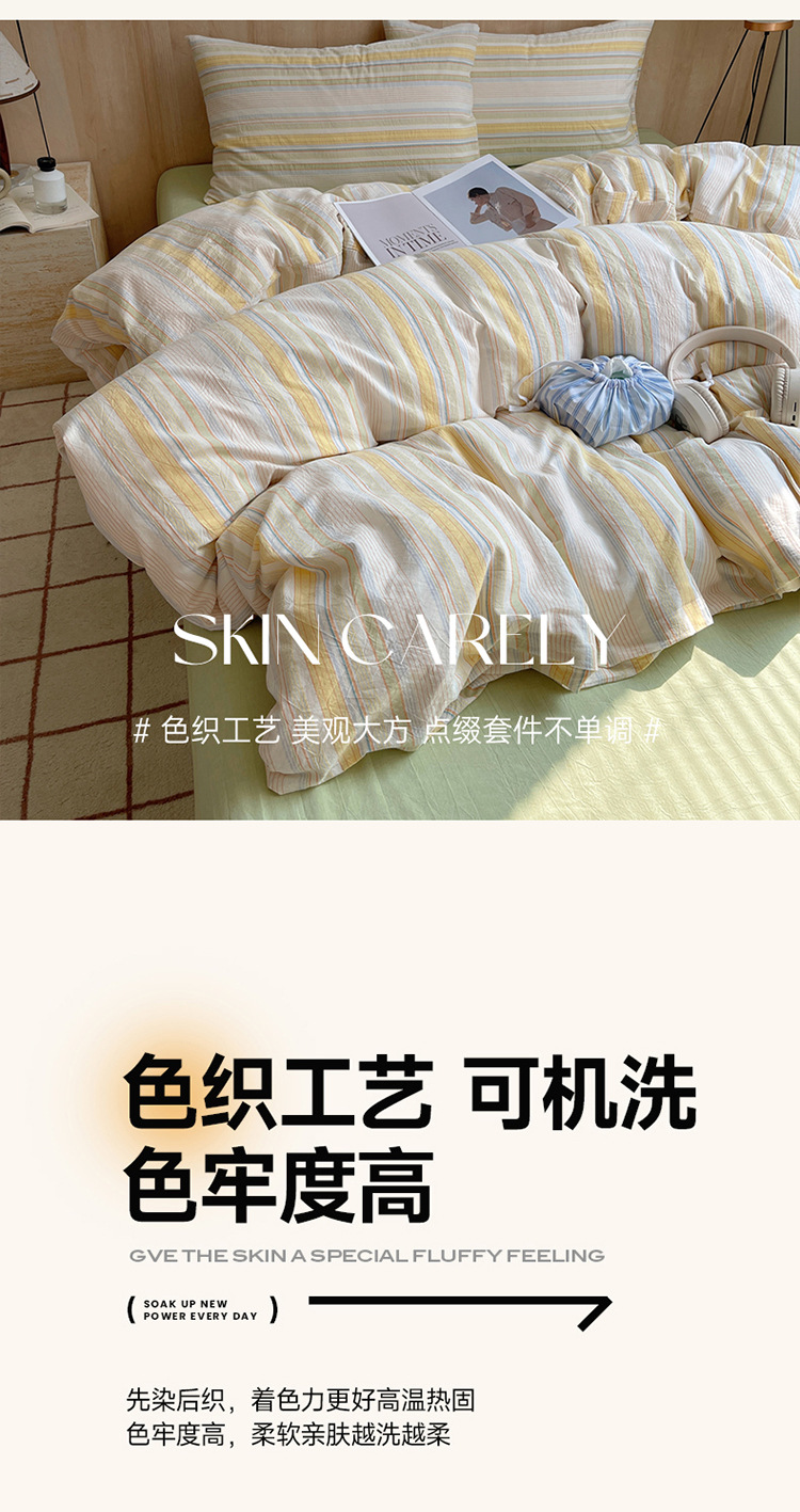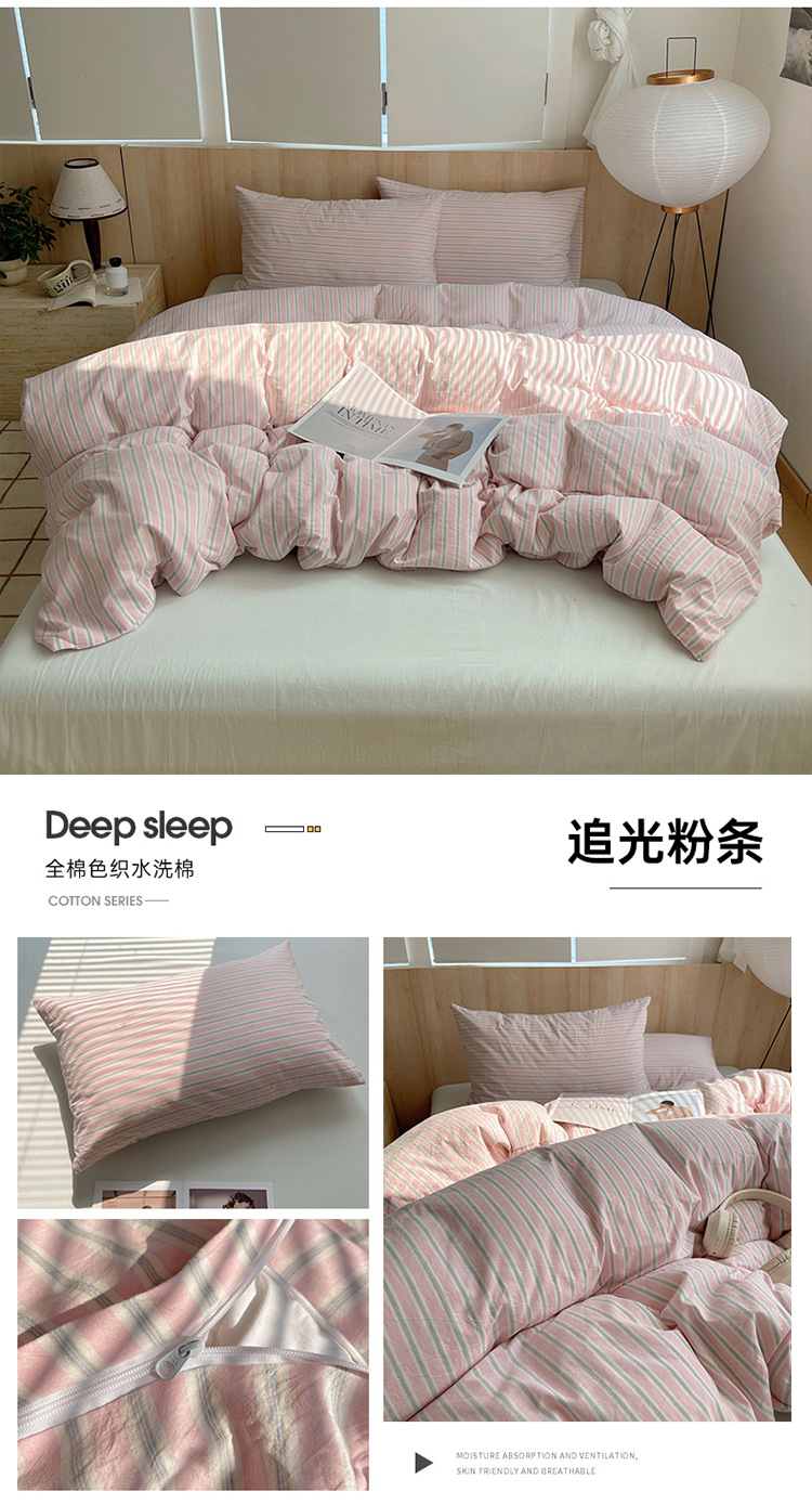 잉보 마스터 윈드 원사 염색 워시 코튼 4 피스 세트 퓨어 코튼 베드 시트 퀼트 커버 학생 기숙사 싱글 침대 3 Yingque스토어 가기