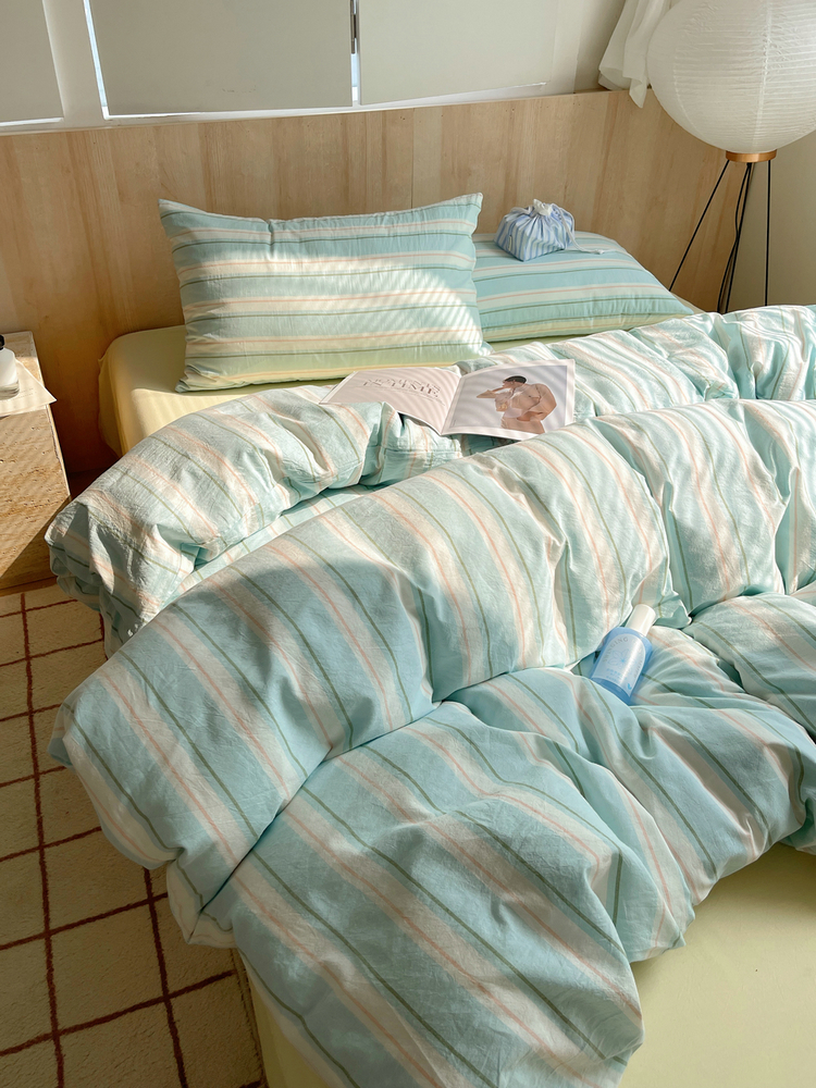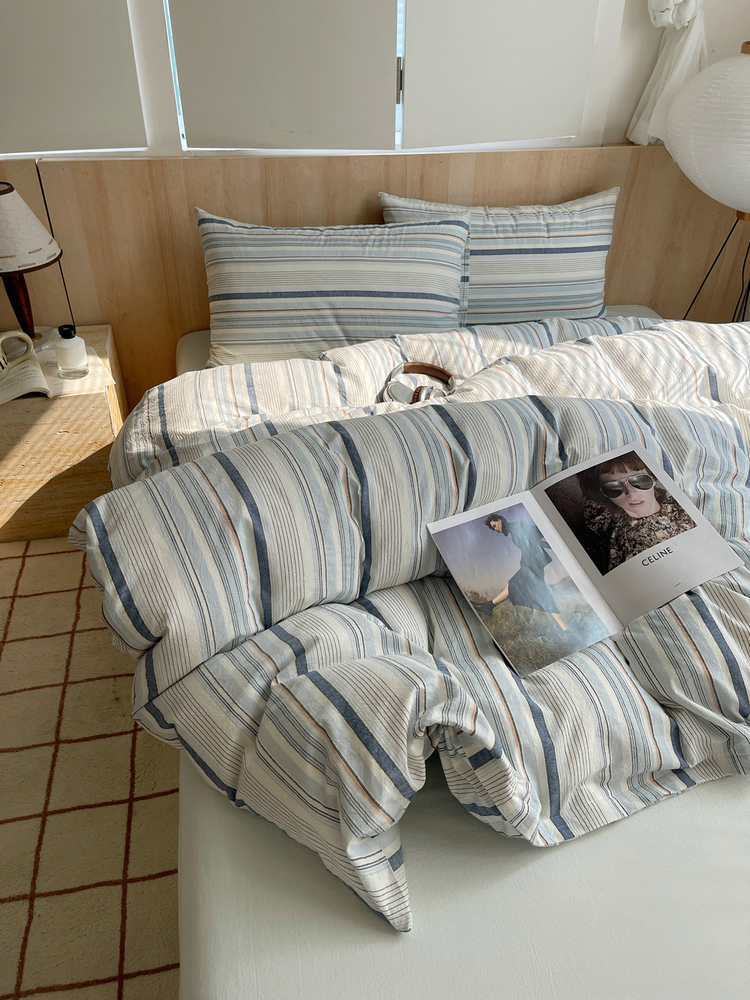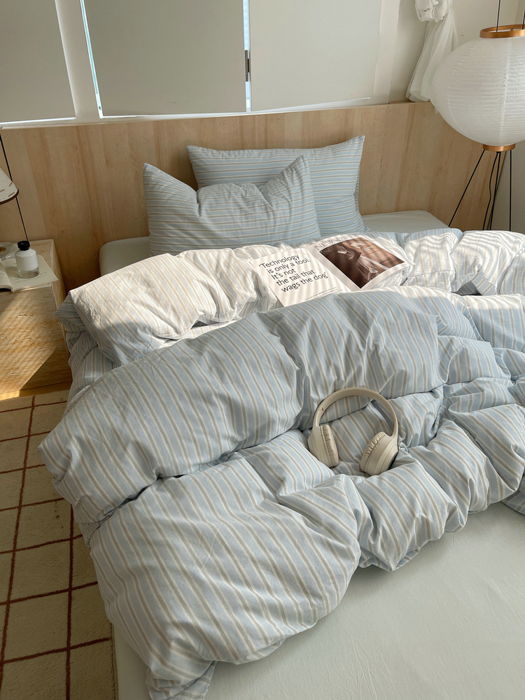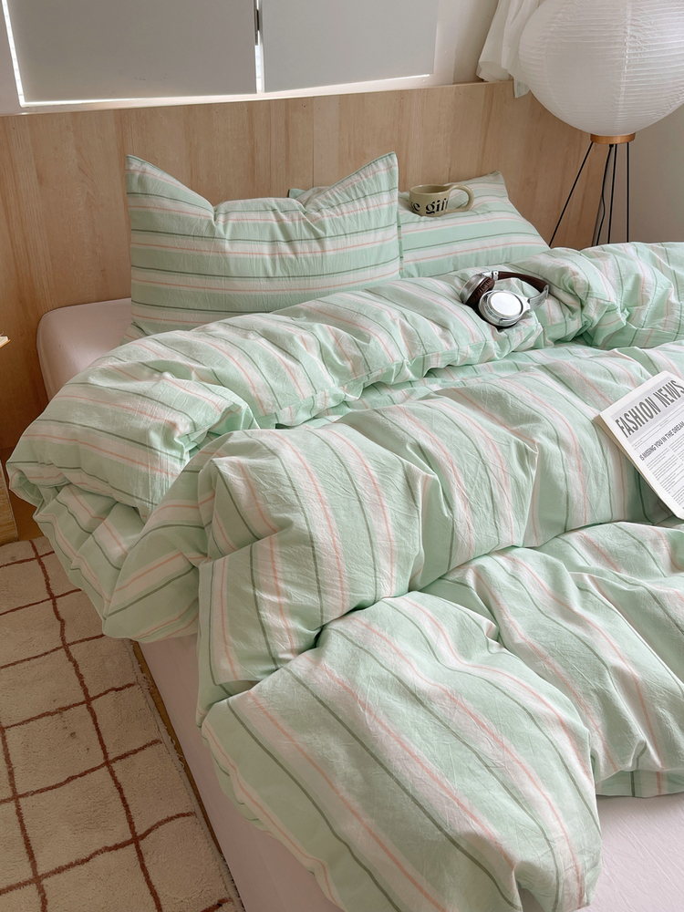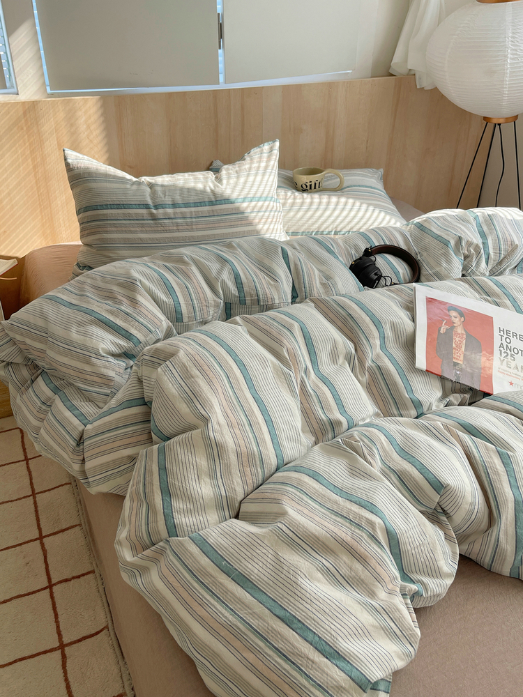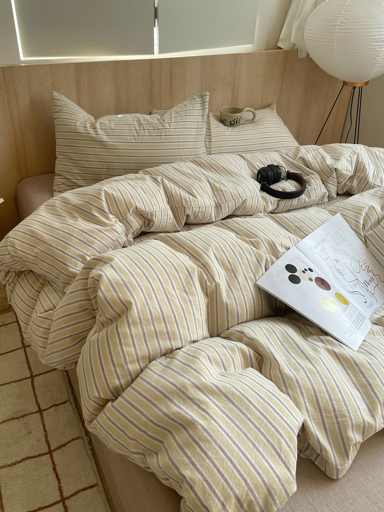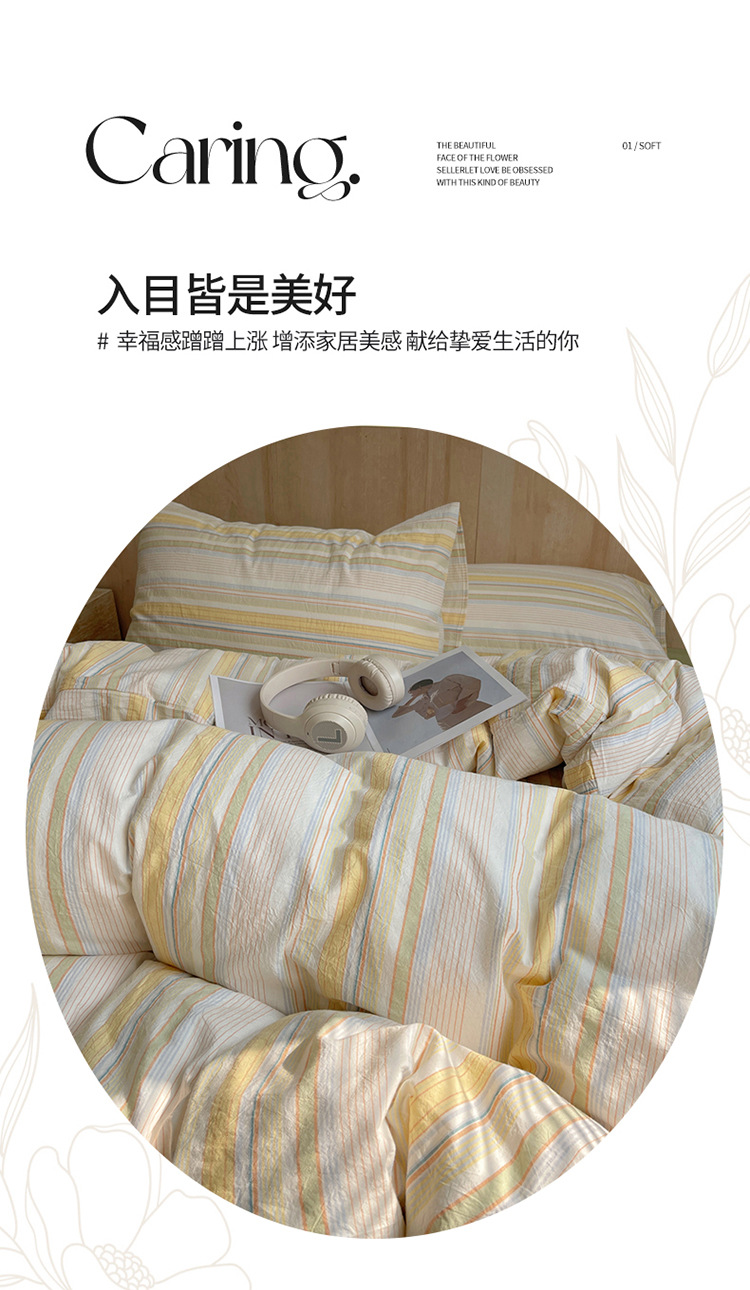 잉보 마스터 윈드 원사 염색 워시 코튼 4 피스 세트 퓨어 코튼 베드 시트 퀼트 커버 학생 기숙사 싱글 침대 3 Yingque스토어 가기