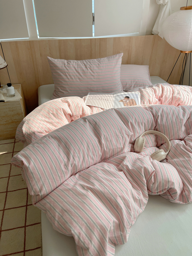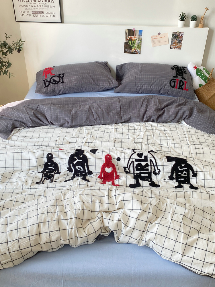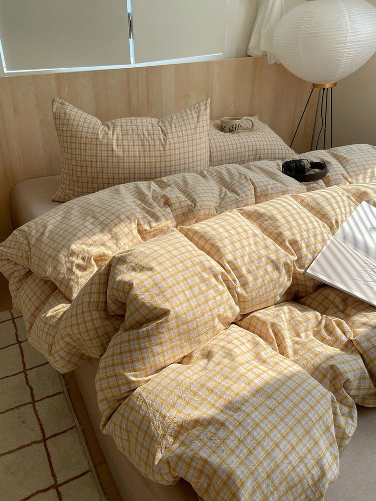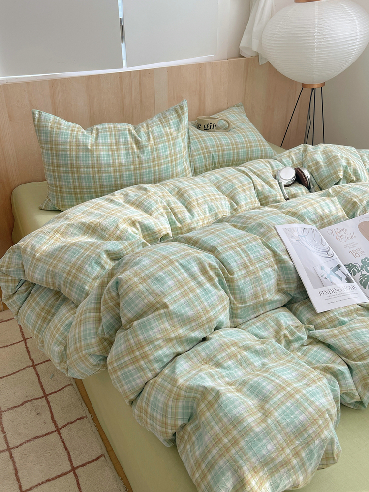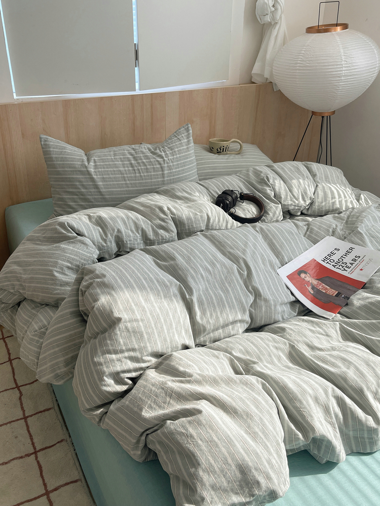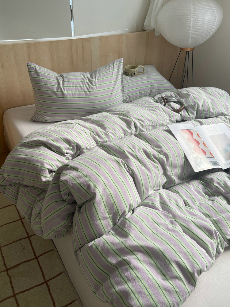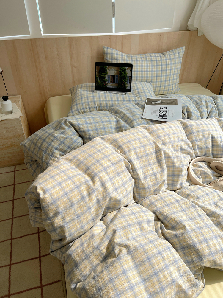 잉보 마스터 윈드 원사 염색 워시 코튼 4 피스 세트 퓨어 코튼 베드 시트 퀼트 커버 학생 기숙사 싱글 침대 3 Yingque스토어 가기