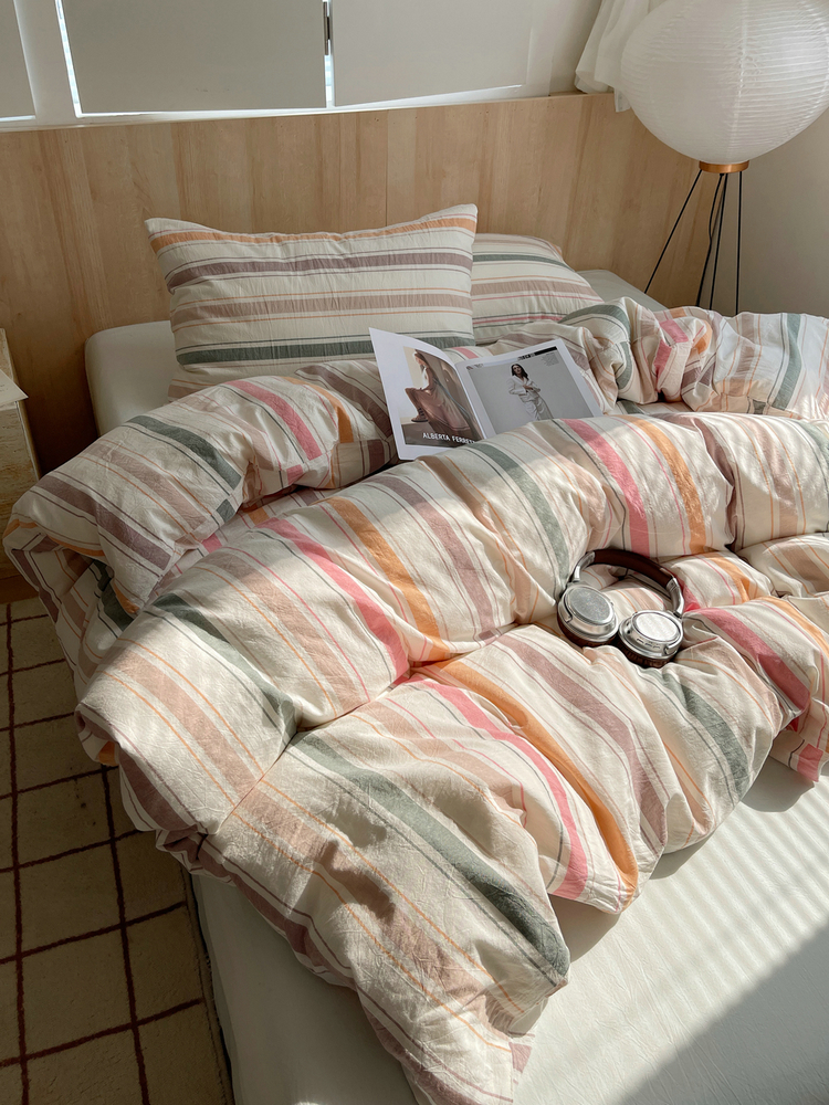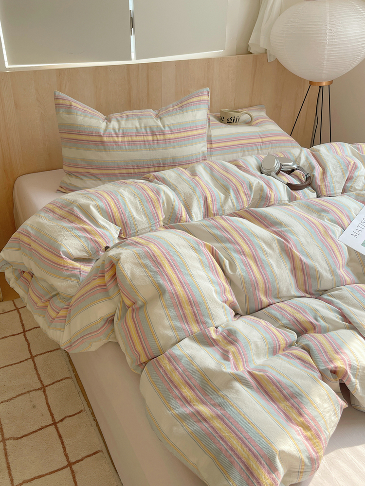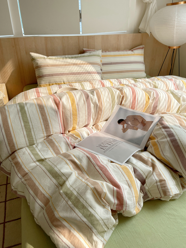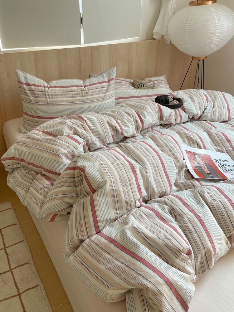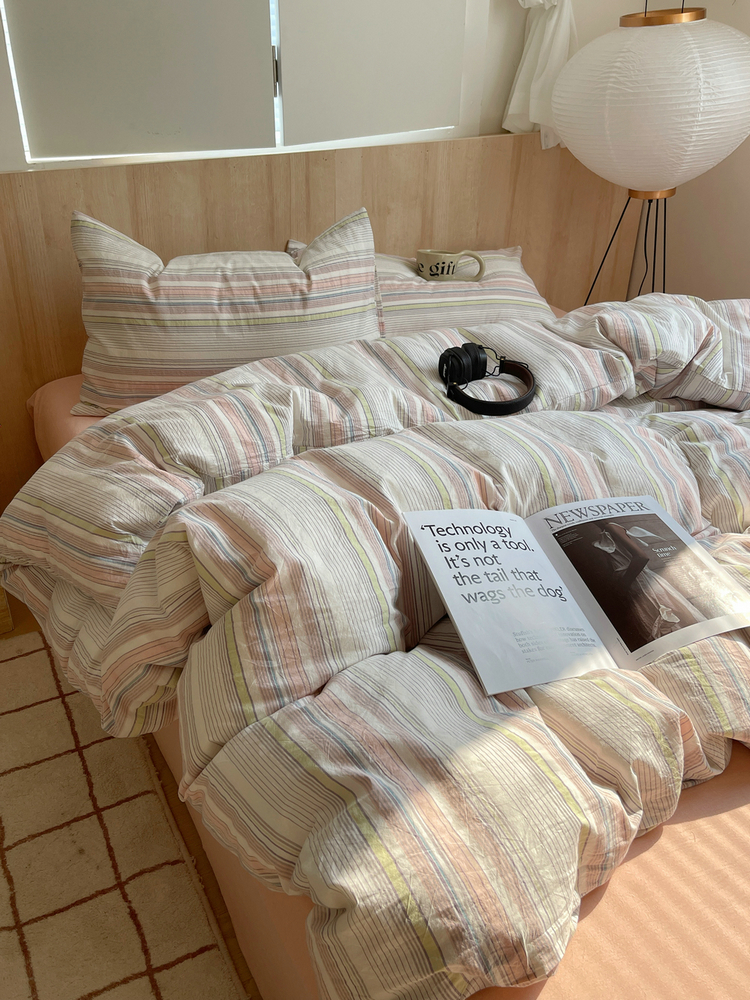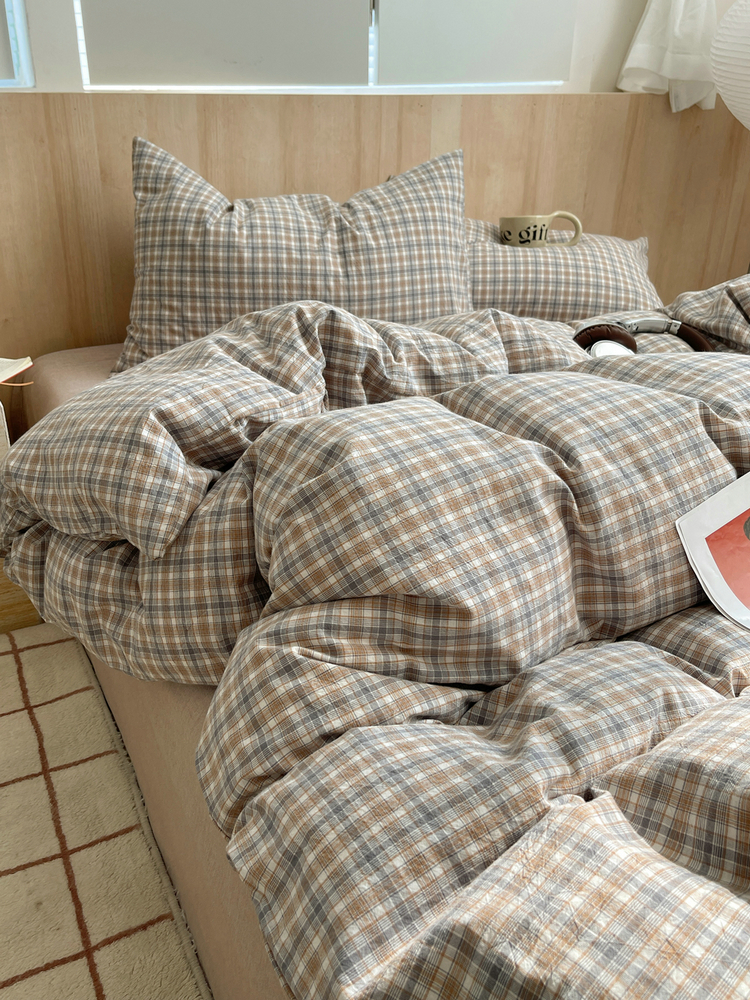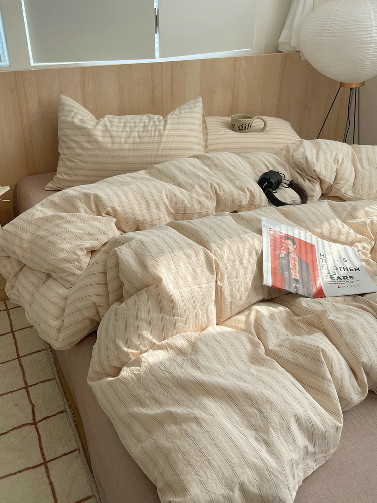 잉보 마스터 윈드 원사 염색 워시 코튼 4 피스 세트 퓨어 코튼 베드 시트 퀼트 커버 학생 기숙사 싱글 침대 3 Yingque스토어 가기
