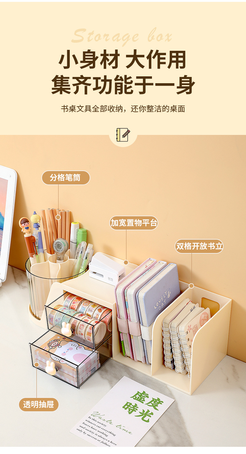 대용량 펜 홀더 저장 상자 회전 가능한 학생 데스크탑 어린이 책상 랙 사무실 다기능 보관