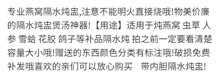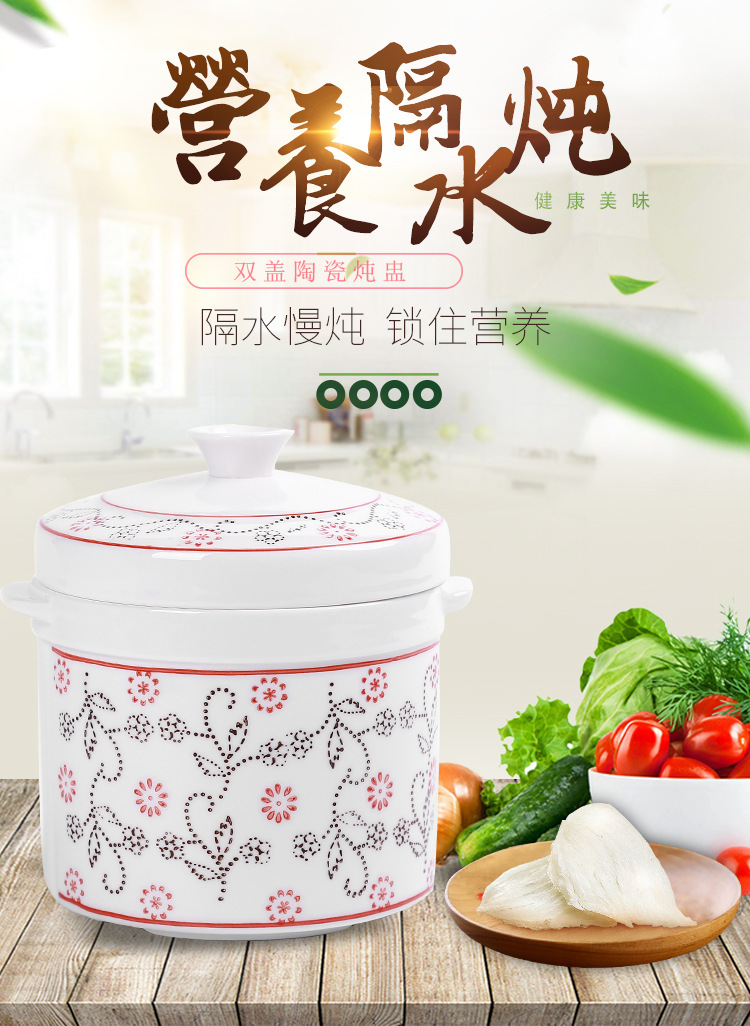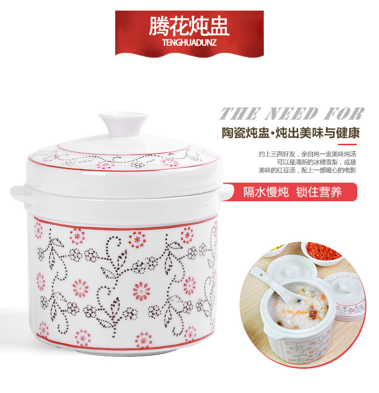 잉잉 더블 뚜껑 뼈 중국 세라믹 조류의 둥지 스튜 냄비 방수 스튜 냄비 내부 냄비 스팀핑 수프 냄비 대형 스몰 사이즈 가정용 그릇 순수한 잉케스토어 가기