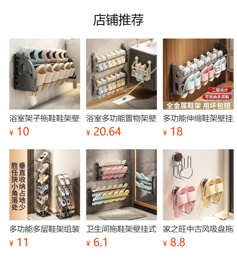 맞춤형 욕실 슬리퍼 걸이 벽걸이형 무타공 화장실 신발 건조대 수납 선반 도매
