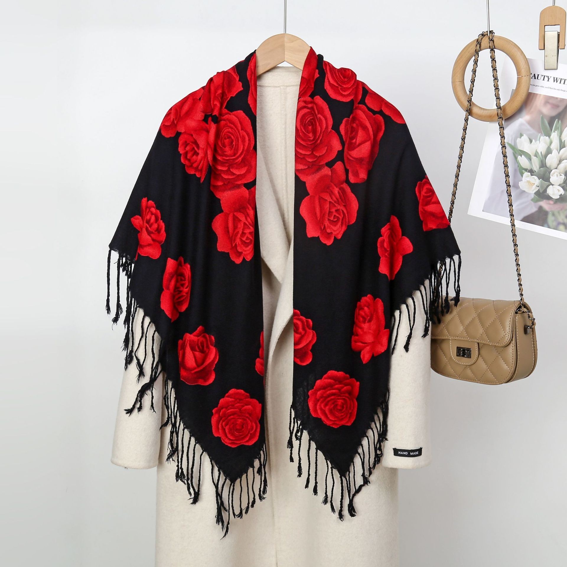인쇄 된 스카프 여성의 수제 대만 버전 인쇄 목도리 110*110 아크릴 사각 국경 핫 스카프 공장 도매