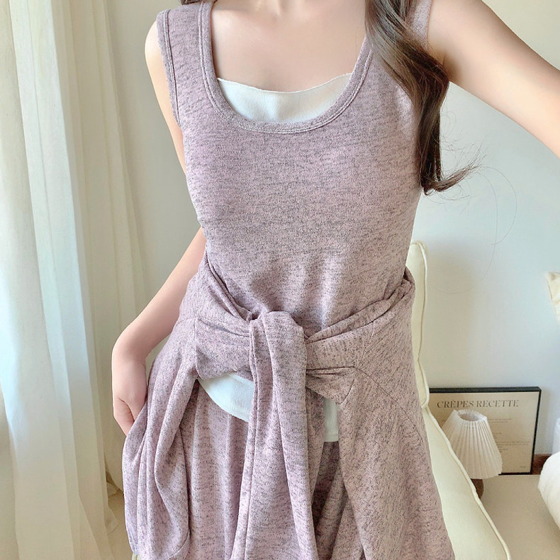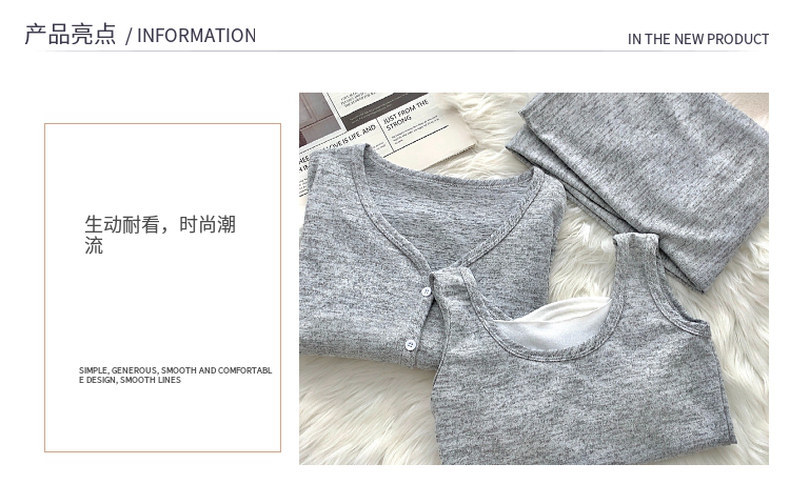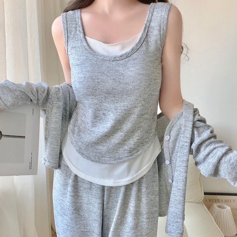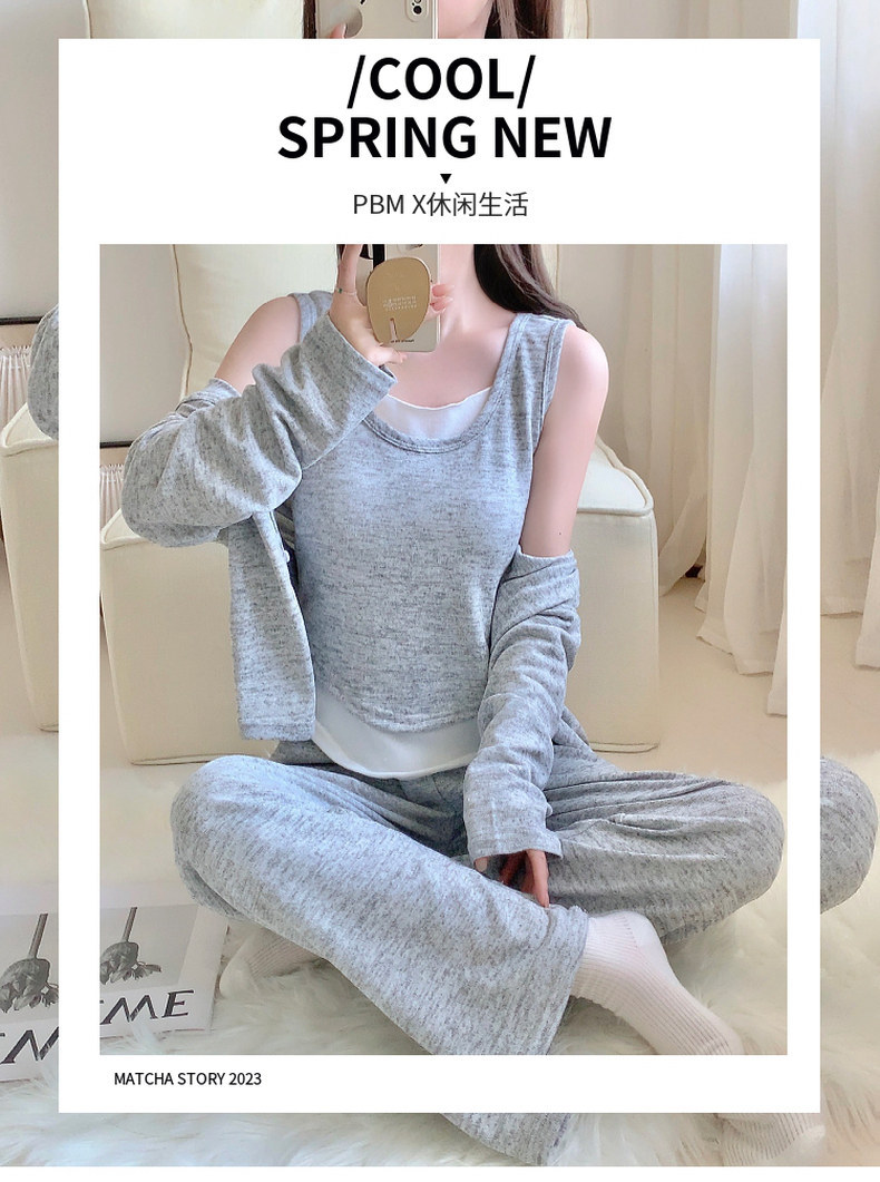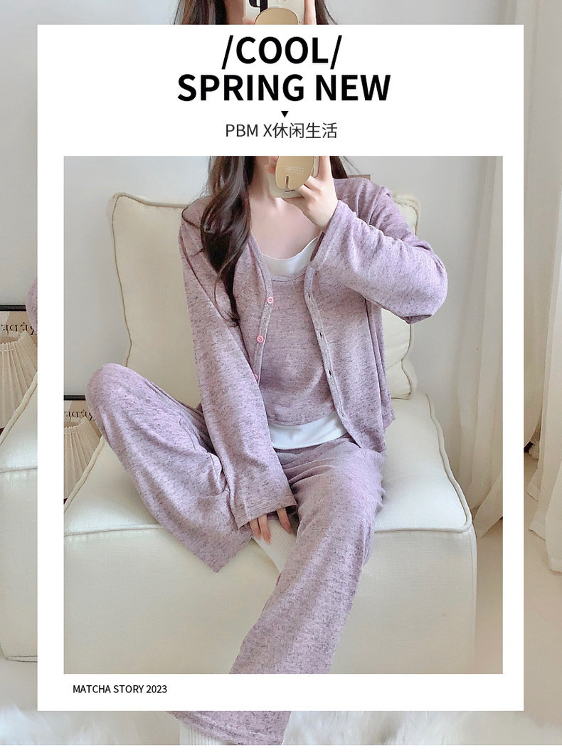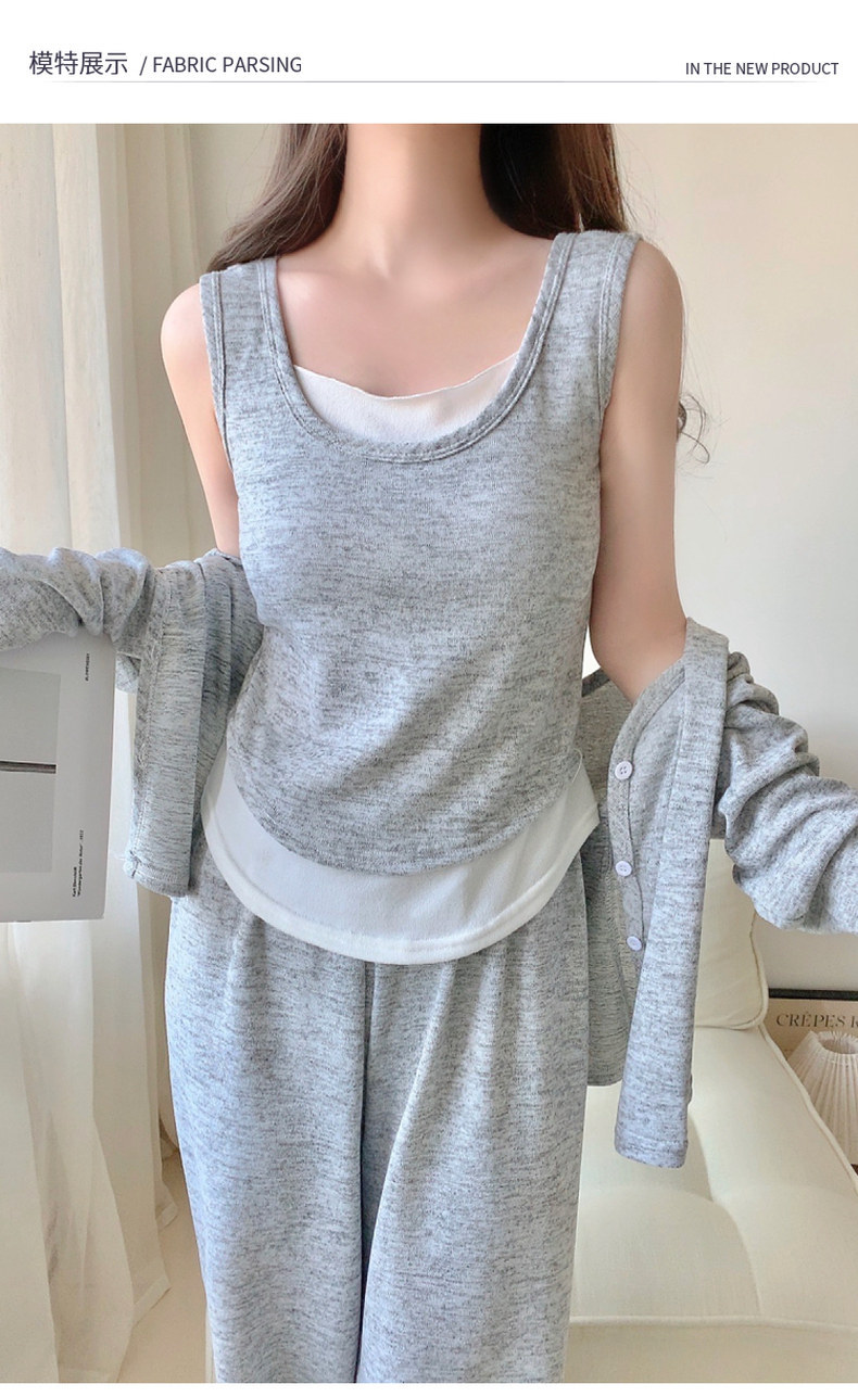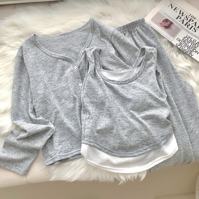 한국 스타일 Ins 스타일 파자마 여성 가을 및 겨울 샌딩 가슴 패드 슬링 긴 소매 바지 순수 3 피스 홈 의류