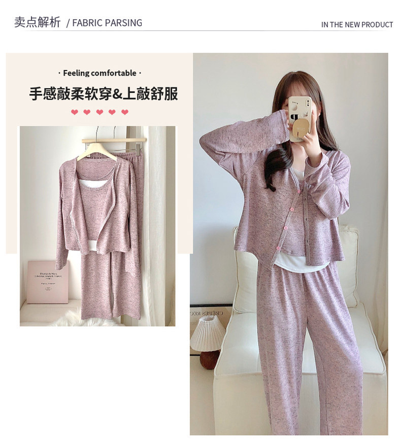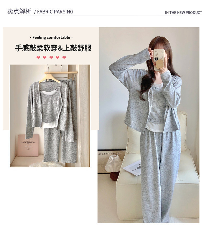 한국 스타일 Ins 스타일 파자마 여성 가을 및 겨울 샌딩 가슴 패드 슬링 긴 소매 바지 순수 3 피스 홈 의류스토어 가기