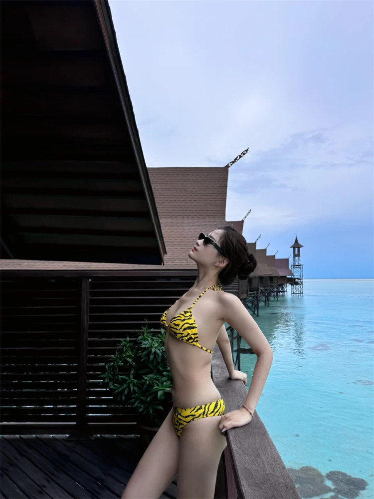 2025 새로운 섹시한 유럽과 미국의 패션 인쇄 레오파드 무늬 분할 3 점 비키니 스파 비치 휴가 수영복스토어 가기