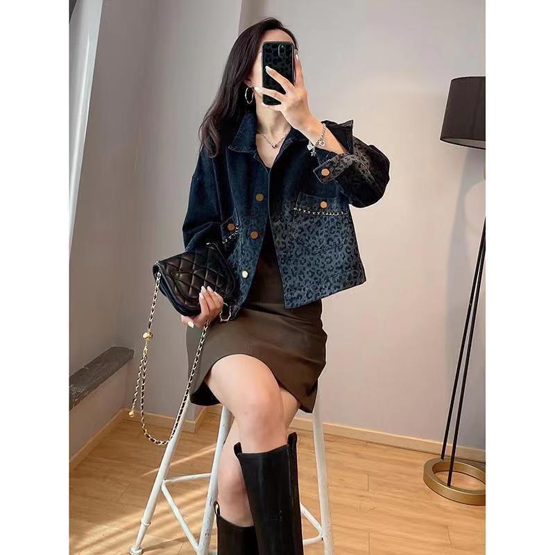 블랙 레트로 레오파드 데님 코트 여성 봄 패션 짧은 재킷 톱 2025 새로운 유럽 상품스토어 가기