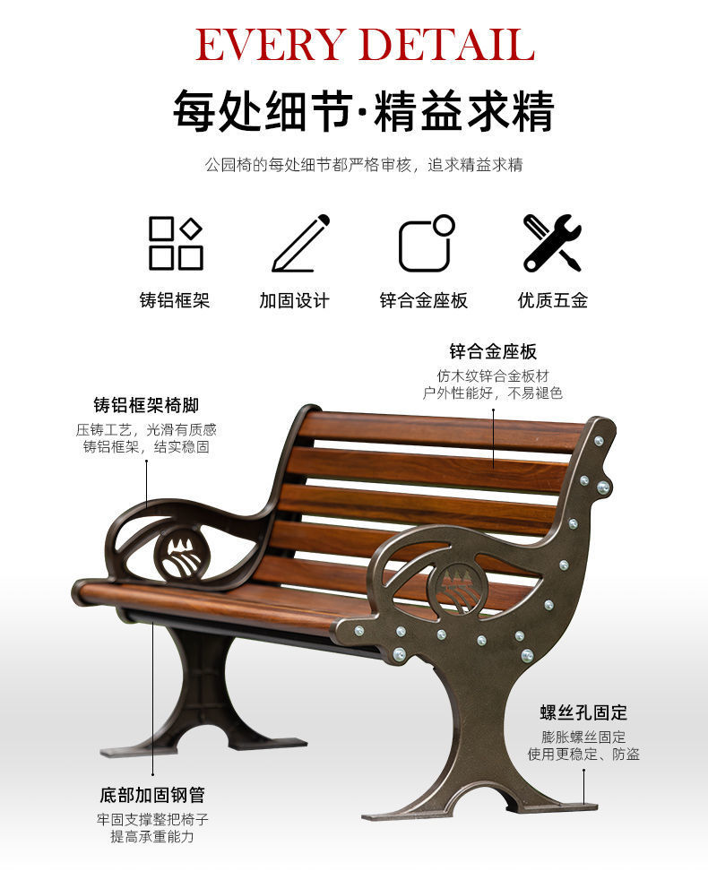 J & H 공원 의자 야외 벤치 레저 의자 알루미늄 합금 공공 좌석 벤치 뒷좌석 의자 마당 의자