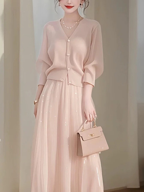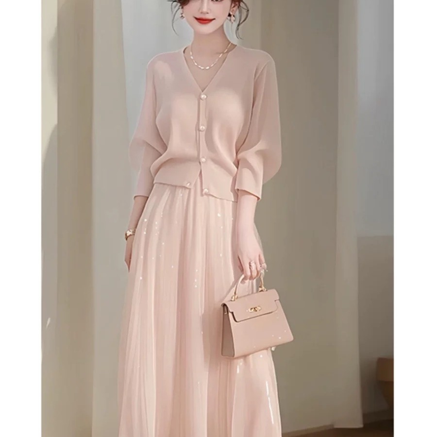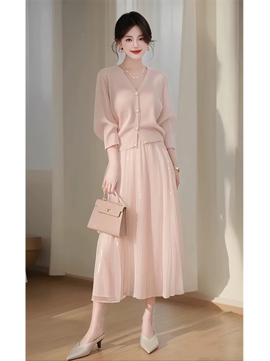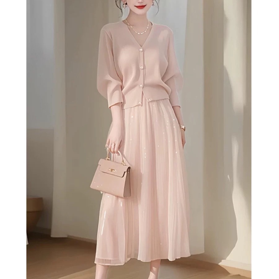 봄과 가을 기질 여성을위한 우아하고 우아한 스키니 통근 핑크 향기로운 스타일 스커트 2 피스 세트 세트스토어 가기