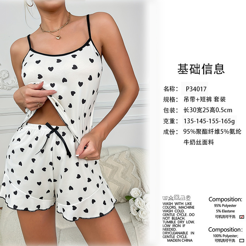 2025 국경 새 슬링 사랑 나비 귀 바느질 반바지 편안한 캐주얼 홈 의류 세트 수면