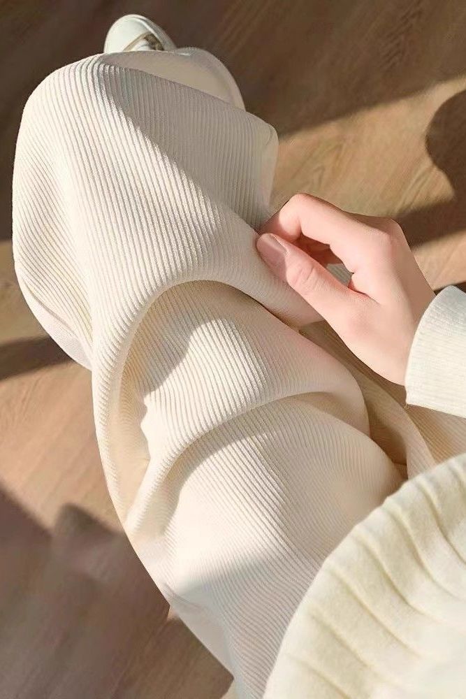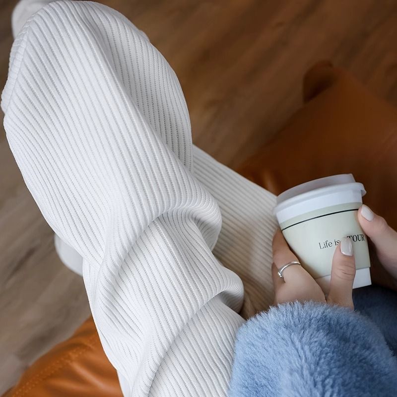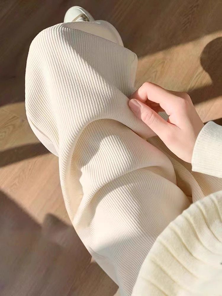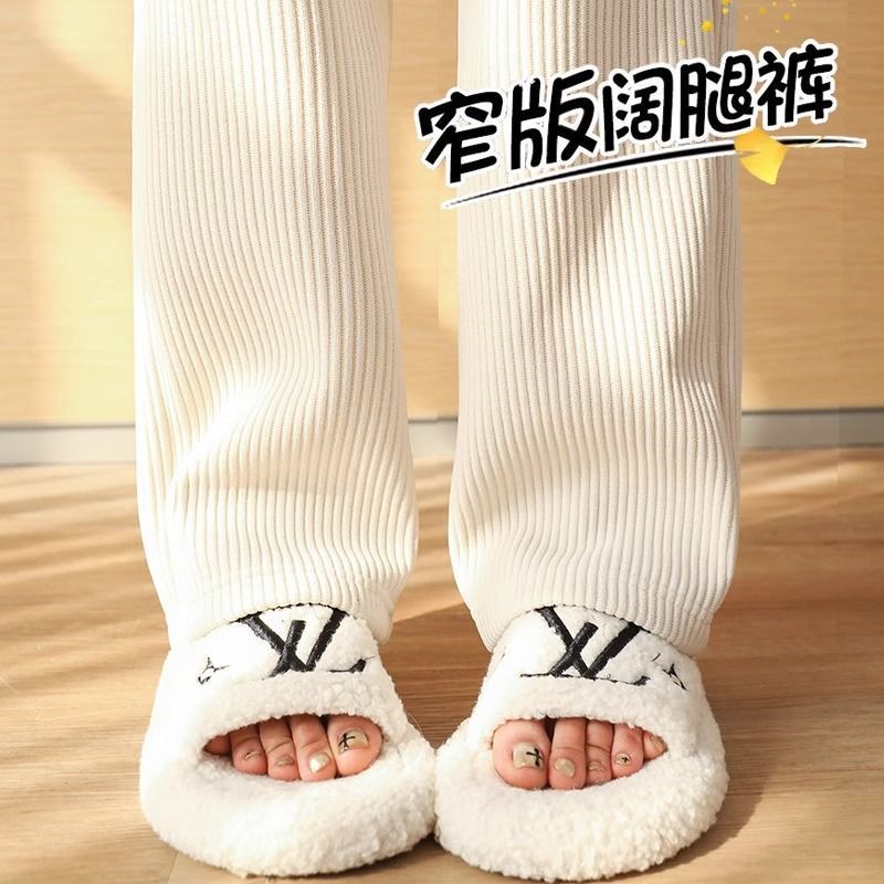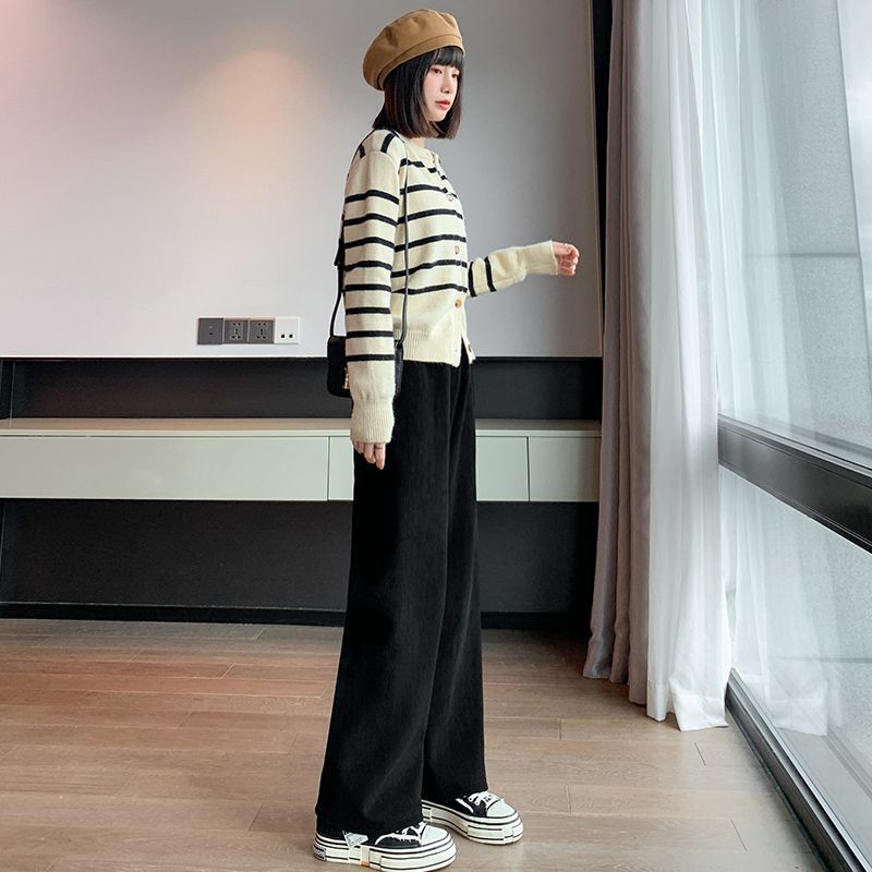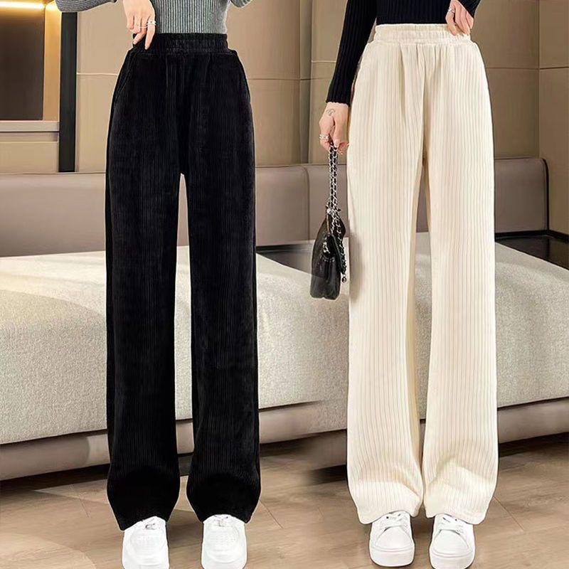 가을과 겨울을위한 여성용 넓은 다리 바지 기모 두꺼운 느슨한 캐주얼 스트레이트 팬츠 슬림 커버 착용 방지 코듀로이스토어 가기
