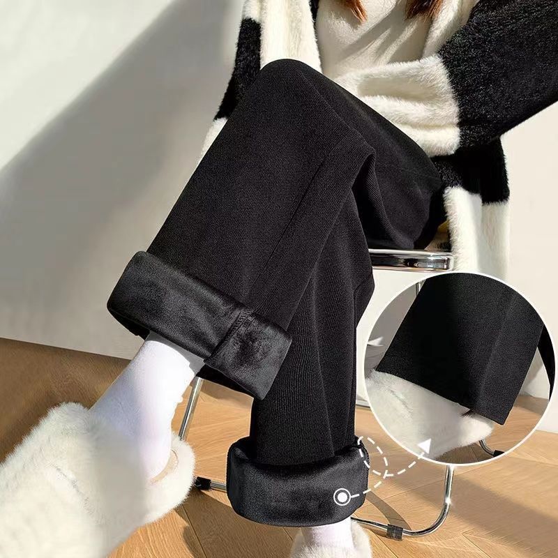 가을과 겨울을위한 여성용 넓은 다리 바지 기모 두꺼운 느슨한 캐주얼 스트레이트 팬츠 슬림 커버 착용 방지 코듀로이