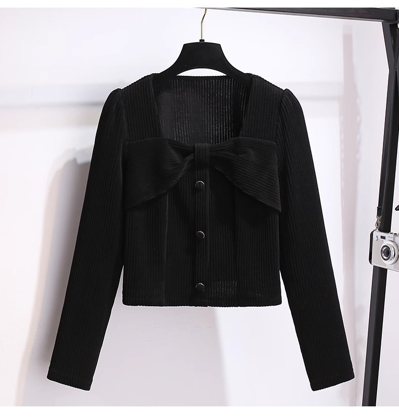 유럽 상품 2024 봄과 가을 작은 향기로운 스타일 활 세트 스커트 코듀로이 탑 스커트 투피스 원피스 여성