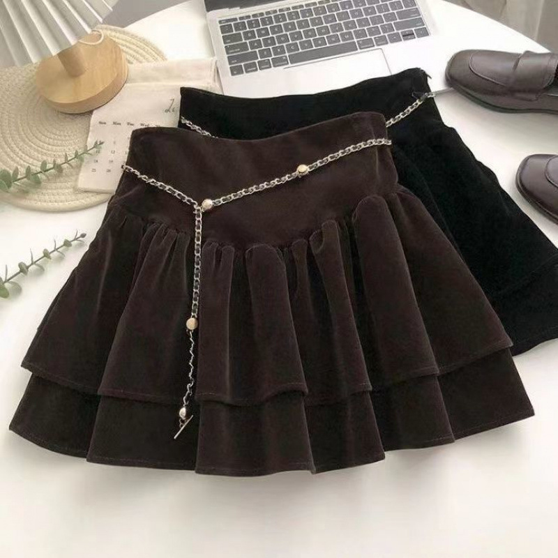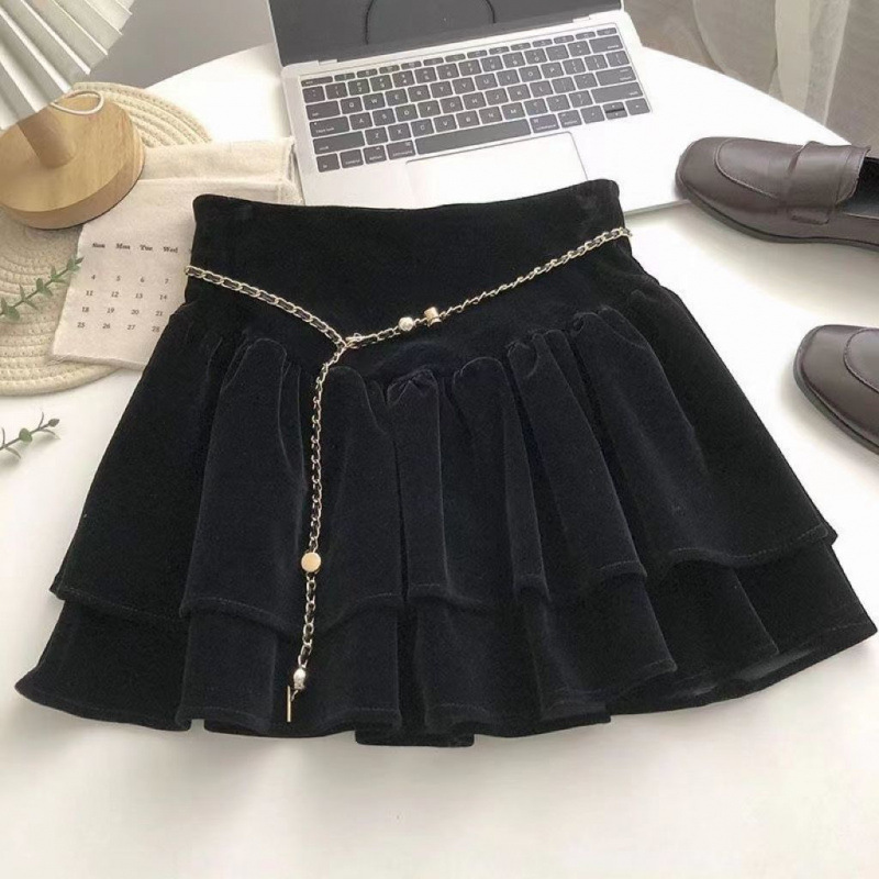 가을과 겨울 여성 벨벳 스커트 푹신한 스커트 골드 벨벳 하이 허리 2025 슬리밍 연꽃 잎 스커트 체인